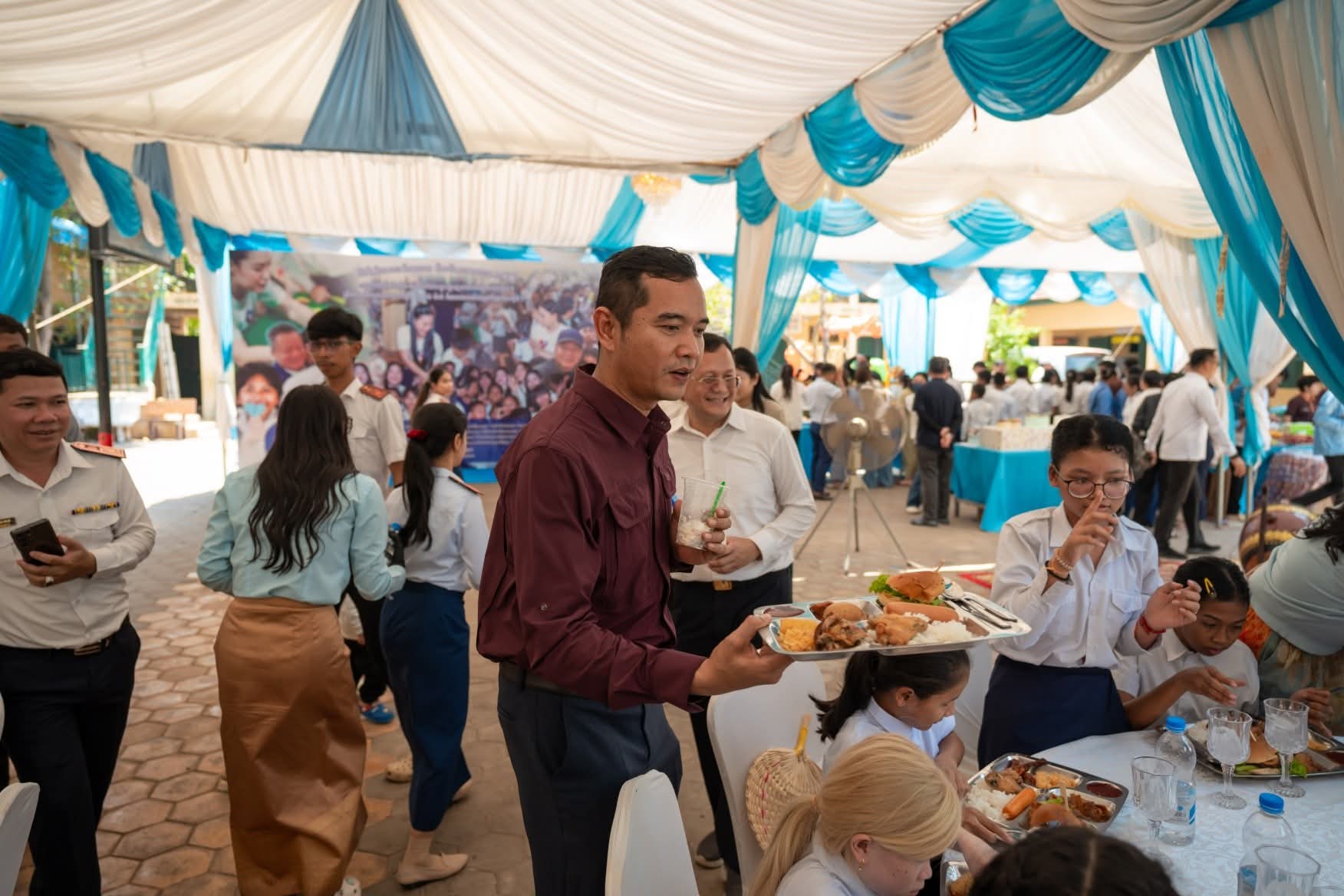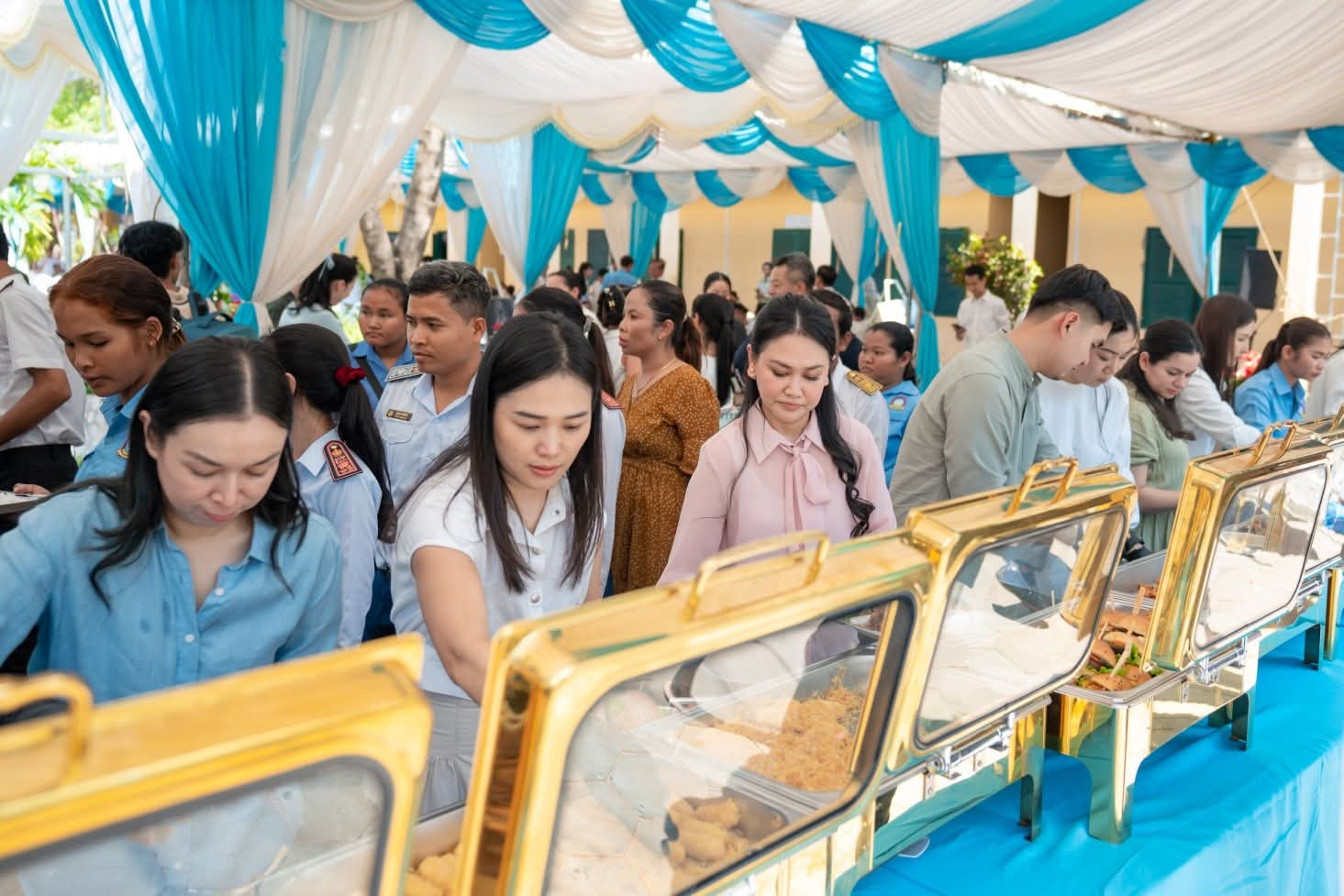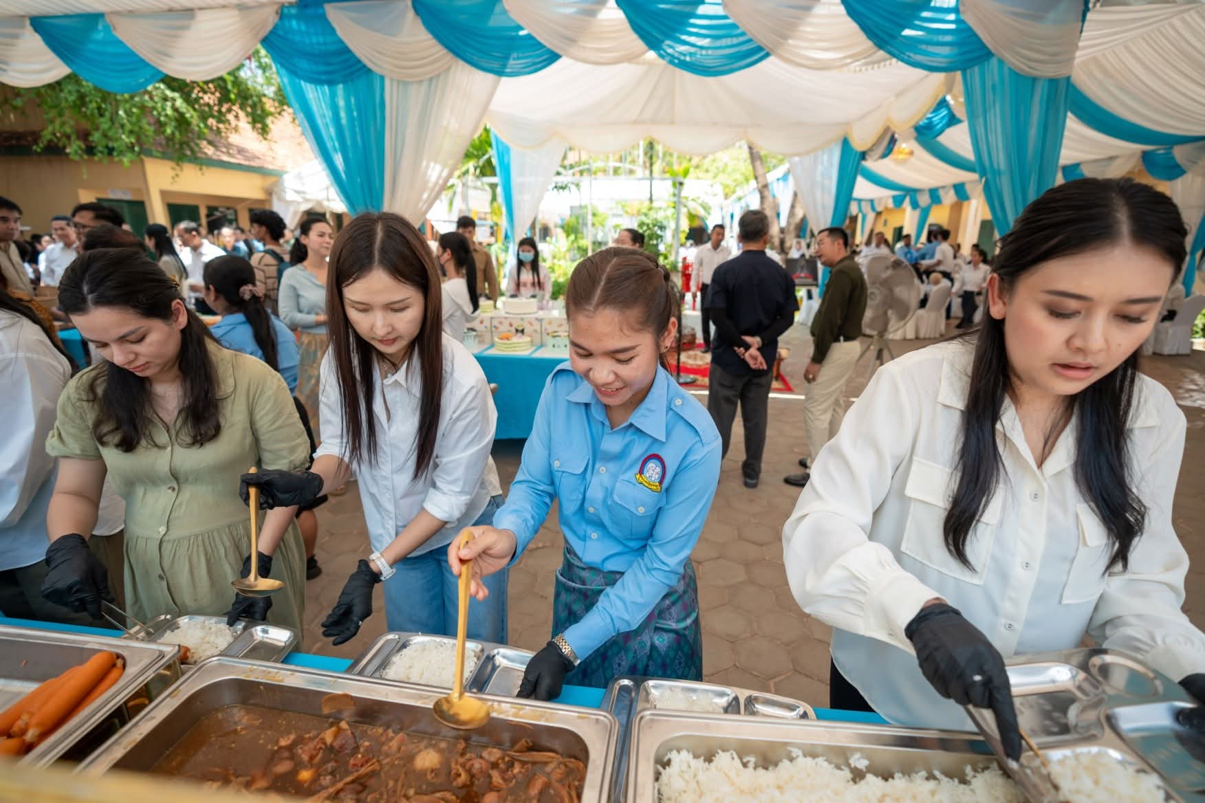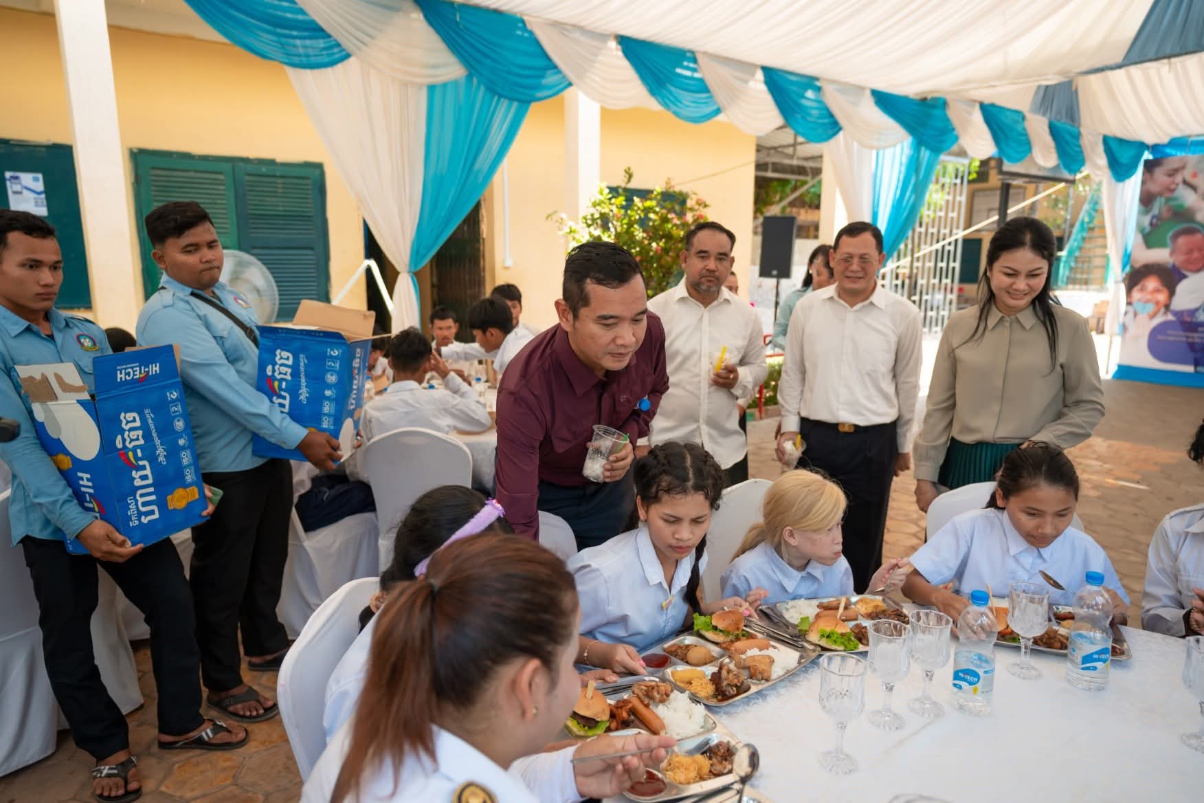 ក្នុងឱកាសនោះក៏មានរៀបចំ ជួបជុំពិសារអាហារថ្ងៃត្រង់ជូនដល់ក្មួយៗពិការ កុមាកំព្រា ដោយឯកឧត្តម លោកជំទាវ អស់លោក លោកស្រី បានធ្វើការបញ្ចុកអាហារដល់ក្មួយៗកុមារគថ្លង់ និងពិការភ្នែក ក្នុងភាពទឹកចិត្ត ជាម្តាយឳពុករបស់ក្មួយៗ ប្រកបដោយភាពស្និតស្នាល ក្នុងការអាណិតអាសូរដល់ក្មួយៗកុមារពិការបំផុត ៕