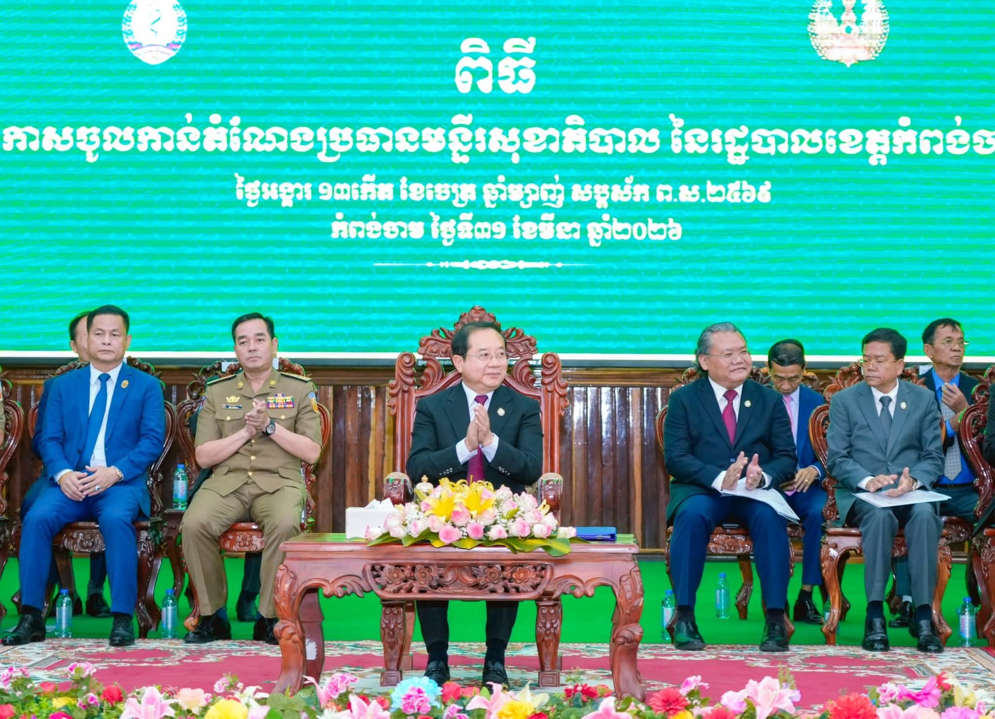 (កំពង់ចាម) :ឯកឧត្តមសាស្ត្រាចារ្យ ឈាង រ៉ា រដ្ឋមន្ត្រីក្រសួងសុខាភិបាល នៅថ្ងៃទី៣១ ខែមីនា ឆ្នាំ២០២៦ អញ្ជើញជាអធិបតី ក្នុងពិធីប្រកាស លោកវេជ្ជបណ្ឌិត វ៉ា សាវុធ ឱ្យចូលកាន់មុខតំណែងជាប្រធានមន្ទីរសុខាភិបាល នៃរដ្ឋបាលខេត្តកំពង់ចាម ជំនួស ឯកឧត្តមវេជ្ជបណ្ឌិត គីមសួរ ភីរុណ ដែលបានចូលនិវត្តន។