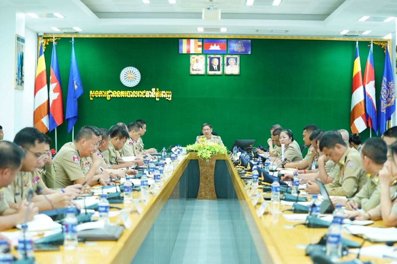 (ភ្នំពេញ) :ដោយទទួលបានការអនុញ្ញាតពី ឯកឧត្តម នាយឧត្តមសេនីយ៍ ស ថេត អគ្គស្នងការនគរបាលជាតិ នារសៀលថ្ងៃទី៣១ ខែមីនាឆ្នាំ២០២៦ ឯកឧត្តម ឧត្តមសេនីយ៍ឯក ជួន ណារិន្ទ អគ្គស្នងការរង និងជាស្នងការនគរបាលរាជធានីភ្នំពេញ បានអញ្ជើញដឹកនាំកិច្ចប្រជុំបូកសរុបសភាពការណ៍លទ្ធផលនៃកិច្ចប្រតិបត្តិការការពារសន្តិសុខ រក្សាសណ្តាប់ធ្នាប់ សុវត្ថិភាពសង្គម ប្រចាំត្រីមាសទី១ និងលើកទិសដៅការងារបន្តសម្រាប់ត្រីមាសទី២ ឆ្នាំ២០២៦ និងផ្សព្វផ្សាយផែនការការពារ សន្តិសុខ សណ្តាប់ធ្នាប់ និងសុវត្ថិភាពសង្គម ក្នុងឱកាសប្រារព្ធពិធីបុណ្យចូលឆ្នាំថ្មី និងព្រឹត្តិការណ៍ «នគរសង្រ្កាន្ត» ក្នុងរាជធានីភ្នំពេញ។