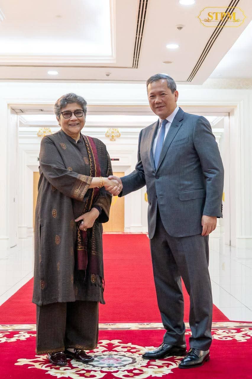 (ភ្នំពេញ) :សម្តេចមហាបវរធិបតី ហ៊ុន ម៉ាណែត នាយករដ្ឋមន្ត្រី នៃព្រះរាជាណាចក្រកម្ពុជា អនុញ្ញាតជូន លោកជំទាវ Rabab Fatima អគ្គលេខាធិការរងអង្គការសហប្រជាជាតិ និងជាតំណាងជាន់ខ្ពស់របស់អង្គការសហប្រជាជាតិសម្រាប់ប្រទេសអភិវឌ្ឍន៍តិចតួច ប្រទេសកំពុងអភិវឌ្ឍន៍ដែលគ្មានដែនសមុទ្រ និងរដ្ឋកំពុងអភិវឌ្ឍន៍កោះតូចៗ (UN-OHRLLS) ចូលជួបសម្តែងការគួរសម និងពិភាក្សាការងារ នៅវិមានសន្តិភាព រាជធានីភ្នំពេញ នាព្រឹកថ្ងៃទី១ ខែមេសា ឆ្នាំ២០២៦។