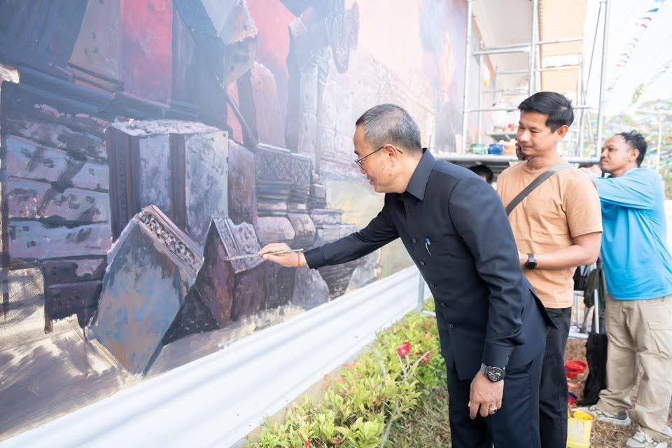ទស្សនាការគូរគំនូរ “សិល្បៈដើម្បីសន្តិភាព៣” នៅរោងតម្កល់ទូក ង “កម្ពោជិកបុត្តាខេមរាតរី” ដែលជាការបង្ហាញពីសក្តានុពលវប្បធម៌ និងអត្តសញ្ញាណខេត្តព្រៃវែង។