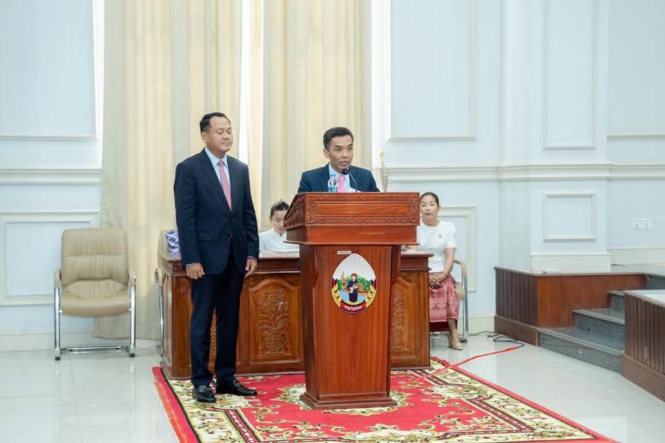 (ព្រៃវែង) :ព្រឹកថ្ងៃទី២៦ ខែសីហា ឆ្នាំ២០២៥ នេះ ឯកឧត្តម សួន សុម៉ាលីន អភិបាល នៃគណ:អភិបាលខេត្តព្រៃវែង និងលោក ឡុង ថាត សមាជិកក្រុមប្រឹក្សាខេត្ត តំណាងលោក ស្បោង សារ៉ាត ប្រធានក្រុមប្រឹក្សាខេត្ត បានអញ្ជើញចូលរួមក្នុងពិធីប្រកាសចូលកាន់មុខតំណែងអភិបាលរង នៃគណៈអភិបាលខេត្តព្រៃវែង ក្រោមអធិបតីភាពដ៏ខ្ពង់ខ្ពស់ ឯកឧត្តម ផាន់ ចាន់ធុល រដ្ឋលេខាធិការ ក្រសួងមហាផ្ទៃ តំណាងដ៏ខ្ពង់ខ្ពស់ ឯកឧត្តមអភិសន្តិបណ្ឌិត ស សុខា ឧបនាយករដ្ឋមន្រ្តី រដ្ឋមន្រ្តីក្រសួងមហាផ្ទៃ ដែលប្រារព្ធធ្វើឡើងនៅសាលប្រជុំធំ «A» សាលាខេត្តព្រៃវែង។