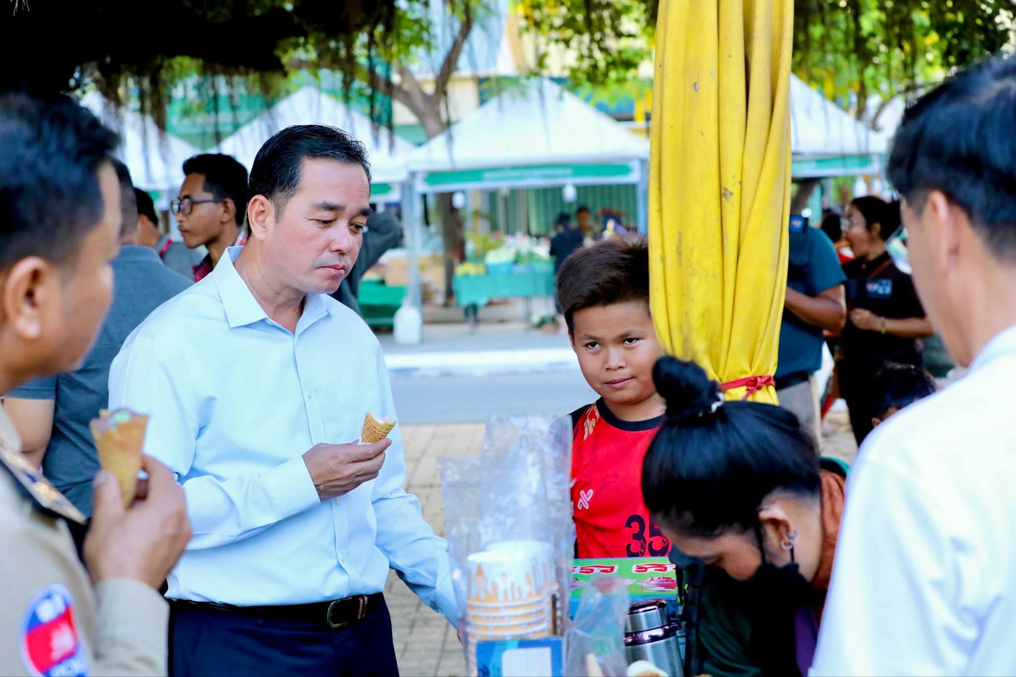 (កំពង់ចាម): ឯកឧត្តម អ៊ុន ចាន់ដា អភិបាលនៃគណៈអភិបាលខេត្តកំពង់ចាម នារសៀលថ្ងៃទី០៥ ខែមេសា ឆ្នាំ២០២៦ បានអញ្ជើញចុះពិនិត្យ ការគូរគំនូរតាមបណ្តោយច្រាំងទន្លេមេគង្គ ដែលរូបគំនូរនីមួយៗ មានគូររូបវីរៈកងទ័ពកម្ពុជា ដែលជាវីរកងទ័ពដល់អង់អាចក្លាហ៊ាន ការពារទឹកដី ជាខឿនការពារដ៏រឹងមាំ សម្រាប់ប្រជាពលរដ្ឋកម្ពុជា។