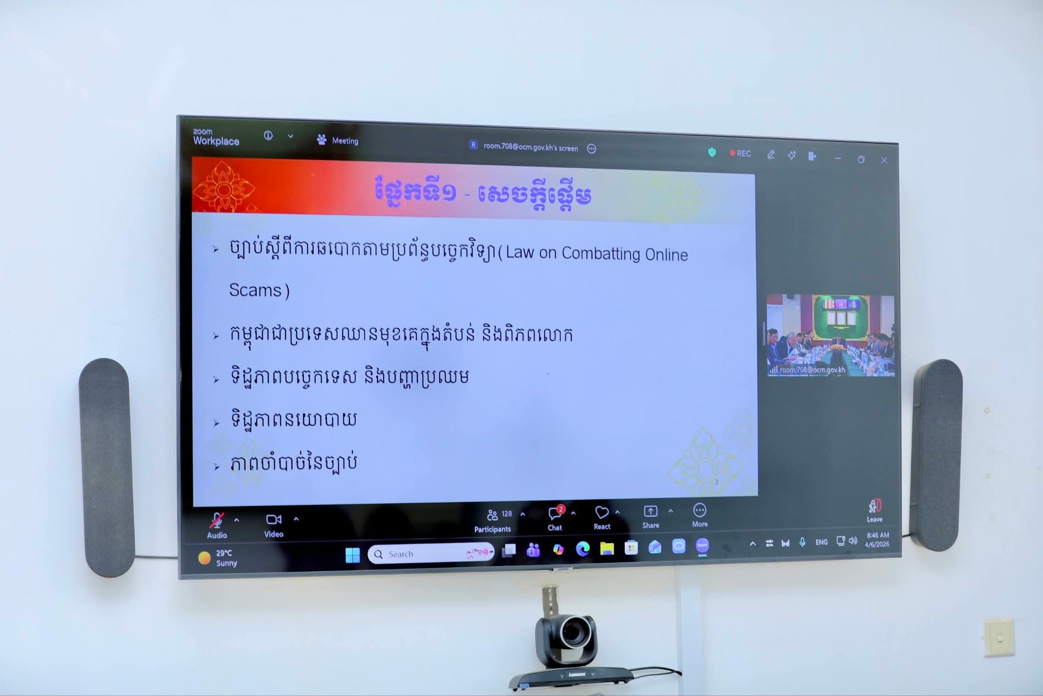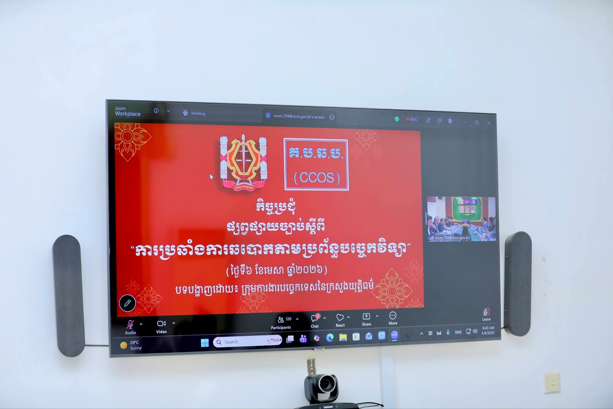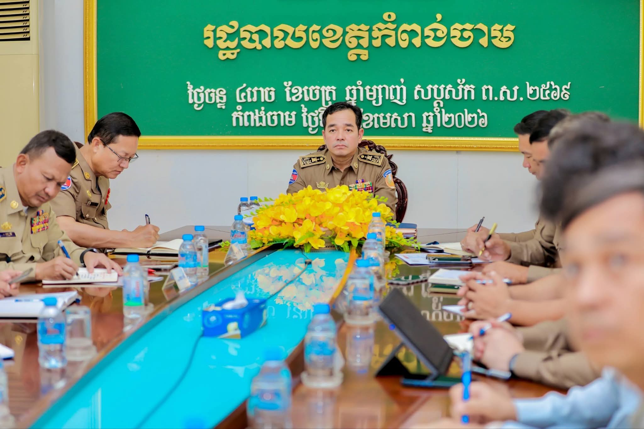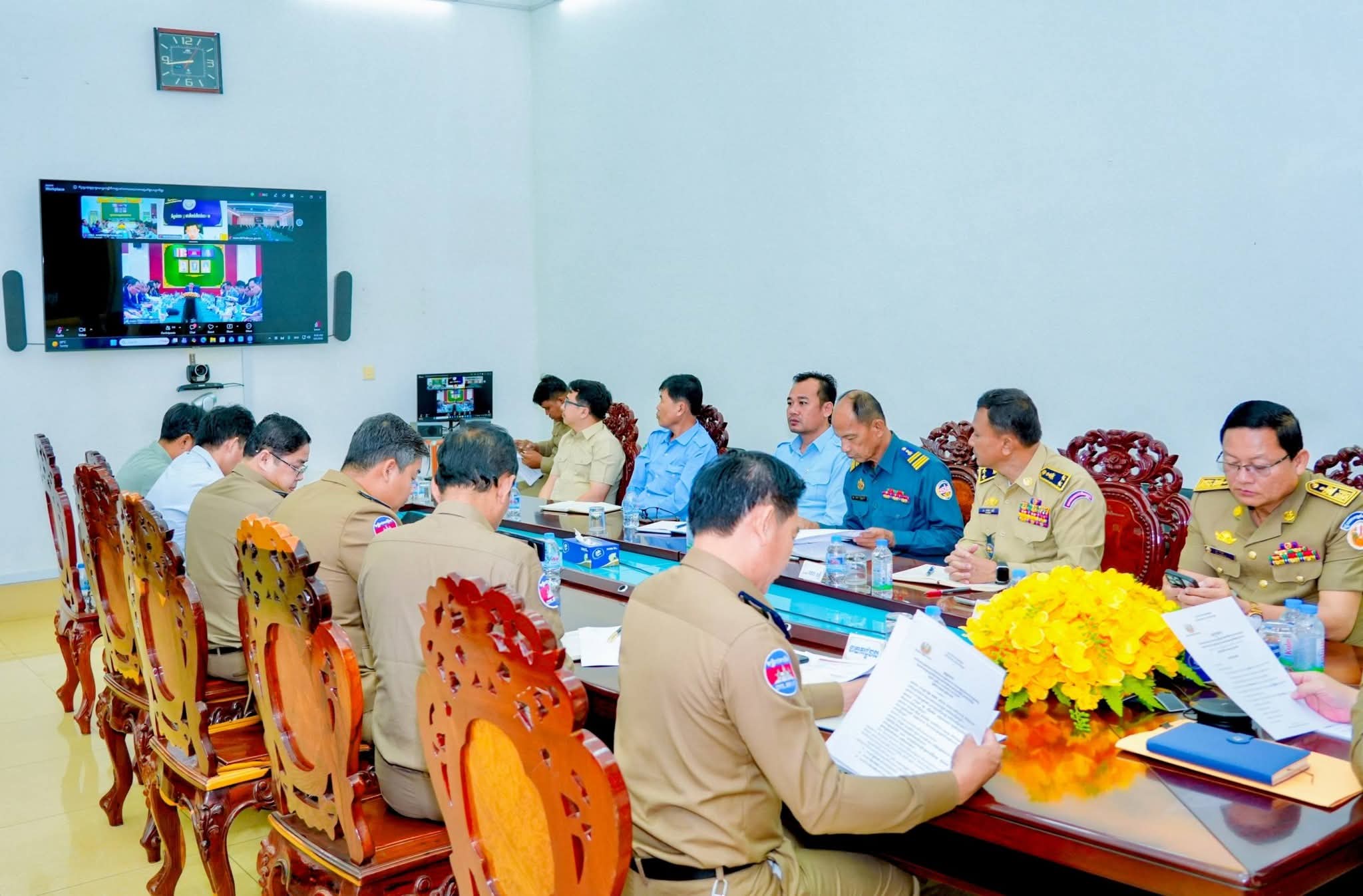 (កំពង់ចាម) : នៅព្រឹកថ្ងៃទី៦ ខែមេសា ឆ្នាំ២០២៦ ឯកឧត្តម អ៊ុន ចាន់ដា អភិបាលនៃគណៈអភិបាលខេត្តកំពង់ចាម និងជាប្រធានគណៈបញ្ជាការឯកភាពខេត្ត បានដឹកនាំក្រុមការងារខេត្ត អញ្ជើញចូលរួមកិច្ចប្រជុំផ្សព្វផ្សាយច្បាប់ស្តីពីការប្រឆាំងការឆបោកតាមប្រព័ន្ធបច្ចេកវិទ្យា Online Sca ក្រោមអធិបតីភាពឯកឧត្តម សន្តិបណ្ឌិត ឆៃ ស៊ីណារិទ្ធ ទេសរដ្ឋមន្ត្រីទទួលបន្ទុកបេសកកម្មពិសេស អនុប្រធានប្រចាំការ និងជាប្រធានលេខាធិការដ្ឋាន គ.ប.ឆ.ប. តាមប្រព័ន្ធអនឡាញZoom ស្ថិតនៅបន្ទប់វីដេអូConference សាលាខេត្ត។
