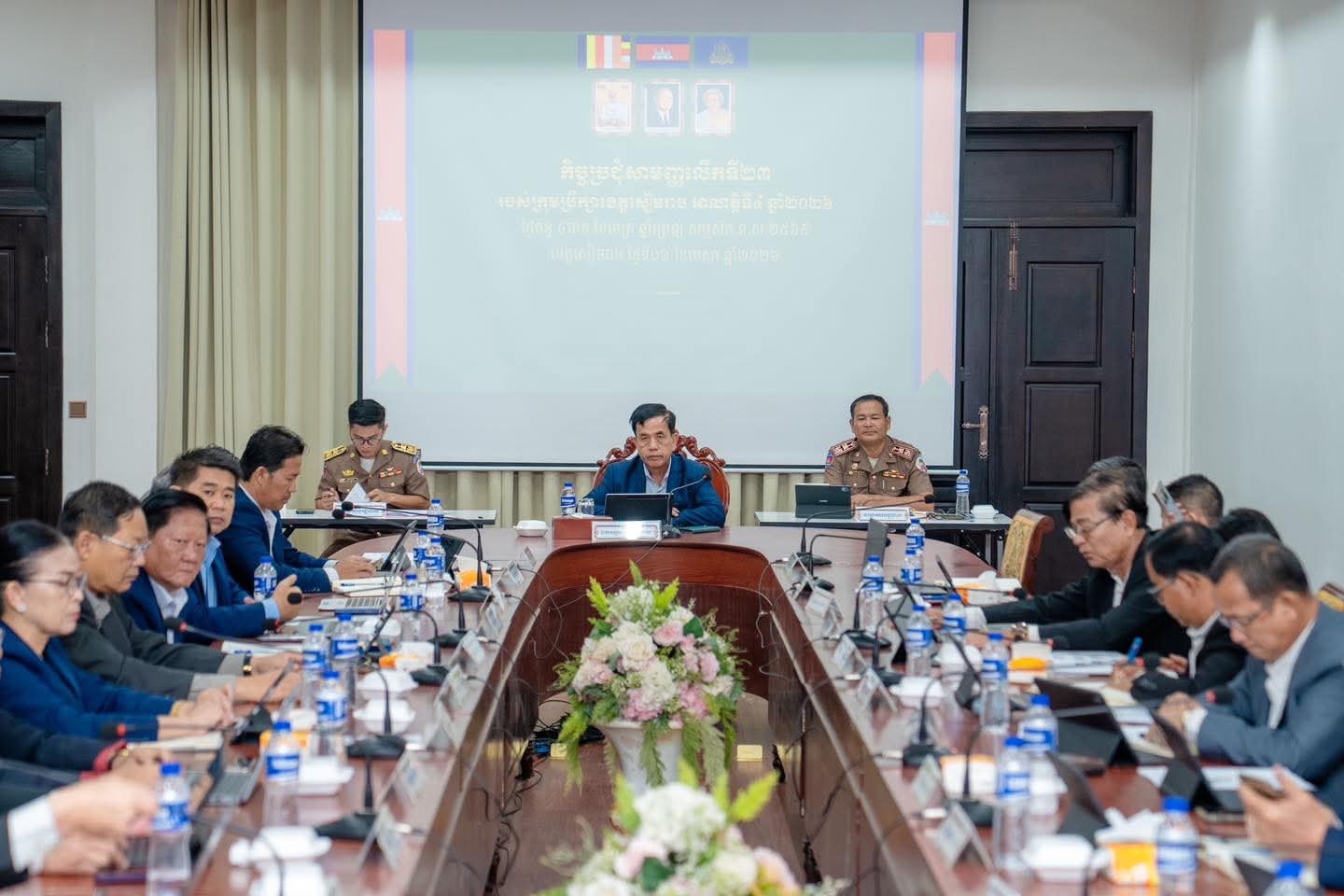 ខេត្តសៀមរាប: នៅព្រឹកថ្ងៃទី៦ ខែមេសា ឆ្នាំ២០២៦ រដ្ឋបាលខេត្តសៀមរាប បានបើកកិច្ចប្រជុំសាមញ្ញលើកទី២៣ របស់ក្រុមប្រឹក្សាខេត្តសៀមរាប ក្រោមកិច្ចដឹកនាំរបស់ ឯកឧត្តម លី សំរិទ្ធ ប្រធានក្រុមប្រឹក្សាខេត្ត និង លោក នាក់ ណេរ៉ុន អភិបាលរងខេត្ត ដោយកិច្ចប្រជុំបានបន្ថែមនូវរបៀបវារៈ ស្តីពីការពង្រឹងរបៀបរបបធ្វើការងាររបស់ការិយាល័យប្រជាពលរដ្ឋរាជធានីខេត្ត ខណ្ឌ ក្រុង ស្រុក ក្រោយពីសន្និបាតរបស់ក្រសួងមហាផ្ទៃ ដែលបានជំរុញដល់ការិយាល័យប្រជាពលរដ្ឋបានដំណើរការទៅបានល្អបន្ថែមទៀត ជាពិសេសបញ្ហាតម្លៃទឹកស្រោចស្រពស្រែប្រាំង បញ្ហាអគ្គិសនី និងបញ្ហាក្មេងទំនើង។