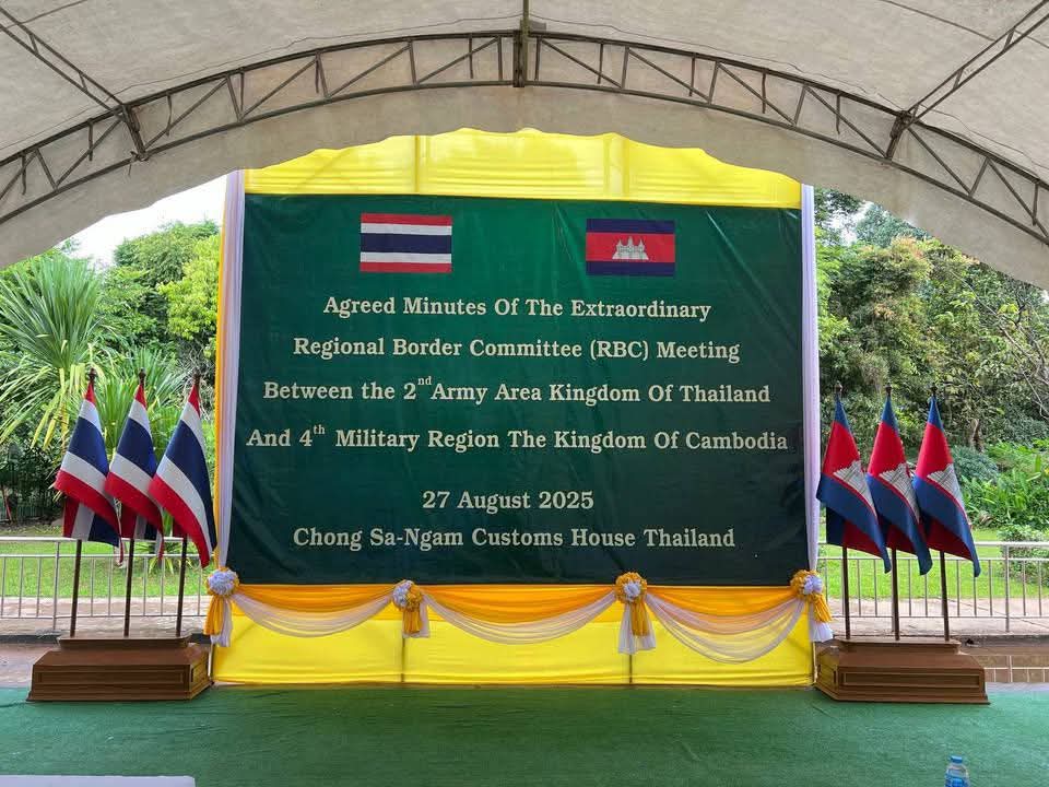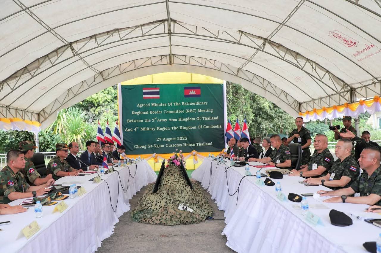 (ឧត្តរមានជ័យ)៖ ដូចអ្វីដែលបានគ្រោងទុក នៅព្រឹកថ្ងៃទី២៧ ខែសីហា ឆ្នាំ២០២៥នេះ កិច្ចប្រជុំវិសាមញ្ញរបស់គណៈកម្មាធិការព្រំដែនថ្នាក់យោធភូមិភាគកម្ពុជា-ថៃ (RBC) ដែលធ្វើឡើងរវាងមេបញ្ជាការយោធភូមិភាគទី៤ កម្ពុជា ជាមួយមេបញ្ជាការយោធភូមិភាគទី២ របស់ថៃ បានធ្វើឡើងនៅច្រកទ្វារព្រំដែនអន្ដរជាតិជាំ ខេត្តឧត្តរមានជ័យ។