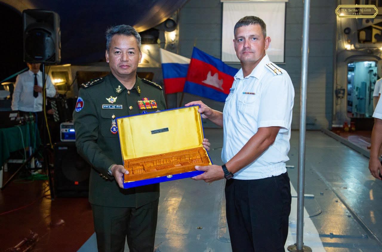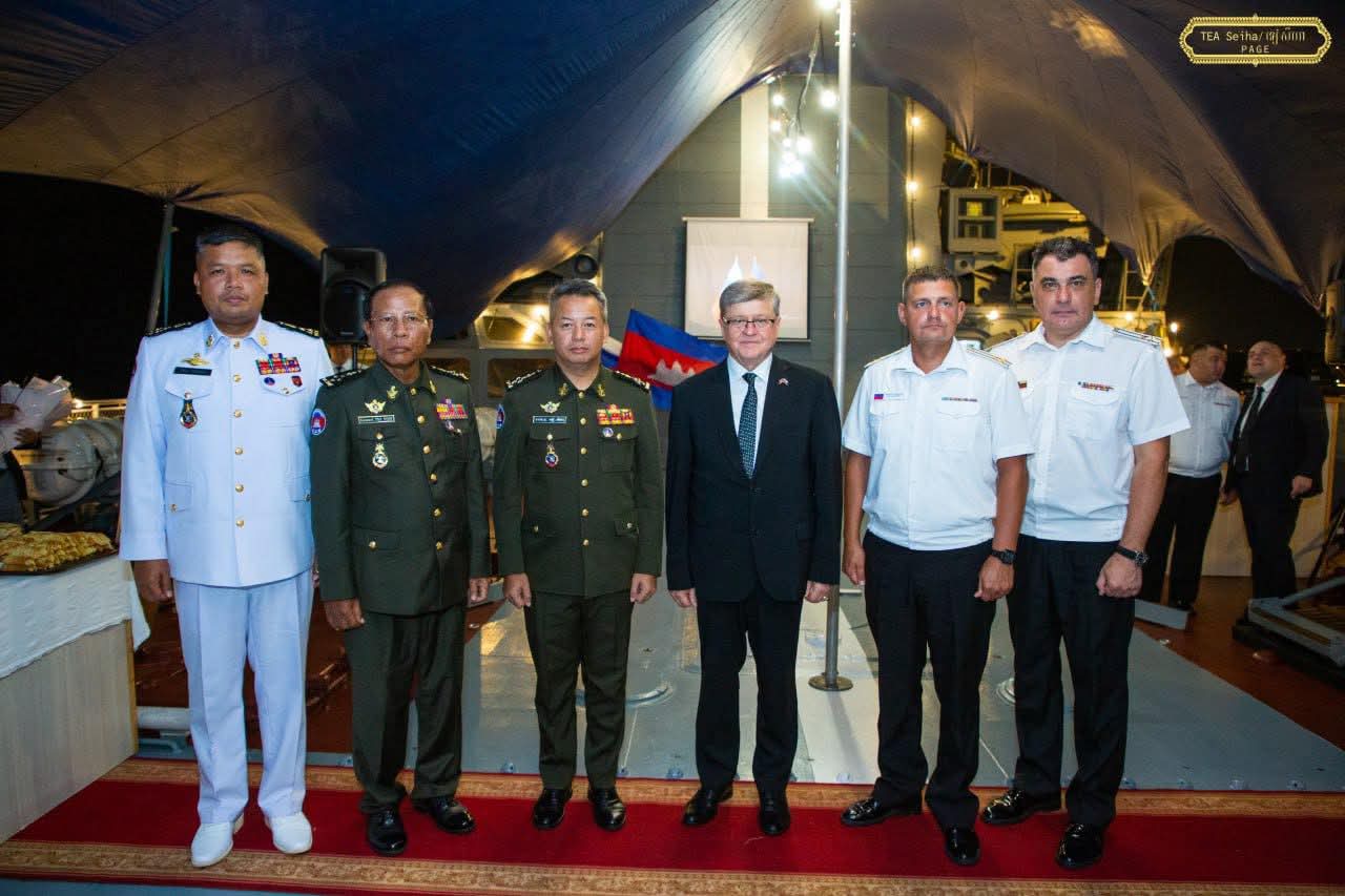 ខេត្តព្រះសីហនុ: យោងតាមការបង្ហោះផ្សាយរបស់ក្រសួងការពារជាតិបានឲ្យដឹងថានៅថ្ងៃទី៧ ខែមេសា ឆ្នាំ២០២៦ ឯកឧត្តម នាយឧត្តមសេនីយ៍ ទៀ សីហា ឧបនាយករដ្ឋមន្ត្រី រដ្ឋមន្ត្រីក្រសួងការពារជាតិបានទទួលសូមស្វាគមន៍នាវាចម្បាំងរបស់រុស្ស៊ីចំនួន២គ្រឿង (នាវា Sovershenny លេខ៣៣៣ និងនាវា Rezky លេខ៣៤៣) មកពីកងនាវាប្រចាំតំបន់ប៉ាស៊ីហ្វិកនៃកងទ័ពជើងទឹកសហព័ន្ធរុស្ស៊ី ដែលបានចូលចតនៅកំពង់ផែស្វយ័តក្រុងព្រះសីហនុ ដើម្បីបំពេញទស្សនកិច្ចរយៈពេល៣ថ្ងៃនៅកម្ពុជាជាមួយនាវិកសរុបប្រមាណ២៦២នាក់។
