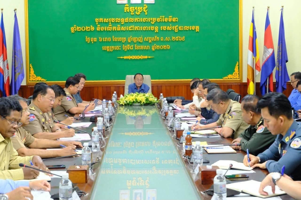 ការណែនាំរបស់ ឯកឧត្តម វ៉ា ថន អភិបាលខេត្តក្រចេះ នាឱកាសអញ្ជើញជាអធិបតីក្នុងកិច្ចប្រជុំបូកសរុបលទ្ធផលការងារប្រចាំខែមីនា និងលើកទិសដៅការងារឆ្នាំ២០២៦ របស់រដ្ឋបាលខេត្ត នៅថ្ងៃពុធ ទី០៨ ខែមេសា ឆ្នាំ២០២៦ ដោយមានការចូលរួមពី អភិបាលរងខេត្ត លោក លោកស្រី នាយក នាយករងរដ្ឋបាលសាលាខេត្ត ស្នងការរងនគរបាលខេត្ត មេបញ្ជាការរងកងរាជអាវុធហត្ថខេត្ត មេបញ្ជាការរងតំបន់ប្រតិបត្តិការសឹករងក្រចេះ ប្រធានមន្ទីរ-អង្គភាពជុំវិញខេត្ត អភិបាលក្រុង/ស្រុកទាំង៧ នាយកទីចាត់ការ ប្រធានអង្គភាពទាំង២ និងមន្ត្រីពាក់ព័ន្ធ។