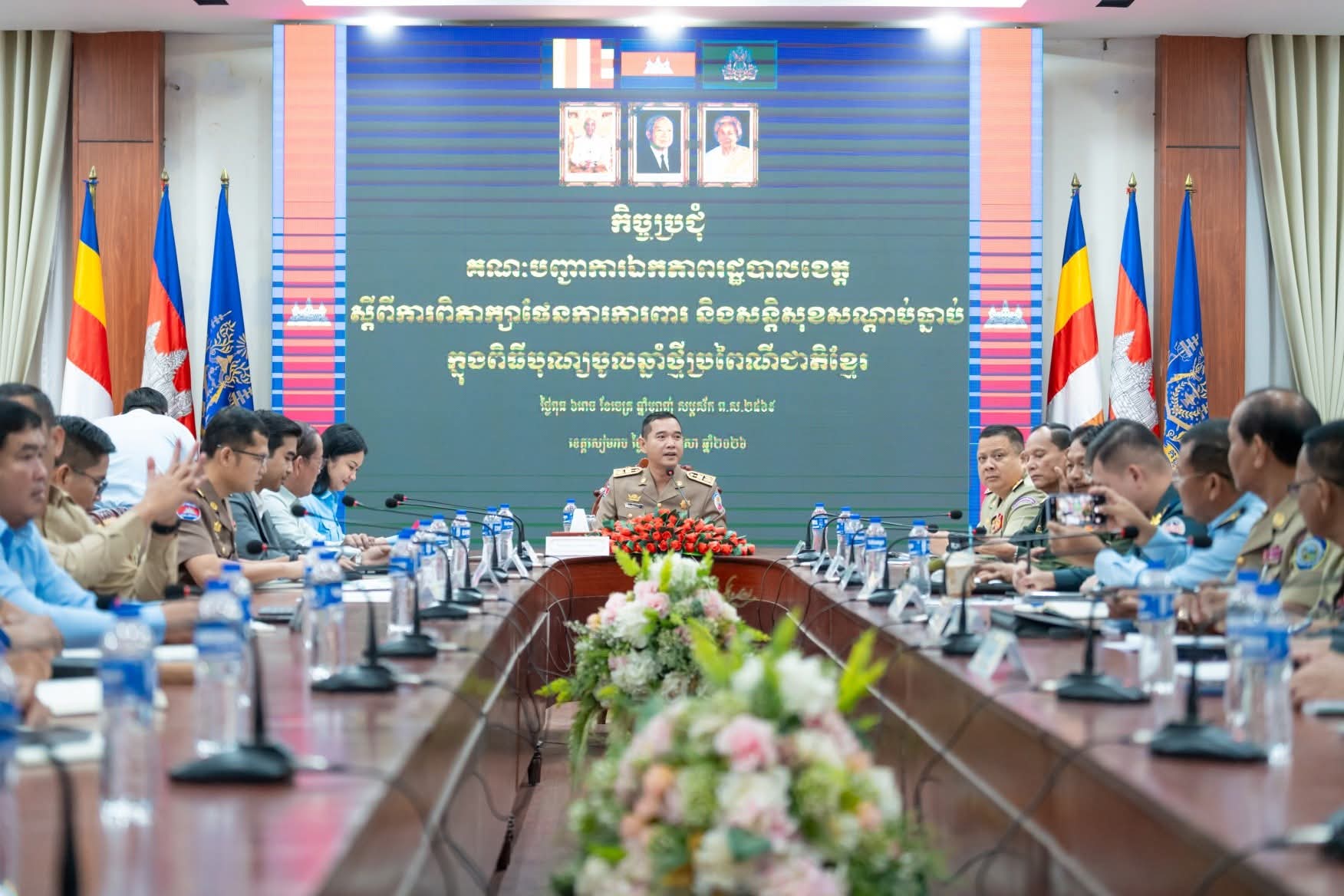 ខេត្តសៀមរាប: នៅព្រឹកថ្ងៃទី០៨ ខែមេសា ឆ្នាំ២០២៦ ឯកឧត្តម ប្រាក់ សោភ័ណ អភិបាលខេត្ដសៀមរាប បានអញ្ជើញជាអធិបតីភាពដ៏ខ្ពង់ខ្ពស់ក្នុងកិច្ចប្រជុំគណៈបញ្ជាការឯកភាពរដ្ឋបាលខេត្ដស្ដីពីការពិភាក្សាផែនការការពារ និងសន្ដិសុខ សណ្ដាប់ធ្នាប់ក្នុងពិធីបុណ្យចូលឆ្នាំប្រពៃណីជាតិខ្មែរ ដោយមានការចូលពីកងកម្លាំងប្រដាប់អាវុធទាំង៣ប្រភេទ លោកអភិបាលក្រុងស្រុកទាំង១៣ នាយក នាយករងរដ្ឋបាលសាលាខេត្ដ និងតំណាងមន្ទីរអង្គភាពពាក់ព័ន្ធជាច្រើនរូប។