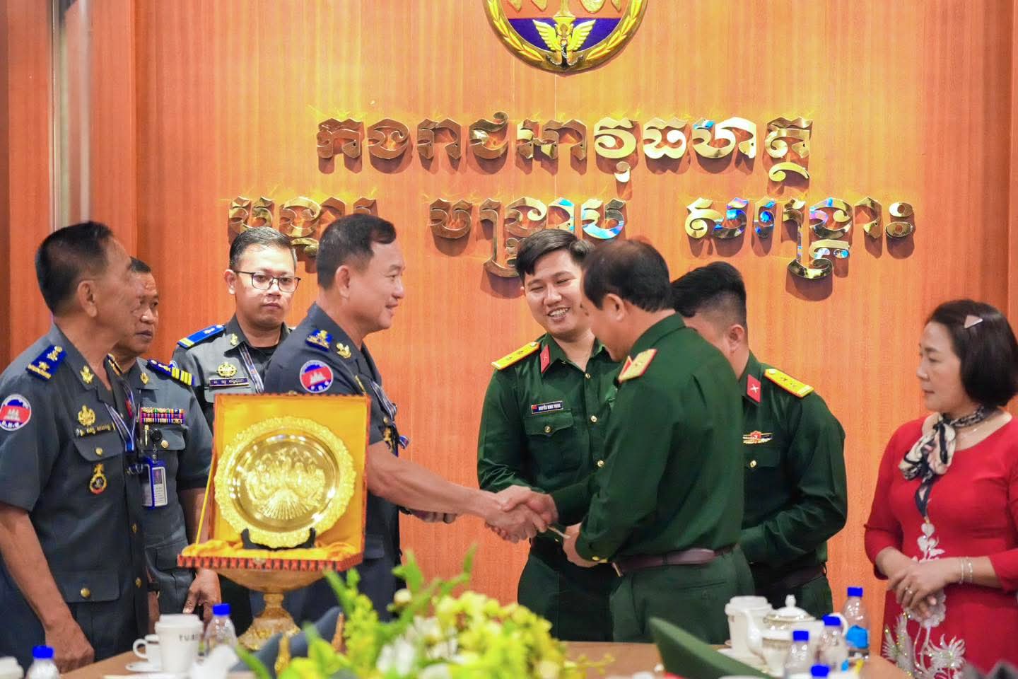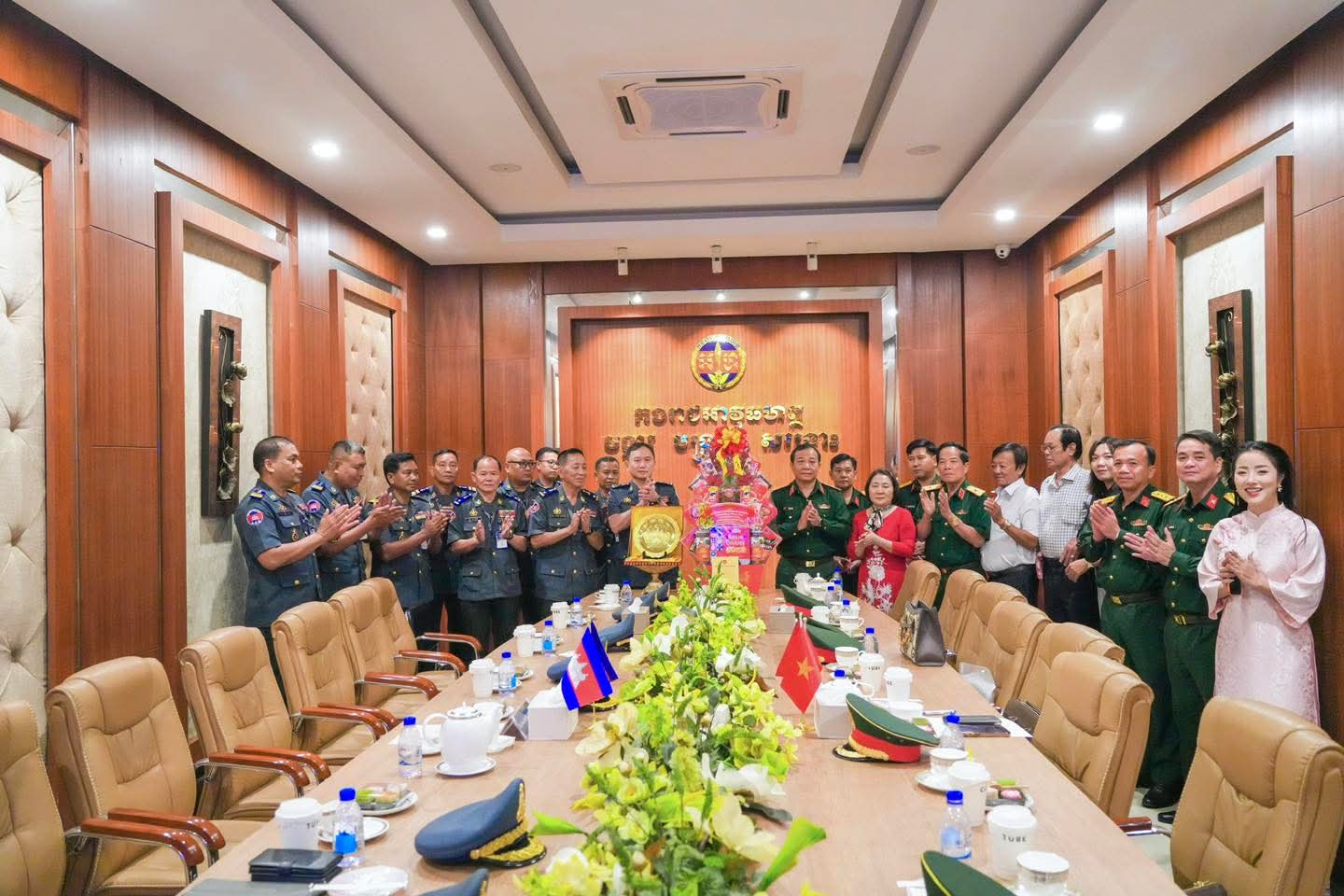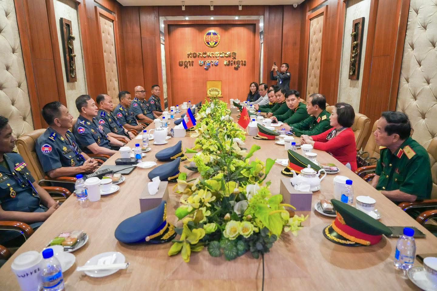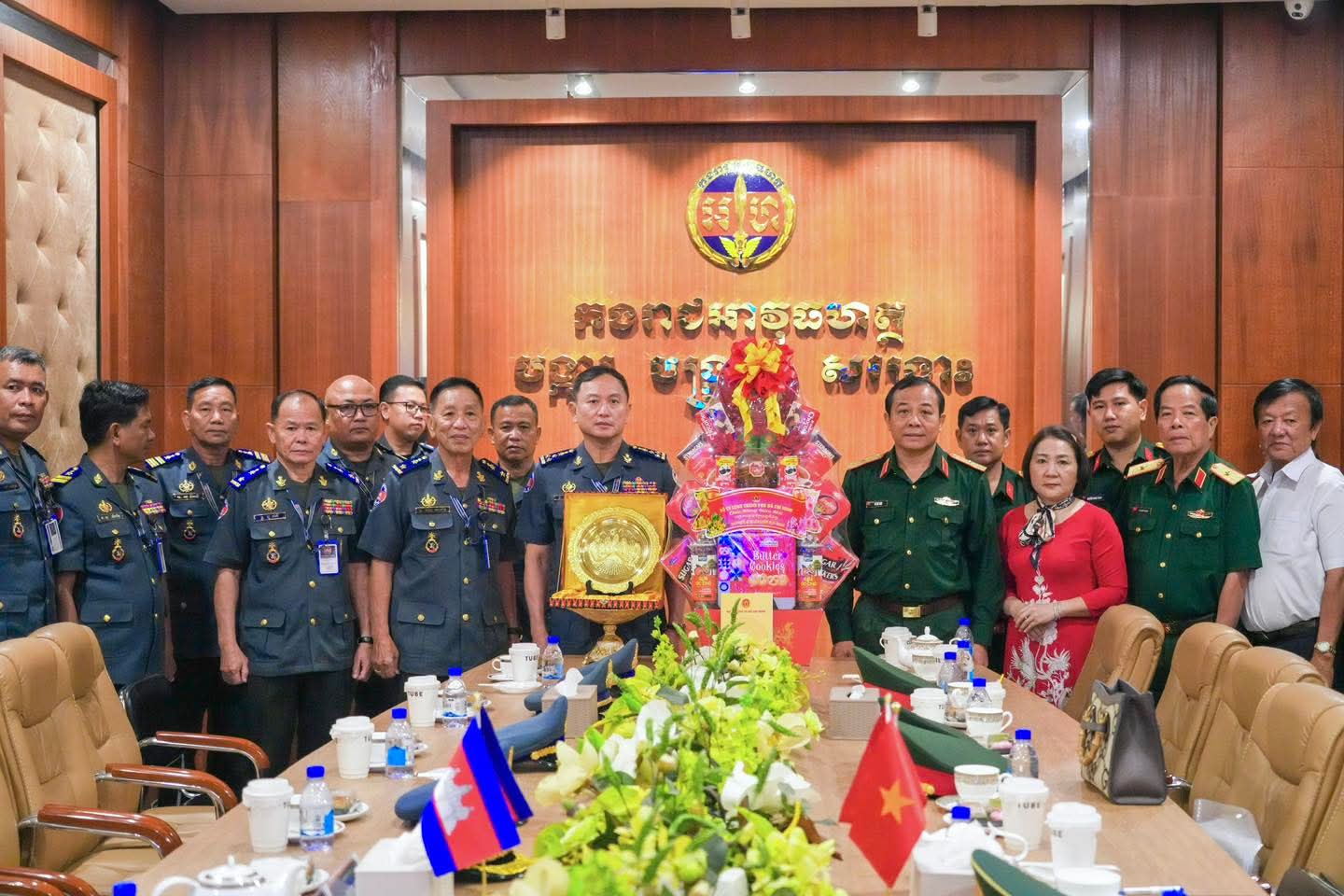 (ភ្នំពេញ) : នៅថ្ងៃទី០៩ ខែមេសា ឆ្នាំ២០២៦ លោកឧត្តមសេនីយ៍ឯក រ័ត្ន ស៊្រាង មេបញ្ជាការរង កងរាជអាវុធហត្ថលើផ្ទៃប្រទេស ជាមេបញ្ជាការ កងរាជអាវុធហត្ថរាជធានីភ្នំពេញ អមដោយលោក លោកមេបញ្ជាការរង នាយសេនាធិការរង ប្រធាន-អនុប្រធានមន្ទីរ បានធ្វើបដិសណ្ឋារកិច្ច គណៈប្រតិភូយោធាទីក្រុងហូជីមិញ នៃកងទ័ពប្រជាជនវៀតណាម ដឹកនាំដោយ លោកឧត្តមសេនីយ៍ត្រី វូ វ៉ាន់ឌៀន មេបញ្ជាការ បញ្ជាការដ្ឋាន យោធាទីក្រុងហូជីមិញ ដែលបានអញ្ជើញមកដល់បញ្ជាការដ្ឋាន កងរាជអាវុធហត្ថរាជធានីភ្នំពេញ ដើម្បីជួបសំណេះសំណាលសួរសុខទុក្ខ និងជូនពរ ក្នុងឱកាសបុណ្យចូលឆ្នាំថ្មីប្រពៃណីជាតិខ្មែរ ដែលនឹងមកដល់នាពេលខាងមុខនេះ។