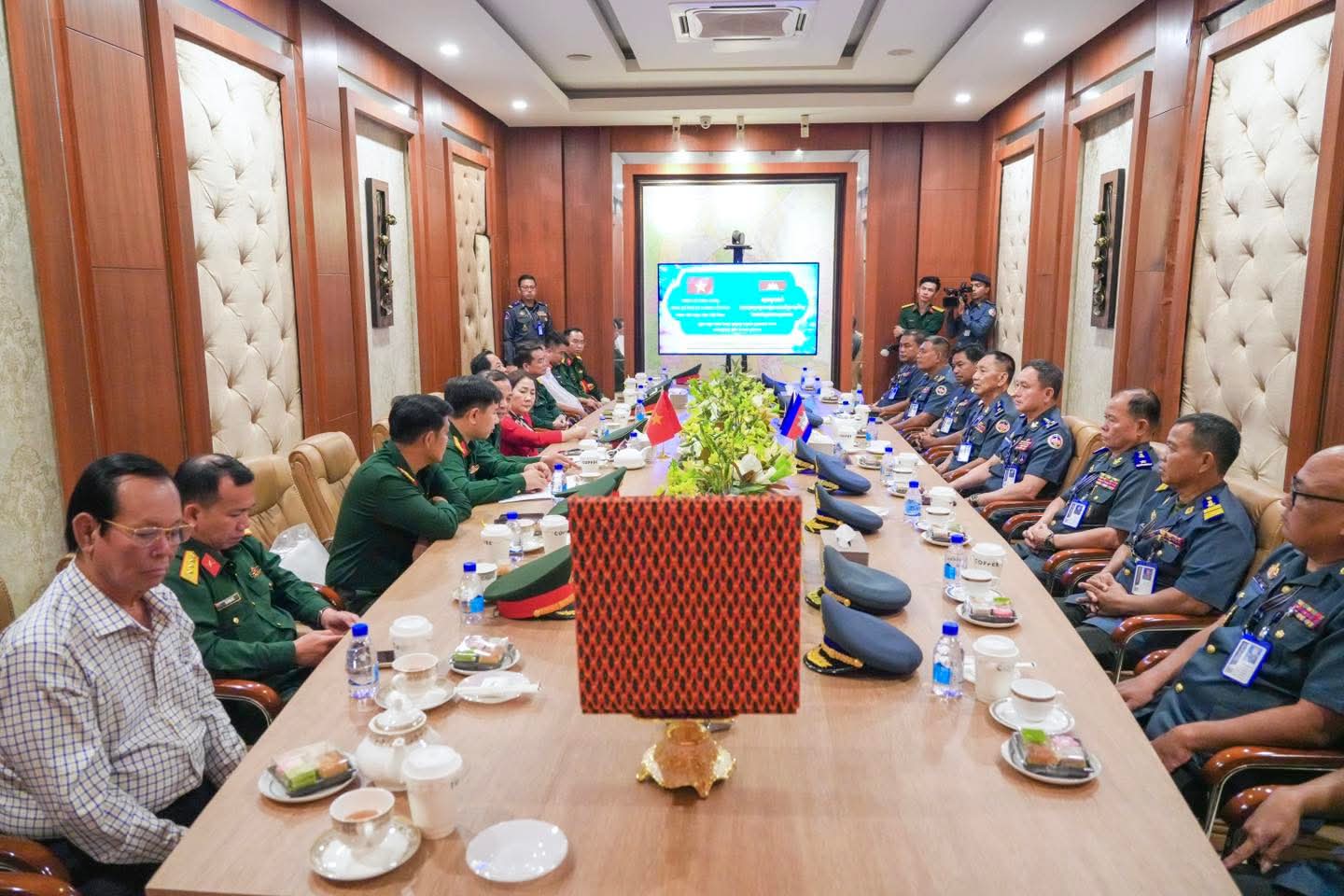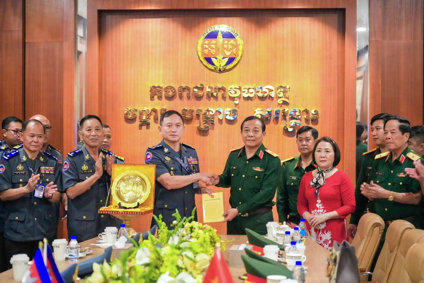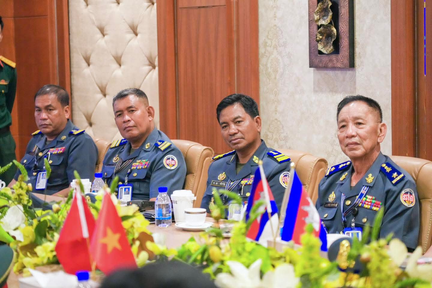 (ភ្នំពេញ) : នៅថ្ងៃទី០៩ ខែមេសា ឆ្នាំ២០២៦ លោកឧត្តមសេនីយ៍ឯក រ័ត្ន ស៊្រាង មេបញ្ជាការរង កងរាជអាវុធហត្ថលើផ្ទៃប្រទេស ជាមេបញ្ជាការ កងរាជអាវុធហត្ថរាជធានីភ្នំពេញ អមដោយលោក លោកមេបញ្ជាការរង នាយសេនាធិការរង ប្រធាន-អនុប្រធានមន្ទីរ បានធ្វើបដិសណ្ឋារកិច្ច គណៈប្រតិភូយោធាទីក្រុងហូជីមិញ នៃកងទ័ពប្រជាជនវៀតណាម ដឹកនាំដោយ លោកឧត្តមសេនីយ៍ត្រី វូ វ៉ាន់ឌៀន មេបញ្ជាការ បញ្ជាការដ្ឋាន យោធាទីក្រុងហូជីមិញ ដែលបានអញ្ជើញមកដល់បញ្ជាការដ្ឋាន កងរាជអាវុធហត្ថរាជធានីភ្នំពេញ ដើម្បីជួបសំណេះសំណាលសួរសុខទុក្ខ និងជូនពរ ក្នុងឱកាសបុណ្យចូលឆ្នាំថ្មីប្រពៃណីជាតិខ្មែរ ដែលនឹងមកដល់នាពេលខាងមុខនេះ។