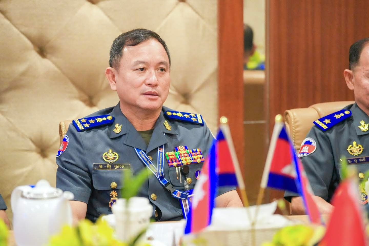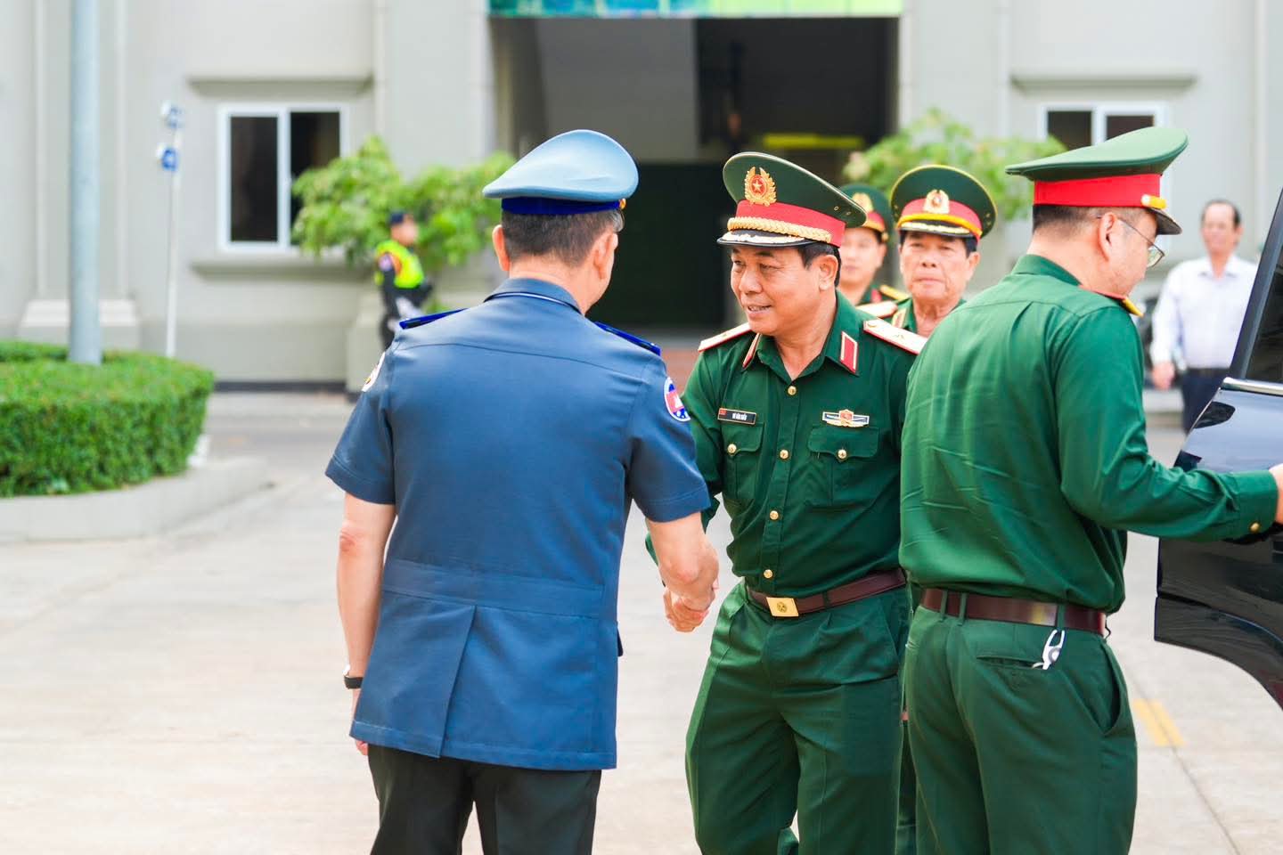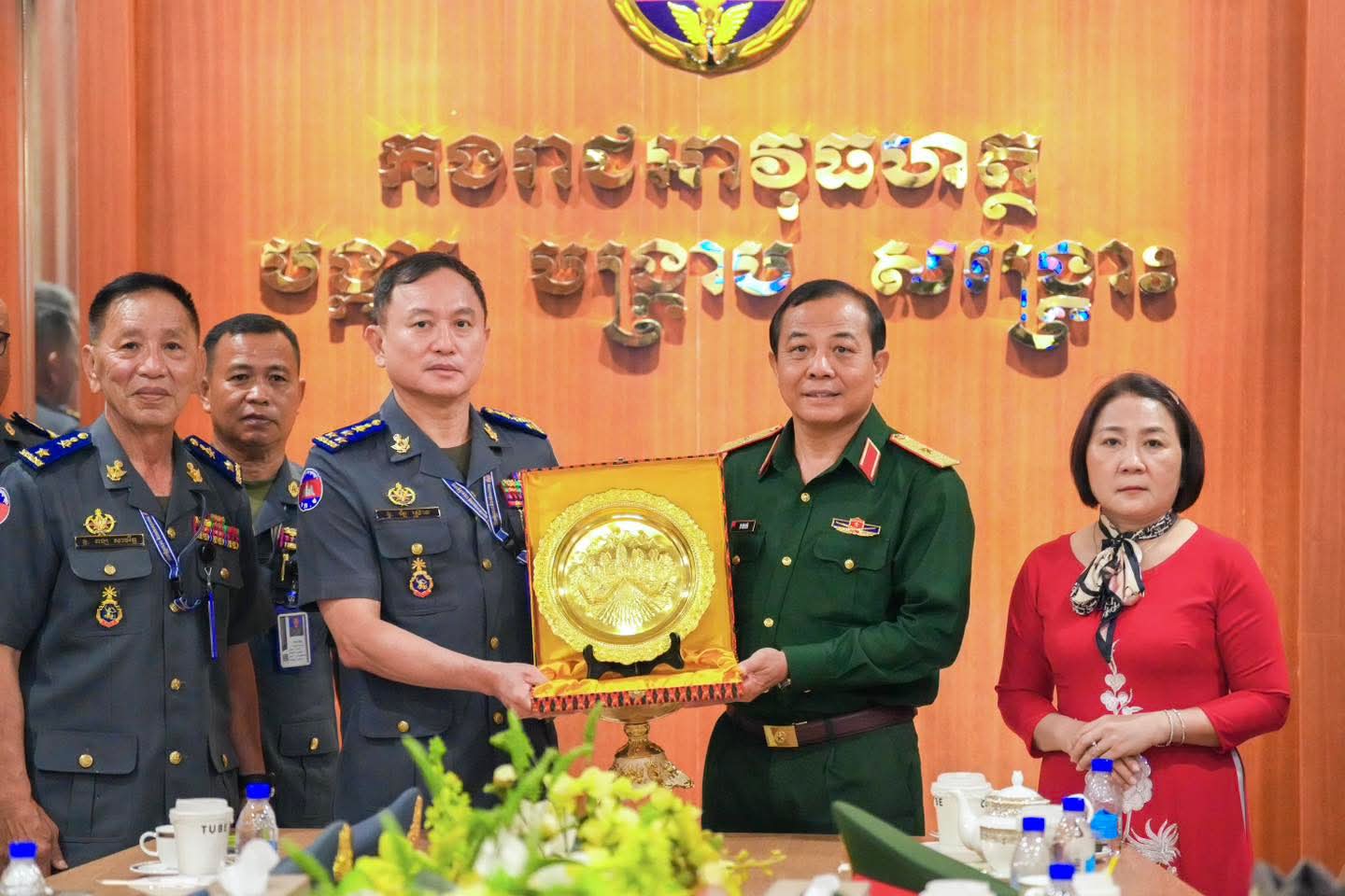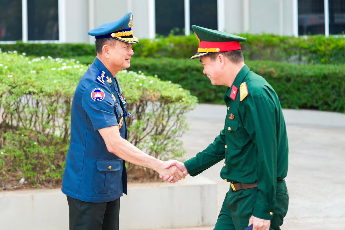 (ភ្នំពេញ) : នៅថ្ងៃទី០៩ ខែមេសា ឆ្នាំ២០២៦ លោកឧត្តមសេនីយ៍ឯក រ័ត្ន ស៊្រាង មេបញ្ជាការរង កងរាជអាវុធហត្ថលើផ្ទៃប្រទេស ជាមេបញ្ជាការ កងរាជអាវុធហត្ថរាជធានីភ្នំពេញ អមដោយលោក លោកមេបញ្ជាការរង នាយសេនាធិការរង ប្រធាន-អនុប្រធានមន្ទីរ បានធ្វើបដិសណ្ឋារកិច្ច គណៈប្រតិភូយោធាទីក្រុងហូជីមិញ នៃកងទ័ពប្រជាជនវៀតណាម ដឹកនាំដោយ លោកឧត្តមសេនីយ៍ត្រី វូ វ៉ាន់ឌៀន មេបញ្ជាការ បញ្ជាការដ្ឋាន យោធាទីក្រុងហូជីមិញ ដែលបានអញ្ជើញមកដល់បញ្ជាការដ្ឋាន កងរាជអាវុធហត្ថរាជធានីភ្នំពេញ ដើម្បីជួបសំណេះសំណាលសួរសុខទុក្ខ និងជូនពរ ក្នុងឱកាសបុណ្យចូលឆ្នាំថ្មីប្រពៃណីជាតិខ្មែរ ដែលនឹងមកដល់នាពេលខាងមុខនេះ។