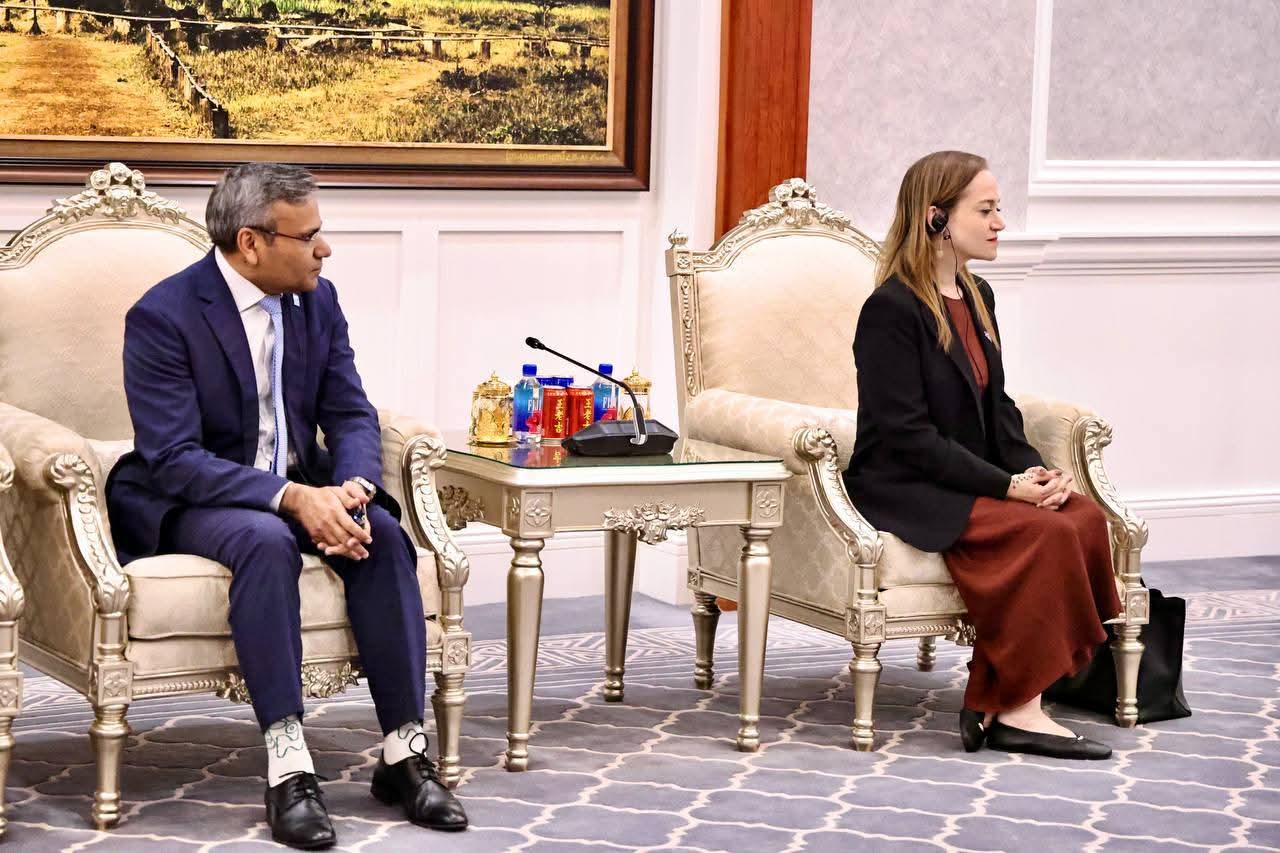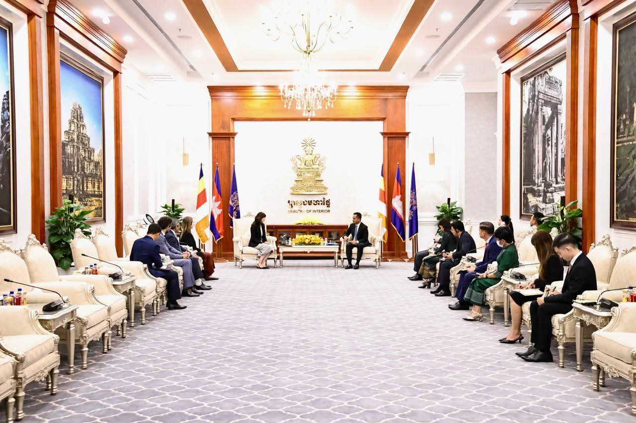 (ភ្នំពេញ) :ឯកឧត្តមអភិសន្ដិបណ្ឌិត ស សុខា ឧបនាយករដ្ឋមន្ដ្រី រដ្ឋមន្ដ្រីក្រសួងមហាផ្ទៃ បានទទួលជួបសម្តែងការគួរសម និងពិភាក្សាការងារជាមួយលោកជំទាវ VLADANKA ANDREEVA អ្នកសម្របសម្រួលថ្មី របស់អង្គការសហប្រជាជាតិ ប្រចាំព្រះរាជាណាចក្រកម្ពុជា និងសហការី នៅសាលទទួលភ្ញៀវអន្តរជាតិ នៃទីស្តីការក្រសួងមហាផ្ទៃ នារសៀលថ្ងៃទី៩ ខែមេសា ឆ្នាំ២០២៦៕