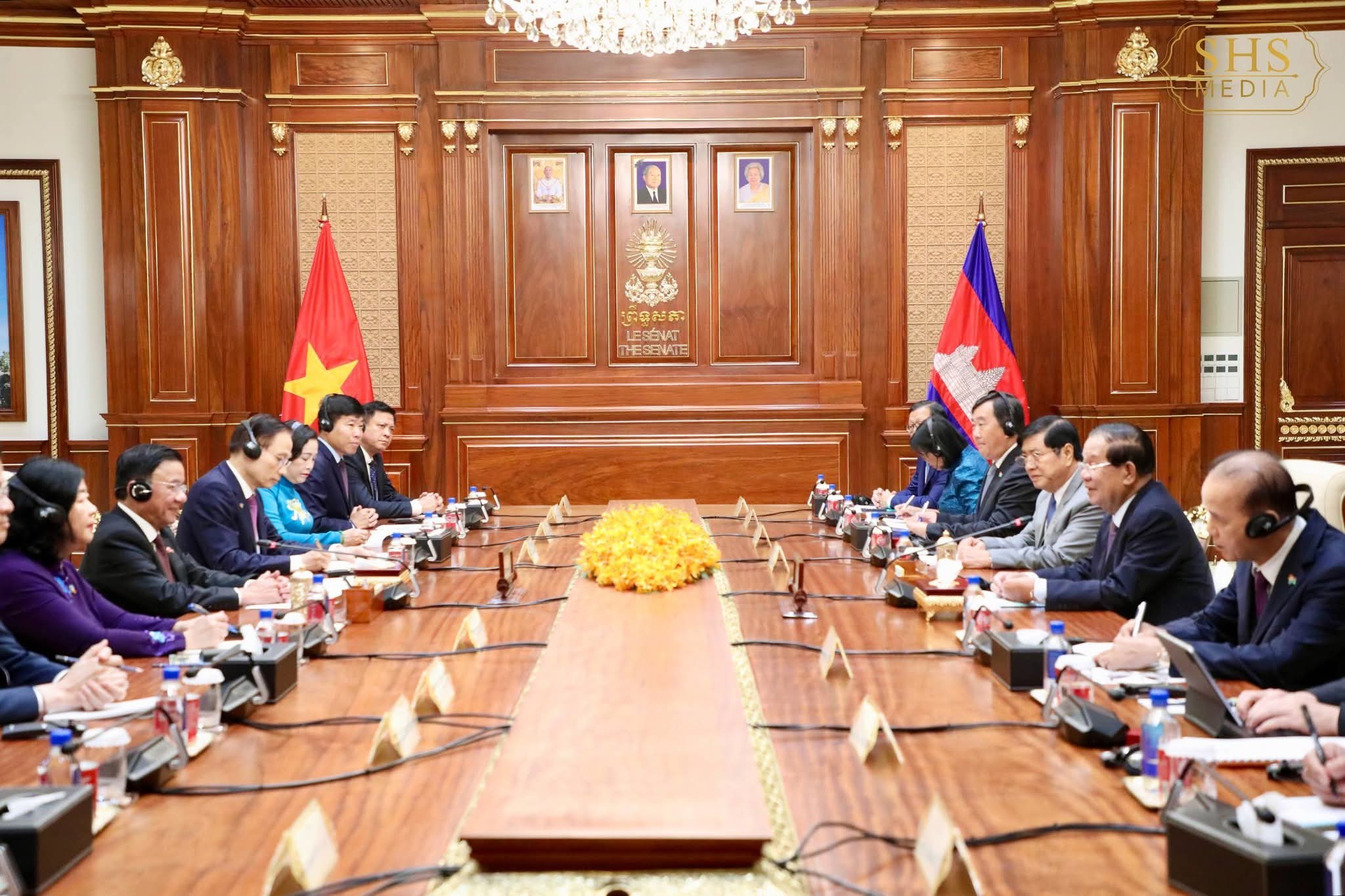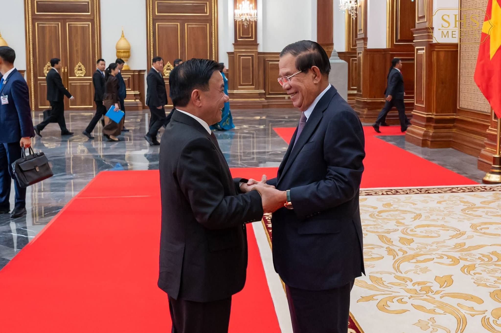 (ភ្នំពេញ) :សម្តេចអគ្គមហាសេនាបតីតេជោ ហ៊ុន សែន ប្រមុខរដ្ឋស្តីទីនៃព្រះរាជាណាចក្រកម្ពុជា និងជាប្រធានគណបក្សប្រជាជនកម្ពុជា អនុញ្ញាតឱ្យ ឯកឧត្តម ត្រិន កឹមទូ (Tram Cam Tu) សមាជិកការិយាល័យនយោបាយ និងជាសមាជិកប្រចាំការ គណៈលេខាធិការមជ្ឈិមបក្សកុម្មុយនីស្តវៀតណាម ចូលជួបសម្ដែងការគួរសម នៅវិមានសាមគ្គីភាពនៃព្រឹទ្ធសភាជាតិ រាជធានីភ្នំពេញ នាព្រឹកថ្ងៃសុក្រ ៨រោច ខែចេត្រ ឆ្នាំម្សាញ់ សប្តស័ក ពុទ្ធសករាជ ២៥៦៩ ត្រូវនឹងថ្ងៃទី១០ ខែមេសា ឆ្នាំ២០២៦។