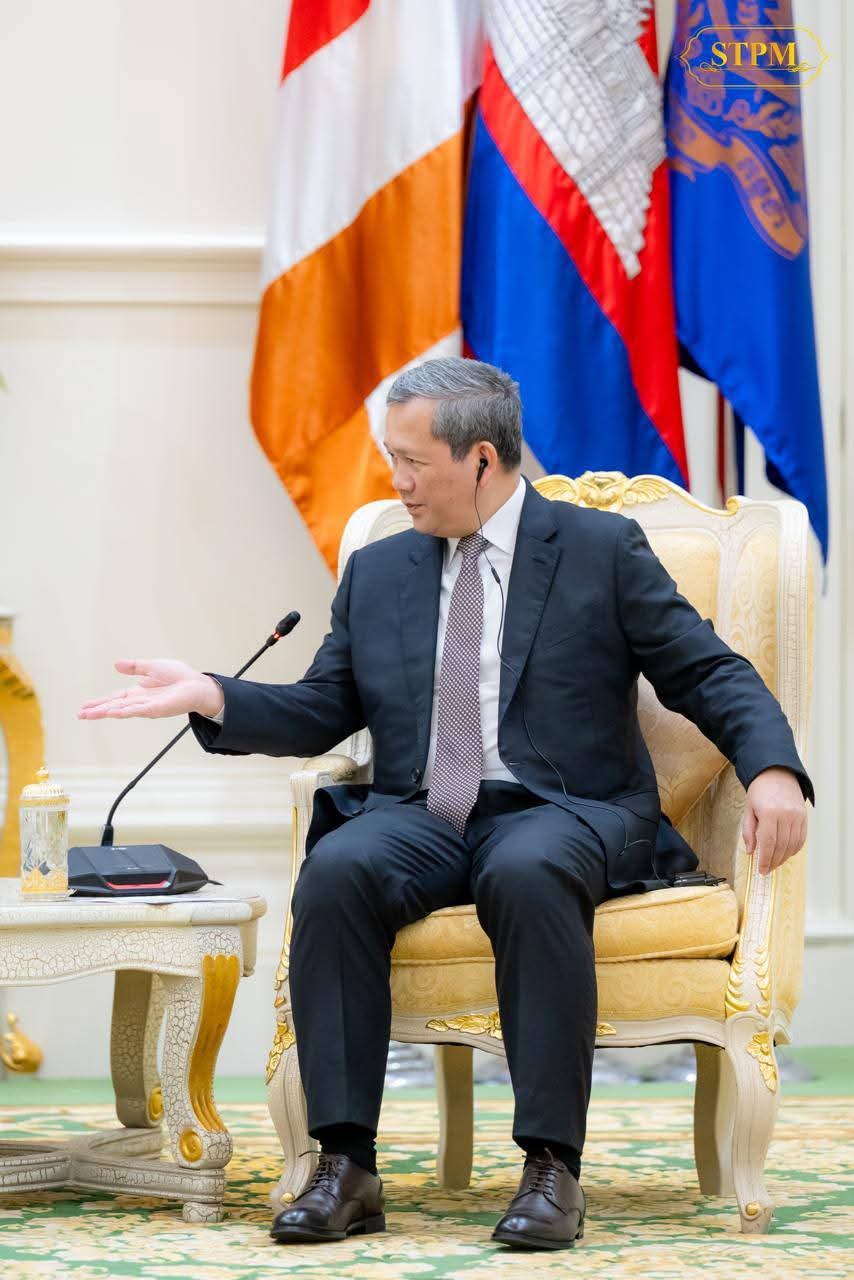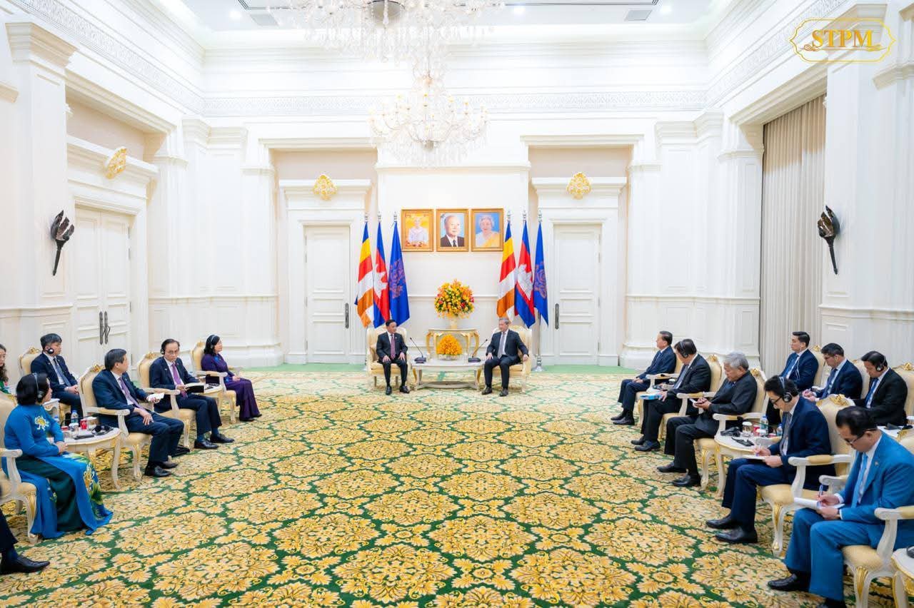 (ភ្នំពេញ) :សម្តេចមហាបវរធិបតី ហ៊ុន ម៉ាណែត នាយករដ្ឋមន្ត្រី នៃព្រះរាជាណាចក្រកម្ពុជា អនុញ្ញាតជូន ឯកឧត្តម ត្រិន កឹមទូ (Tran Cam Tu) សមាជិកការិយាល័យនយោបាយ និងជាសមាជិកប្រចាំការគណៈលេខាធិការមជ្ឈិមបក្សកុម្មុយនីស្តវៀតណាម ចូលជួបសំដែងការគួរសម នាព្រឹកថ្ងៃទី១០ ខែមេសា ឆ្នាំ២០២៦ នៅវិមានសន្តិភាព រាជធានីភ្នំពេញ។