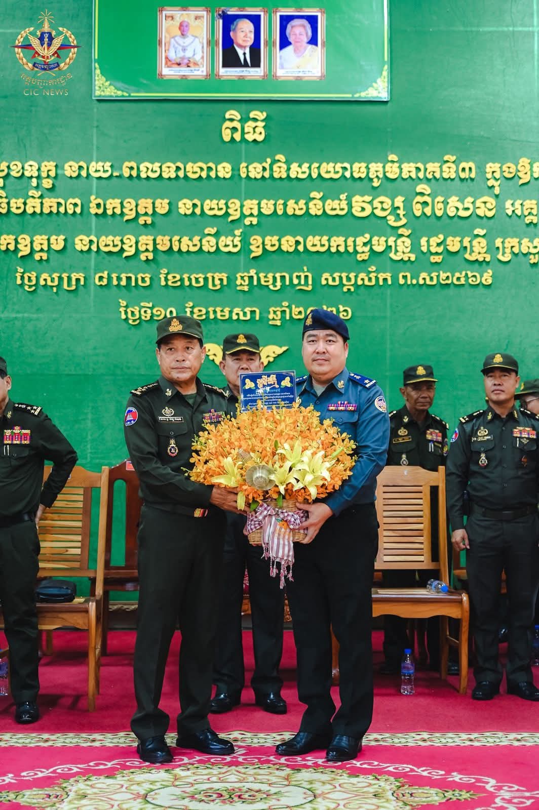 លោកឧត្តមសេនីយ៍ទោ អ៊ុយ ហៀង មេបញ្ជាការយោធភូមិភាគទី៣ បានសម្តែងនូវការស្វាគមន៍ និងសោមនស្សរីករាយចំពោះវត្តមានរបស់ឯកឧត្តមអគ្គមេបញ្ជាការនាពេលនេះ ធ្វើឱ្យកងទ័ពមានអារម្មណ៍កក់ក្តៅ មានទឹកចិត្តមោះមុតក្នុងការបំពេញភារកិច្ចជូនជាតិមាតុភូមិ ព្រោះថា “សុខទុក្ខរបស់កងទ័ព គឺជាសុខទុក្ខរបស់ថ្នាក់ដឹកនាំ”។