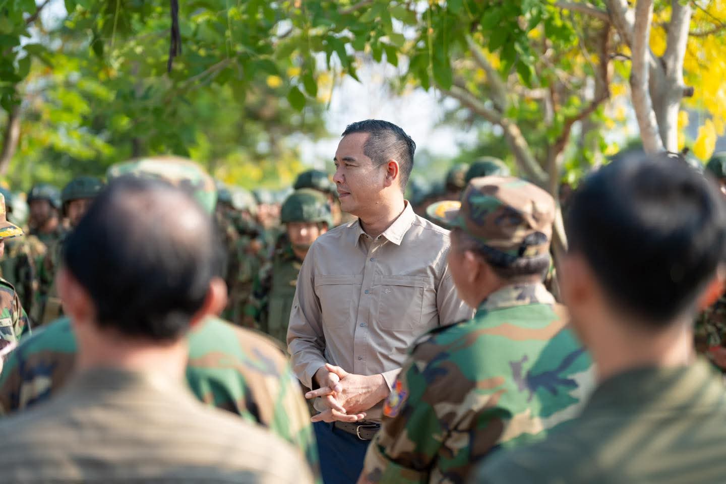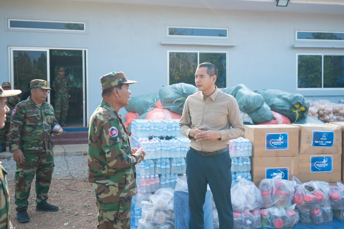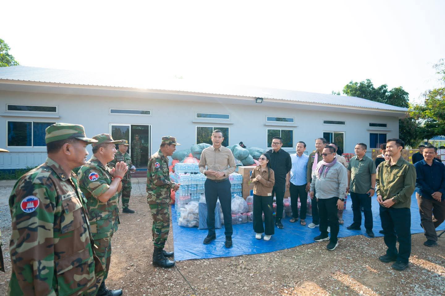 ឯកឧត្តម ប្រាក់ សោភ័ណ បានពាំនាំនូវការផ្តាំផ្ញើសួរសុខទុក្ខ និងសេចក្ដីនឹករលឹកពីសំណាក់សម្តេចតេជោ ហ៊ុន សែន ប្រធានព្រឹទ្ធសភា និងសម្តេចធិបតី ហ៊ុន ម៉ាណែត នាយករដ្ឋមន្ត្រីនៃព្រះរាជាណាចក្រកម្ពុជា ដែលតែងយកចិត្តទុកដាក់ និងព្រួយបារម្ភពីសុខទុក្ខរបស់បងប្អូនវីរៈកងទ័ពជួរមុខគ្រប់កាលៈទេសៈ ក្នុងពេលដែលប្រទេសជិតខាងបានចូលឈ្លានពានទឹកដីកម្ពុជា នៅតាមព្រំដែន ។ គណៈប្រតិភូបានពាំនាំនូវមនោសញ្ចេតនា និងទឹកចិត្តអាណិតស្រឡាញ់ពីសំណាក់មន្ត្រីរាជការ កងកម្លាំង និងប្រជាពលរដ្ឋខេត្តសៀមរាប ជូនដល់វីរកងទ័ពដែលកំពុងឈរជើងការពារបូរណភាពទឹកដី ។ ឯកឧត្តមបានបញ្ជាក់ថា ប្រជាពលរដ្ឋនៅសមរភូមិក្រោយបានខិតខំប្រឹងប្រែងក្នុងការកៀងគសប្បុរសជនជាតិ អន្តរជាតិ ឧបត្ថម្ភជាស្បៀងអាហារ និងសម្ភារ ដើម្បីគាំទ្រដល់កងទ័ពជួរមុខ ឆ្លុះបញ្ចាំងពីសាមគ្គីភាពជាតិដ៏រឹងមាំ ក្នុងស្មារតីមហាគ្រួសារខ្មែរ ខ្មែរជួយខ្មែរ ។ ឯកឧត្តមអភិបាលខេត្តបានសង្កត់ធ្ងន់លើកត្តា ៤ យ៉ាង ដើម្បីឱ្យប្រទេសជាតិខ្លាំង ត្រូវមាន វីរកងទ័ពខ្លាំង , ថ្នាក់ដឹកនាំខ្លាំង , សេដ្ឋកិច្ចខ្លាំង , ប្រជាពលរដ្ឋមានសាមគ្គីភាព និង សមត្ថភាពខ្ពស់។ ឯកឧត្តមបានបញ្ជាក់បន្ថែមថា រាជរដ្ឋាភិបាលកម្ពុជាមានគោលដៅប្រែក្លាយតំបន់ព្រំដែនឲ្យទៅជា (ព្រំដែនសន្តិភាព មិត្តភាព កិច្ចសហប្រតិបត្តិការ និង ការអភិវឌ្ឍ ) ដើម្បីសម្រេចចក្ខុវិស័យឆ្នាំ២០៣០ និង២០៥០ ដោយមិនចង់ឲ្យមានការបាត់ បង់អាយុជីវិតកងទ័ព ឬ ប្រជាពលរដ្ឋឡើយ ។ ឯកឧត្តមបានជម្រុញនិងលើកទឹកចិត្តដល់នាយទាហាន ពលទាហានទាំងអស់ឲ្យបន្តយកចិត្តទុកដាក់ហ្វឹកហាត់ក្បួនយុទ្ធសាស្ត្រឲ្យបានជាប្រចាំ និង ត្រូវត្រៀមលក្ខណៈគ្រប់ពេលវេលា ក្នុងការជួយអន្តរាគមន៍ទៅនឹងសភាពការណ៍ណាមួយកើតឡើងជាយថាហេតុ ទោះបីស្ថានការណ៍នៅតាមបណ្តោយព្រំដែនកម្ពុជា ថៃមានសភាពស្ងប់ស្ងាត់យ៉ាងណាក៏ដោយ ។ ឯកឧត្តមបានសម្តែងភាពស្ញប់ស្ញែងចំពោះវីរៈកងទ័ពកម្ពុជា មានភាពអង់អាចក្លាហានតតាំងជាមួយសត្រូវឈ្លានពាន តស៊ូលះបង់អ្វីៗគ្រប់បែបយ៉ាង ដើម្បីបុព្វហេតុជាតិ និង បូរណភាពដែនដី និងបាន ធ្វើឲ្យសមរភូមិប្រយុទ្ធនៅព្រំដែន បានក្លាយជាតំបន់ព្រំដែនសន្តិភាព កិច្ចសហប្រតិបត្តិការនិងការអភិវឌ្ឍន៍ ។