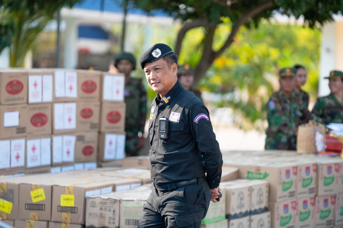 ខេត្តឧត្តរមានជ័យ: នាព្រឹកថ្ងៃទី១០ ខែ មេសា ឆ្នាំ២០២៦នេះ គណៈប្រតិភូរដ្ឋបាលខេត្តសៀមរាប ដឹកនាំដោយ ឯកឧត្តម ប្រាក់ សោភ័ណ អភិបាលនៃគណៈអភិបាលខេត្ត បានអញ្ជើញចុះជួបសំណេះសំណាល និងសួរសុខទុក្ខវីរកងទ័ពសមរភូមិមុខ កងពលតូចអន្តរាគមន៍លេខ៥ ចំណុះឲ្យកងពលធំអន្តរាគមន៍លេខ២ ឈរជើងនៅឃុំបេង ស្រុកបន្ទាយអំពិល ខេត្តឧត្តរមានជ័យ ជាសមរភូមិជួរមុខទិសទី៣ នៃយោធភូមិភាគទី៤ និងជាអង្គភាពសម្ព័ន្ឋមេត្រីភាពជាមួយរដ្ឋបាលខេត្ត ដោយនាំយកនូវគ្រឿងឧបភោគបរិភោគ សម្រាប់ប្រើប្រាស់ ចំនួន ៣៥មុខ ក្នុងឱកាសបុណ្យចូលឆ្នាំថ្មីប្រពៃណីជាតិខ្មែរខាងមុខនេះ ។