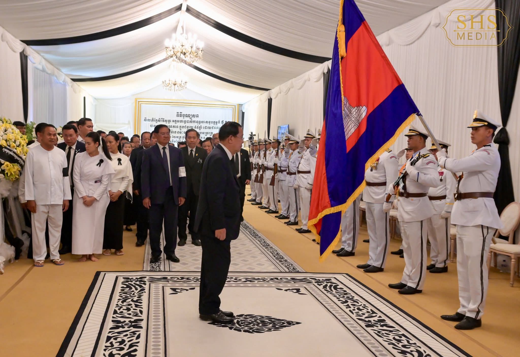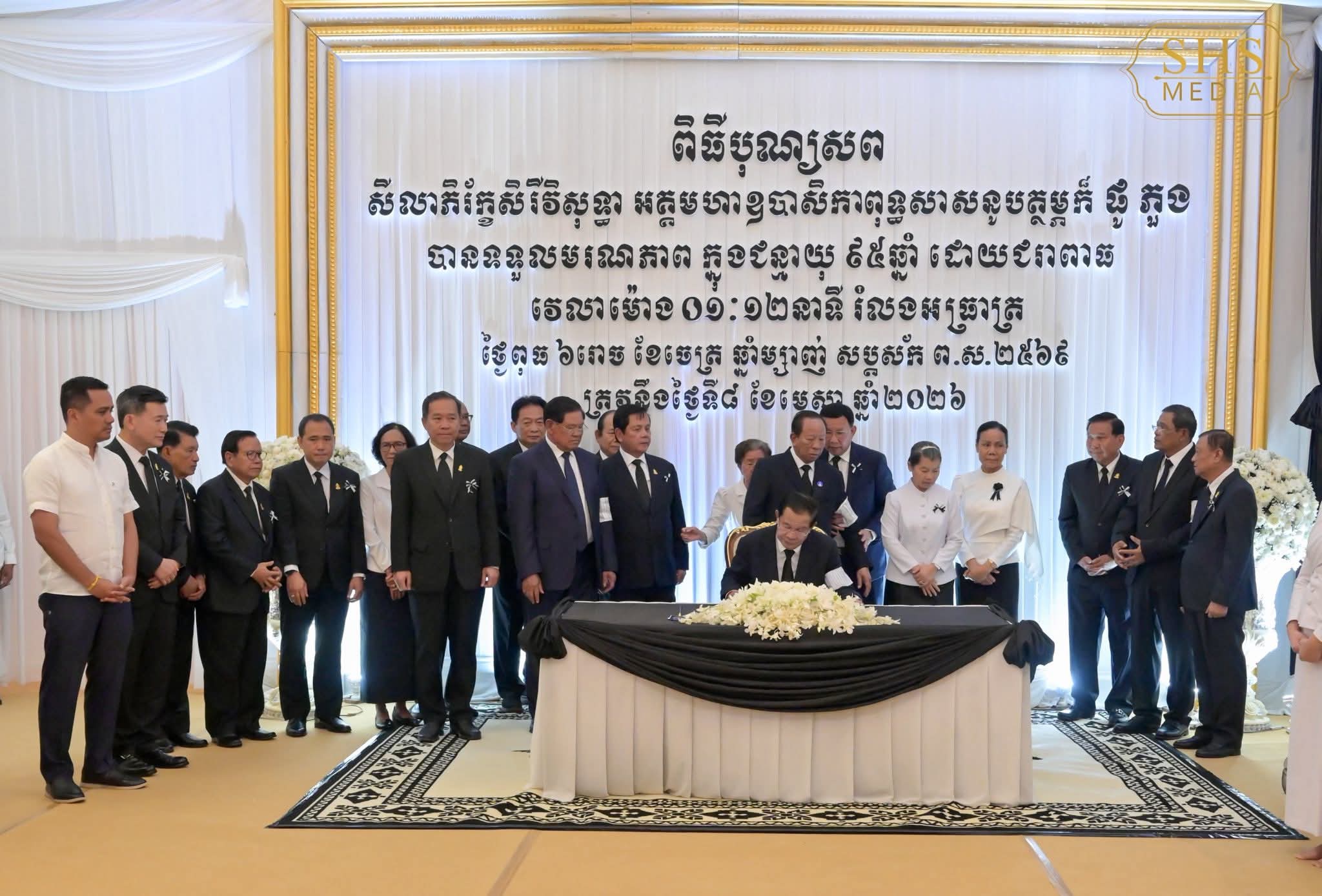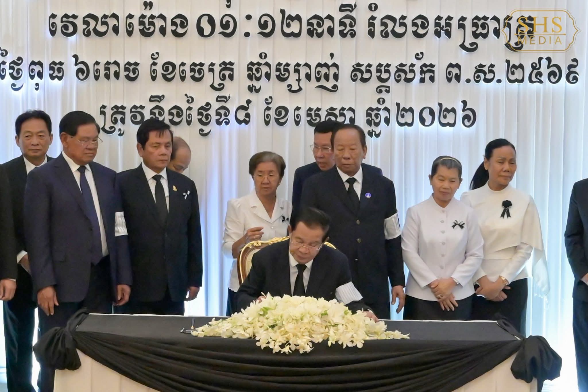 (ភ្នំពេញ) :នារសៀលថ្ងៃសៅរិ៍ ៩រោច ខែចេត្រ ឆ្នាំម្សាញ់ សប្តស័ក ព.ស.២៥៦៩ ត្រូវនឹងថ្ងៃទី១១ ខែមេសា ឆ្នាំ២០២៦ សម្តេចអគ្គមហាសេនាបតីតេជោ ហ៊ុន សែន ប្រមុខរដ្ឋស្តីទីនៃព្រះរាជាណាចក្រកម្ពុជា អញ្ជើញគោរពវិញ្ញាណក្ខន្ធ មហាឧបាសិកាពុទ្ធសាសនូបត្ថម្ភក៏ ផូ ភួង ដែលត្រូវជាម្តាយបង្កើត ឯកឧត្តមនាយឧត្តមសេនីយ៍ ស ថេត អគ្គស្នងការនគរបាលជាតិ ដែលបានទទួលមរណភាពកាលពីថ្ងៃពុធ ៦រោច ខែចេត្រ ឆ្នាំម្សាញ់ សប្តស័ក ព.ស.២៥៦៩ ត្រូវនឹងថ្ងៃទី៨ ខែមេសា ឆ្នាំ២០២៦ ក្នុងជន្មាយុ ៩៥ឆ្នាំ ដោយរោគាពាធ។ សម្តេចតេជោបានមានប្រសាសន៍រំលែកទុក្ខដ៏ក្រៀមក្រំ ជូនចំពោះឯកឧត្តមនាយឧត្តមសេនីយ៍ និងលោកជំទាវ ព្រមទាំងក្រុមគ្រួសារ នូវការបាត់បង់នូវម្តាយ ម្តាយក្មេក ជីដូន ជីទួត ជាទីគោរពស្រលាញ់បំផុតដែលប្រកបទៅដោយព្រហ្មវិហារធម៍ និងសង្គហធម៍ របស់កូនៗ ចៅៗ ចៅទួត ហើយក៏ជាការបាត់បង់នូវពុទ្ធសាសនិកមួយរូបដែលតែងតែមានសទ្ធាជ្រះថ្លាក្រៃលែងក្នុងការលើកស្ទួយព្រះពុទ្ធសាសនានៅកម្ពុជា។ សម្តេចតេជោ ហ៊ុន សែន ក៏បានអញ្ជើញចារលើក្រាំងមាសរំលែកទុក្ខដល់ក្រុមគ្រួសារមហាឧបាសិកាពុទ្ធសាសនូបត្ថម្ភក៏ ផូ ភួង។