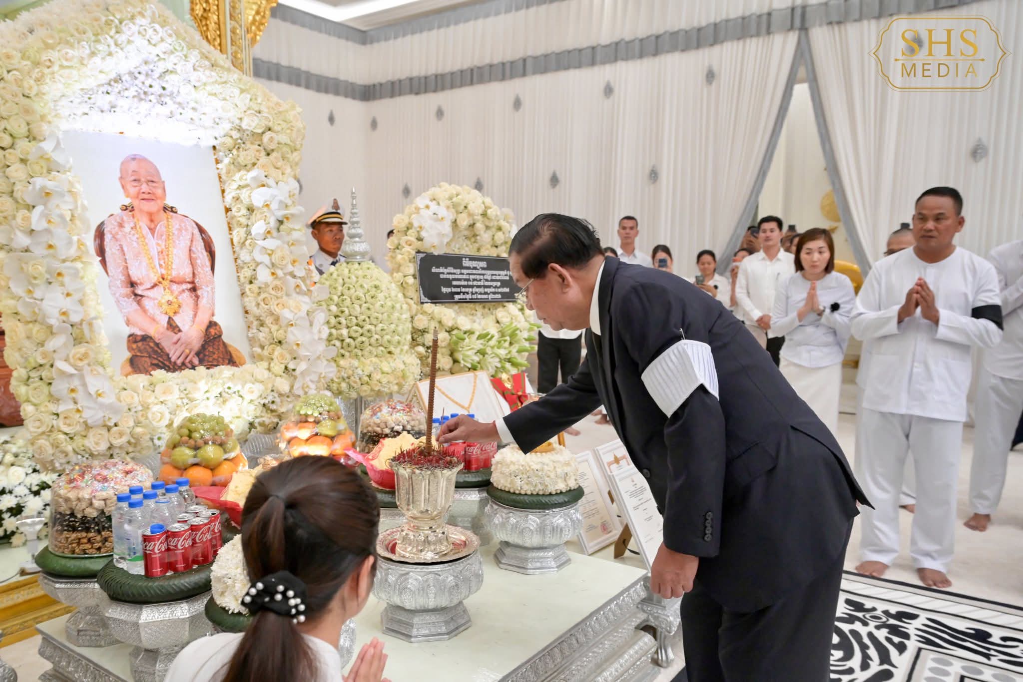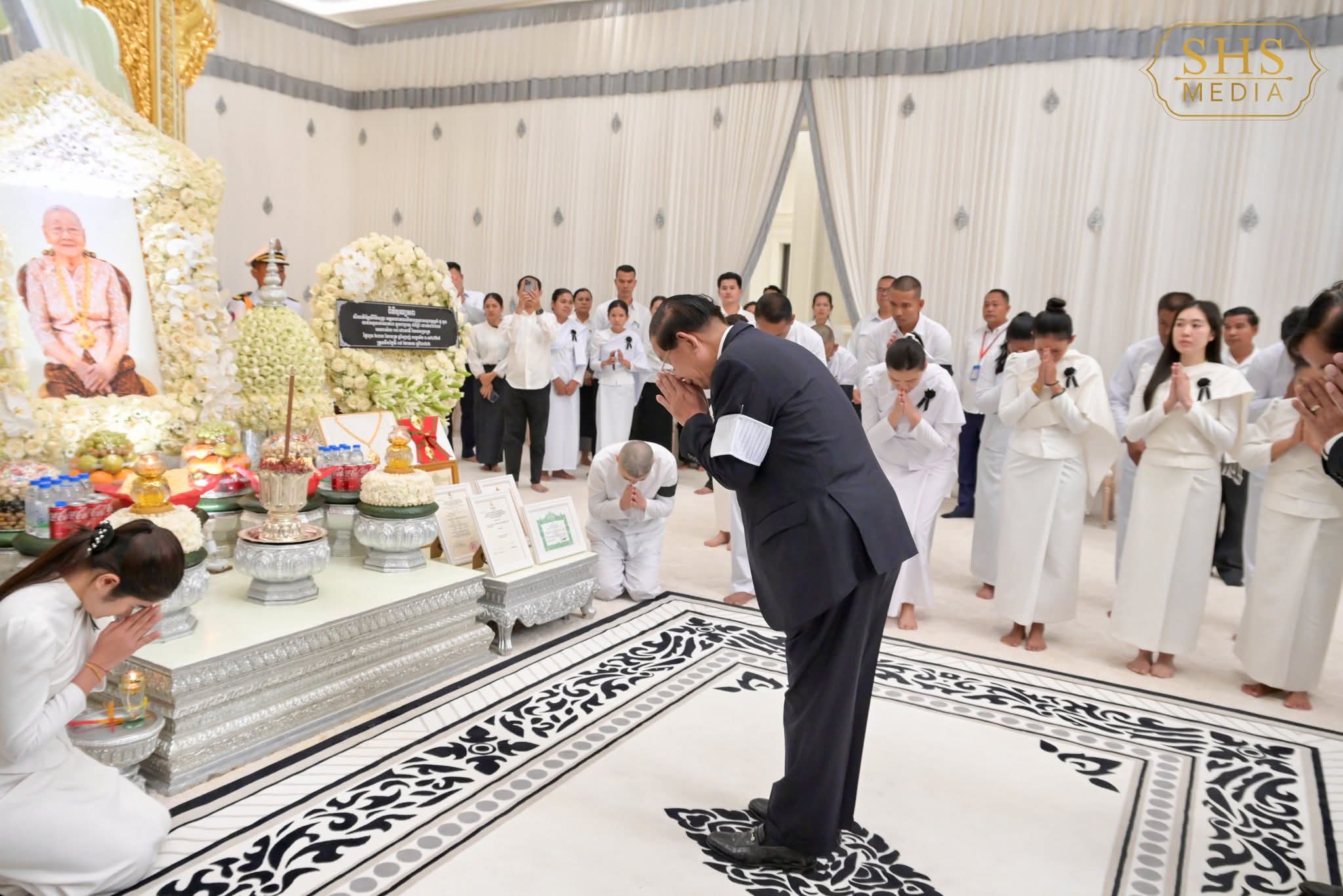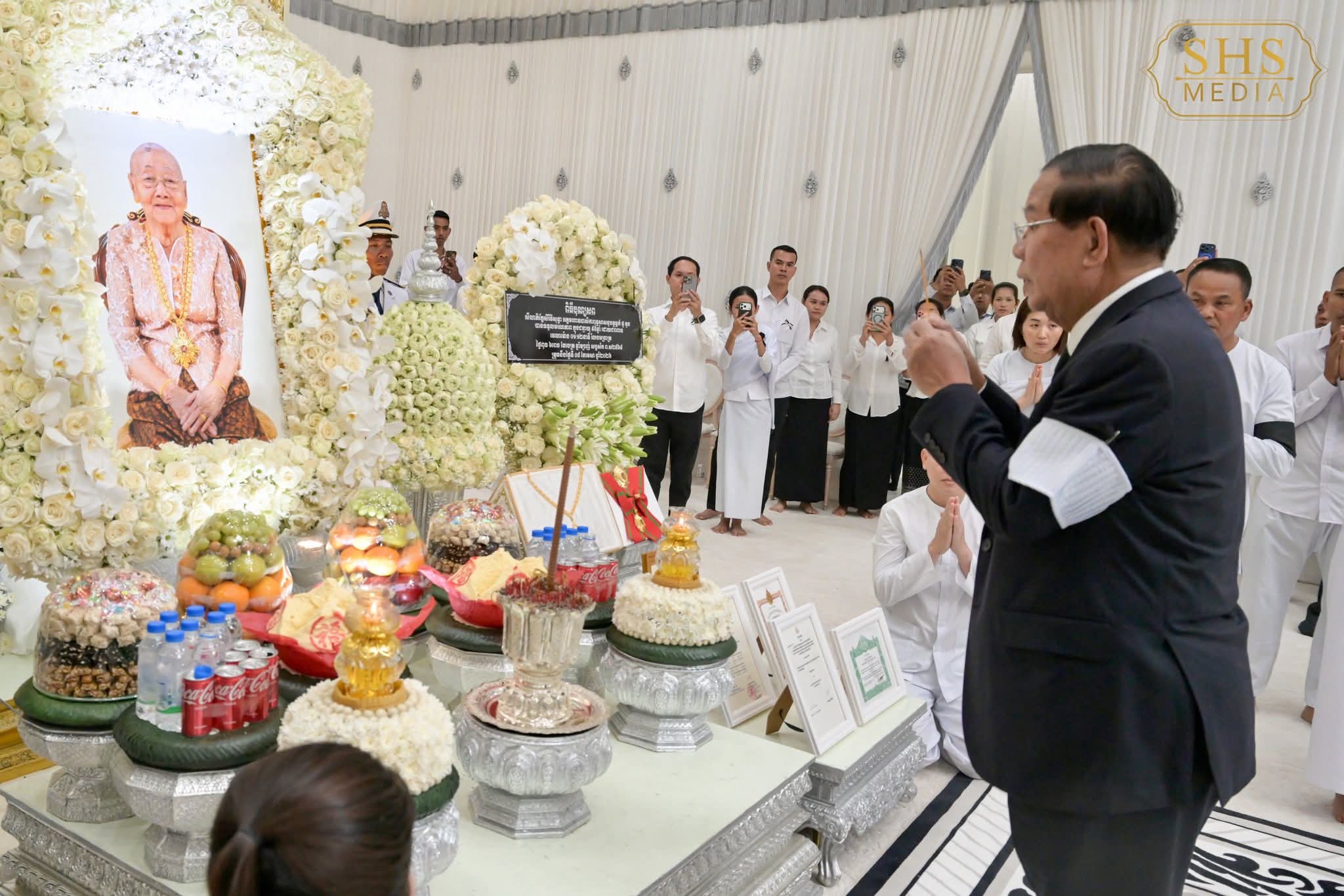 (ភ្នំពេញ) :នារសៀលថ្ងៃសៅរិ៍ ៩រោច ខែចេត្រ ឆ្នាំម្សាញ់ សប្តស័ក ព.ស.២៥៦៩ ត្រូវនឹងថ្ងៃទី១១ ខែមេសា ឆ្នាំ២០២៦ សម្តេចអគ្គមហាសេនាបតីតេជោ ហ៊ុន សែន ប្រមុខរដ្ឋស្តីទីនៃព្រះរាជាណាចក្រកម្ពុជា អញ្ជើញគោរពវិញ្ញាណក្ខន្ធ មហាឧបាសិកាពុទ្ធសាសនូបត្ថម្ភក៏ ផូ ភួង ដែលត្រូវជាម្តាយបង្កើត ឯកឧត្តមនាយឧត្តមសេនីយ៍ ស ថេត អគ្គស្នងការនគរបាលជាតិ ដែលបានទទួលមរណភាពកាលពីថ្ងៃពុធ ៦រោច ខែចេត្រ ឆ្នាំម្សាញ់ សប្តស័ក ព.ស.២៥៦៩ ត្រូវនឹងថ្ងៃទី៨ ខែមេសា ឆ្នាំ២០២៦ ក្នុងជន្មាយុ ៩៥ឆ្នាំ ដោយរោគាពាធ។ សម្តេចតេជោបានមានប្រសាសន៍រំលែកទុក្ខដ៏ក្រៀមក្រំ ជូនចំពោះឯកឧត្តមនាយឧត្តមសេនីយ៍ និងលោកជំទាវ ព្រមទាំងក្រុមគ្រួសារ នូវការបាត់បង់នូវម្តាយ ម្តាយក្មេក ជីដូន ជីទួត ជាទីគោរពស្រលាញ់បំផុតដែលប្រកបទៅដោយព្រហ្មវិហារធម៍ និងសង្គហធម៍ របស់កូនៗ ចៅៗ ចៅទួត ហើយក៏ជាការបាត់បង់នូវពុទ្ធសាសនិកមួយរូបដែលតែងតែមានសទ្ធាជ្រះថ្លាក្រៃលែងក្នុងការលើកស្ទួយព្រះពុទ្ធសាសនានៅកម្ពុជា។ សម្តេចតេជោ ហ៊ុន សែន ក៏បានអញ្ជើញចារលើក្រាំងមាសរំលែកទុក្ខដល់ក្រុមគ្រួសារមហាឧបាសិកាពុទ្ធសាសនូបត្ថម្ភក៏ ផូ ភួង។