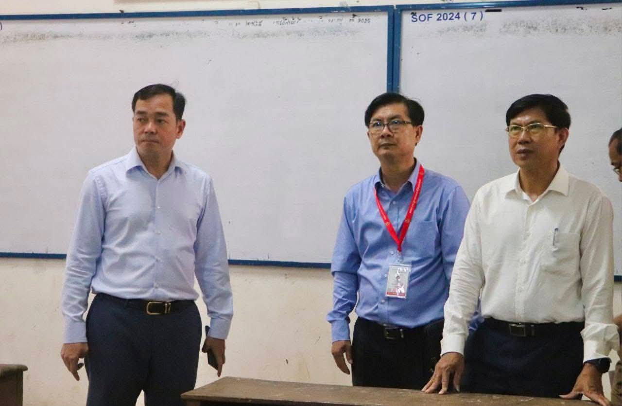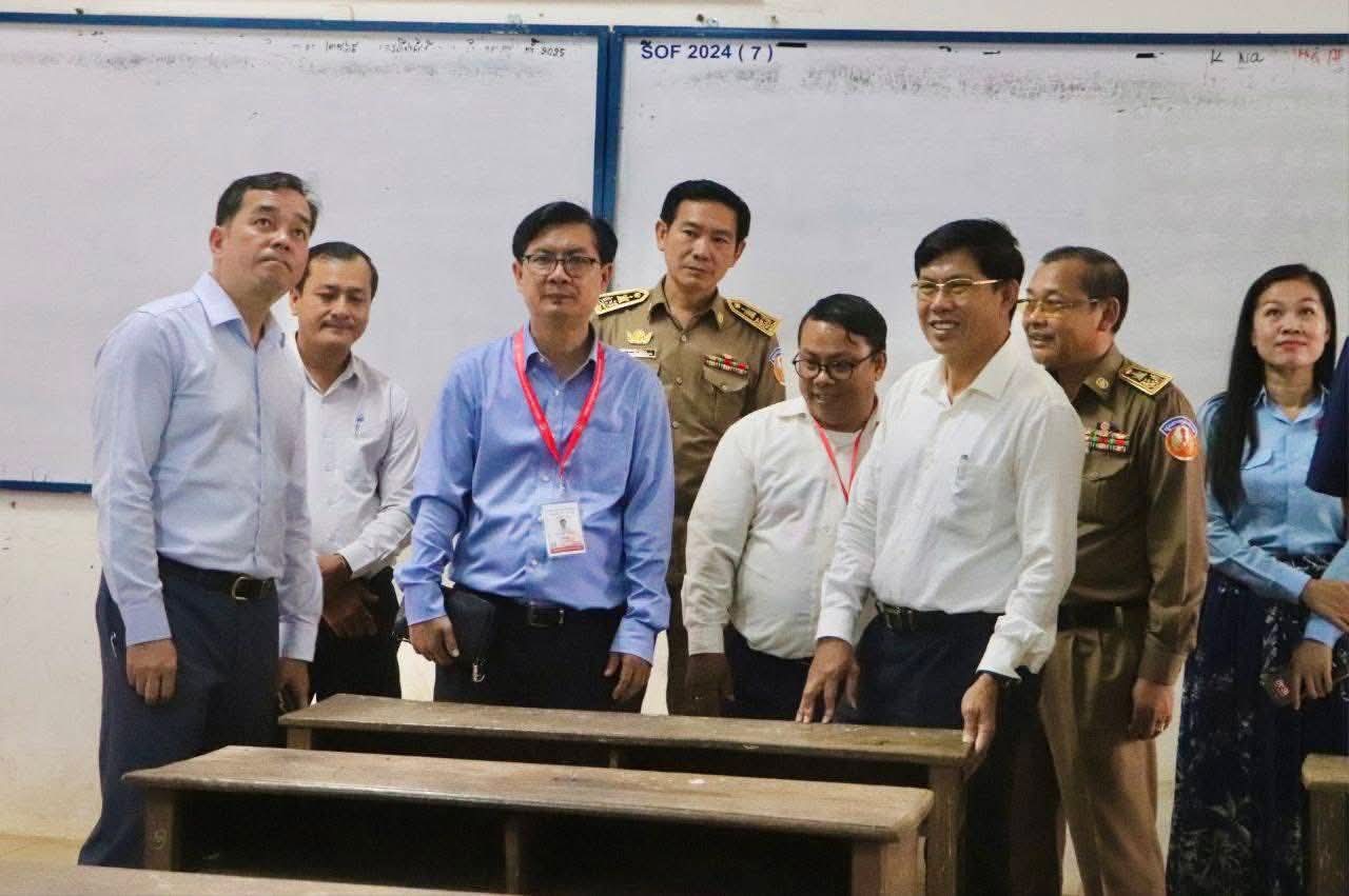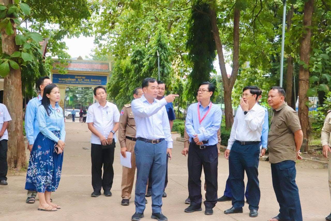 (កំពង់ចាម): នៅរសៀលថ្ងៃទី២៧ ខែសីហា ឆ្នាំ២០២៥នេះ ឯកឧត្តម អ៊ុន ចាន់ដា អភិបាលនៃគណៈអភិបាលខេត្តកំពង់ចាម បានដឹកនាំក្រុមការងារ អញ្ជើញចុះពិនិត្យទីតាំងមណ្ឌលប្រឡងសញ្ញាបត្រមធ្យមសិក្សាទុតិយភូមិ (BacII) នាសម័យប្រឡង ២៨ សីហា ២០២៥ ស្ថិតនៅមណ្ឌល វិទ្យាល័យព្រះសីហនុ ក្រុងកំពង់ចាម។