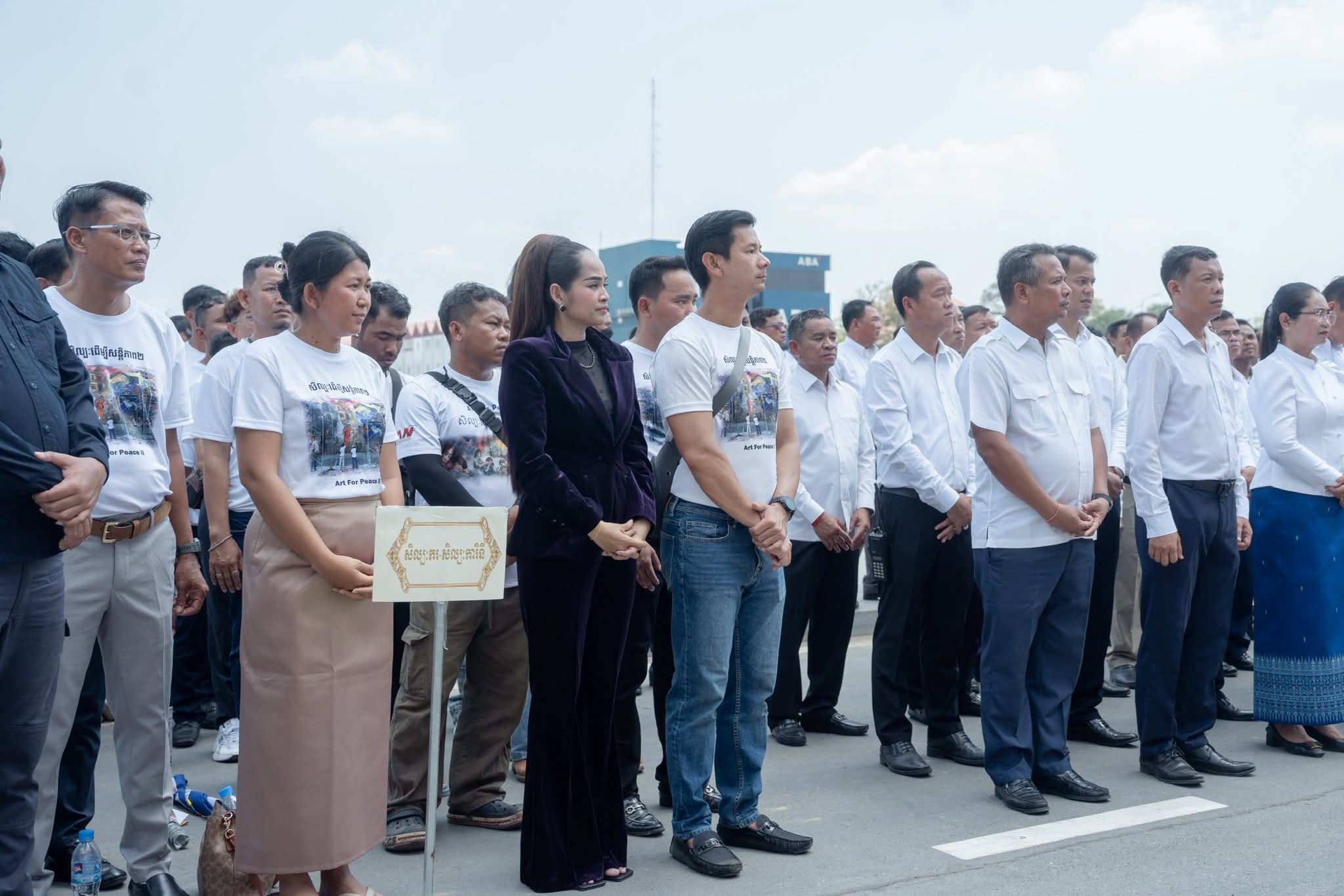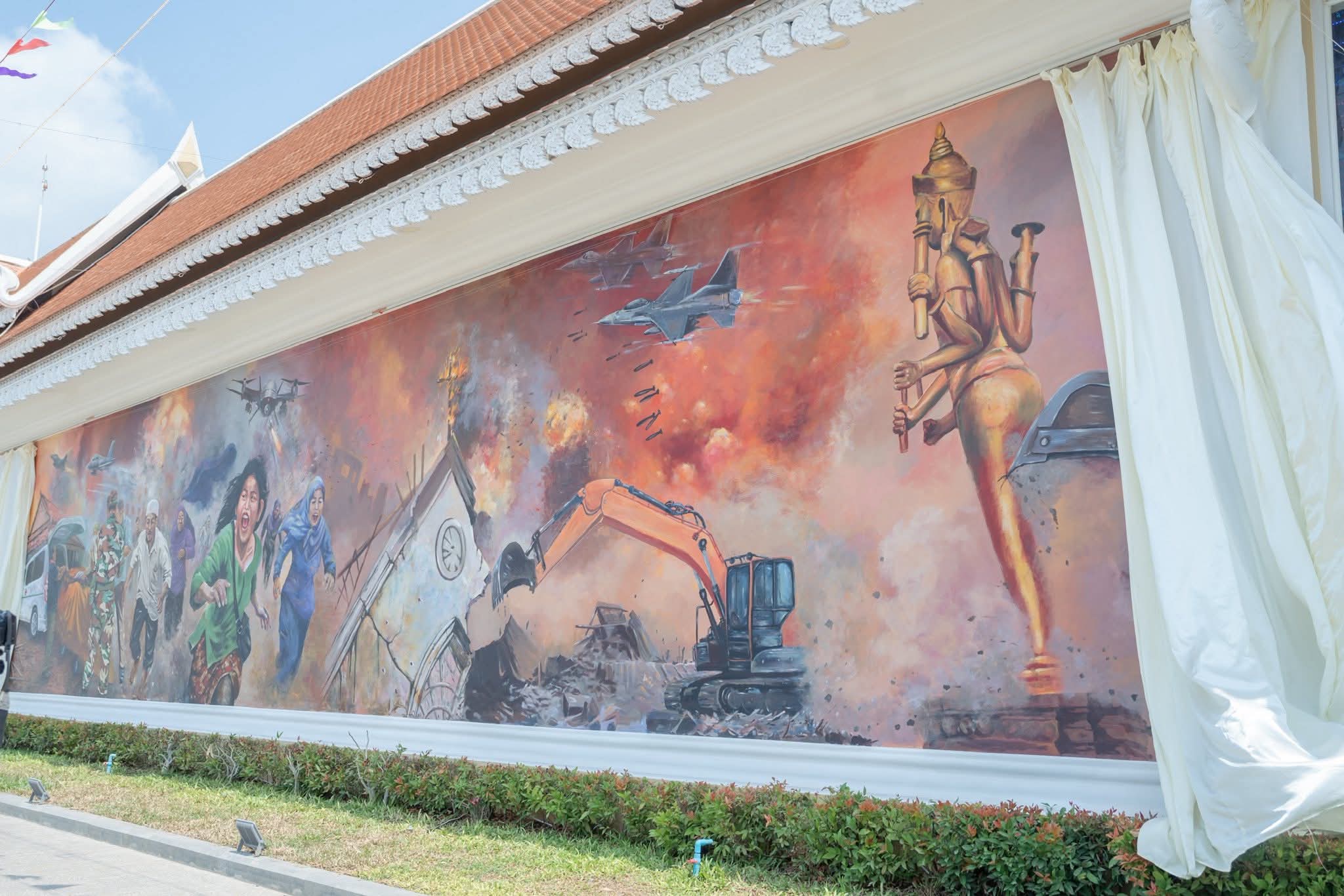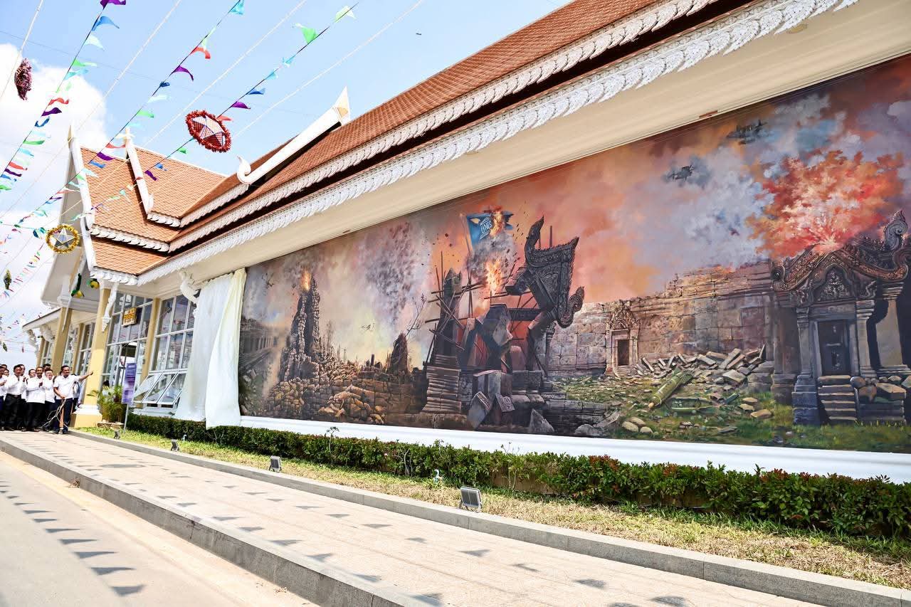 (ព្រៃវែង) : នៅព្រឹក ថ្ងៃចន្ទ ទី១៣ ខែមេសា ឆ្នាំ២០២៦ ឯកឧត្តម សួន សុម៉ាលីន អភិបាល នៃគណ: អភិបាលខេត្តព្រៃវែង និងលោក ជំទាវ ជុន បូរ៉ានី បានអញ្ជើញចូលរួមក្នុងពិធីសម្ពោធផ្ទាំងគំនូរអំពីសង្គ្រាមព្រំដែនកម្ពុជា-ថៃ ចំនួន ០៤ផ្ទាំ នៅរោងតម្កល់ទូក ង “កម្ពោជិកបុត្តាខេមរាតរី” ក្រោមអធិបតីភាពដ៏ខ្ពង់ខ្ពស់ ឯកឧត្តមអភិសន្តិបណ្ឌិត ស សុខា ឧបនាយករដ្ឋមន្ត្រី រដ្ឋមន្ត្រីក្រសួងមហាផ្ទៃ និងជាប្រធានក្រុមការងាររាជរដ្ឋាភិបាលចុះមូលដ្ឋានខេត្តព្រៃវែង ដែលពិធីនេះប្រព្រឹត្តទៅនៅបរិវេណចុងប៉ម ក្រុងព្រៃវែង ខេត្តព្រៃវែង។