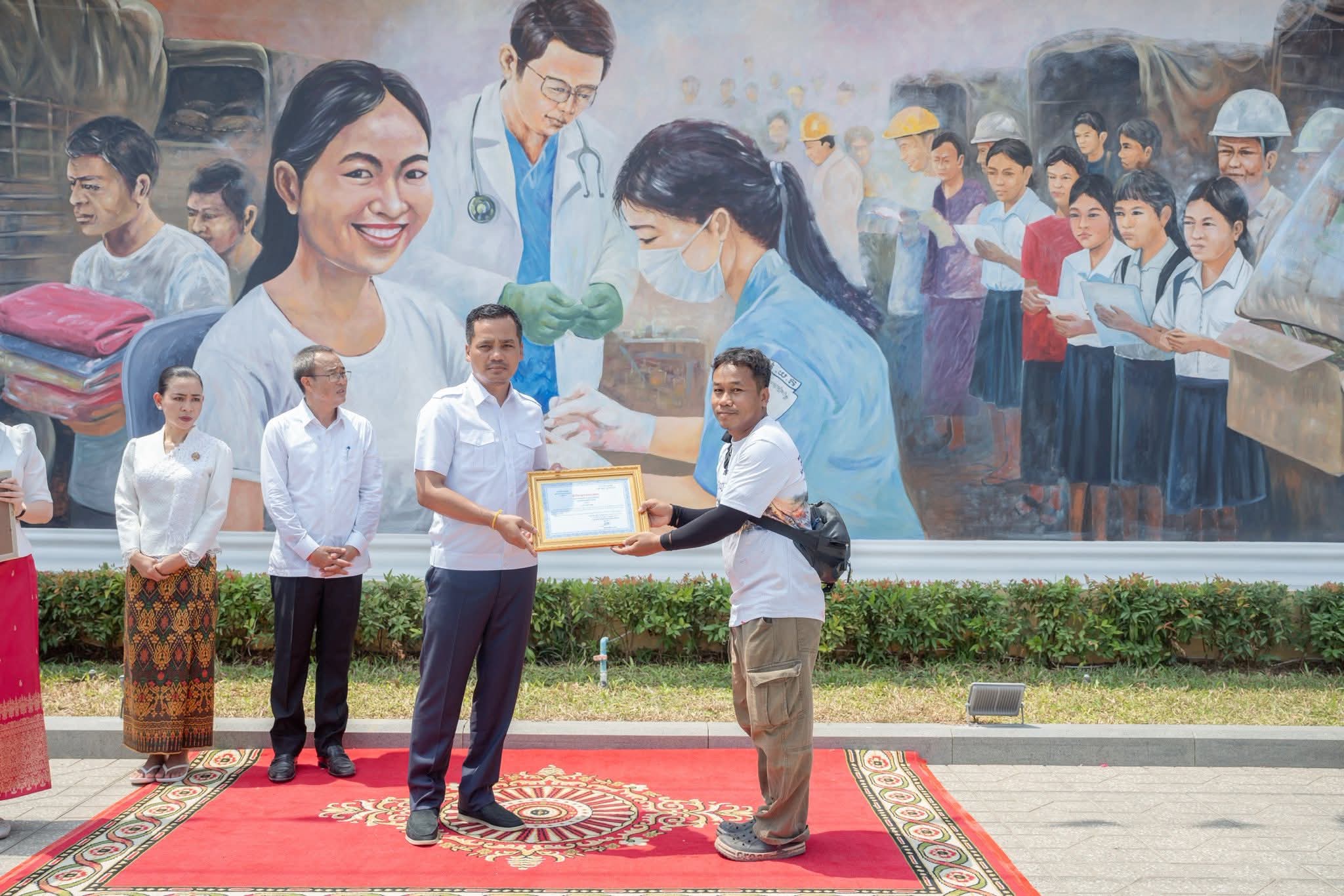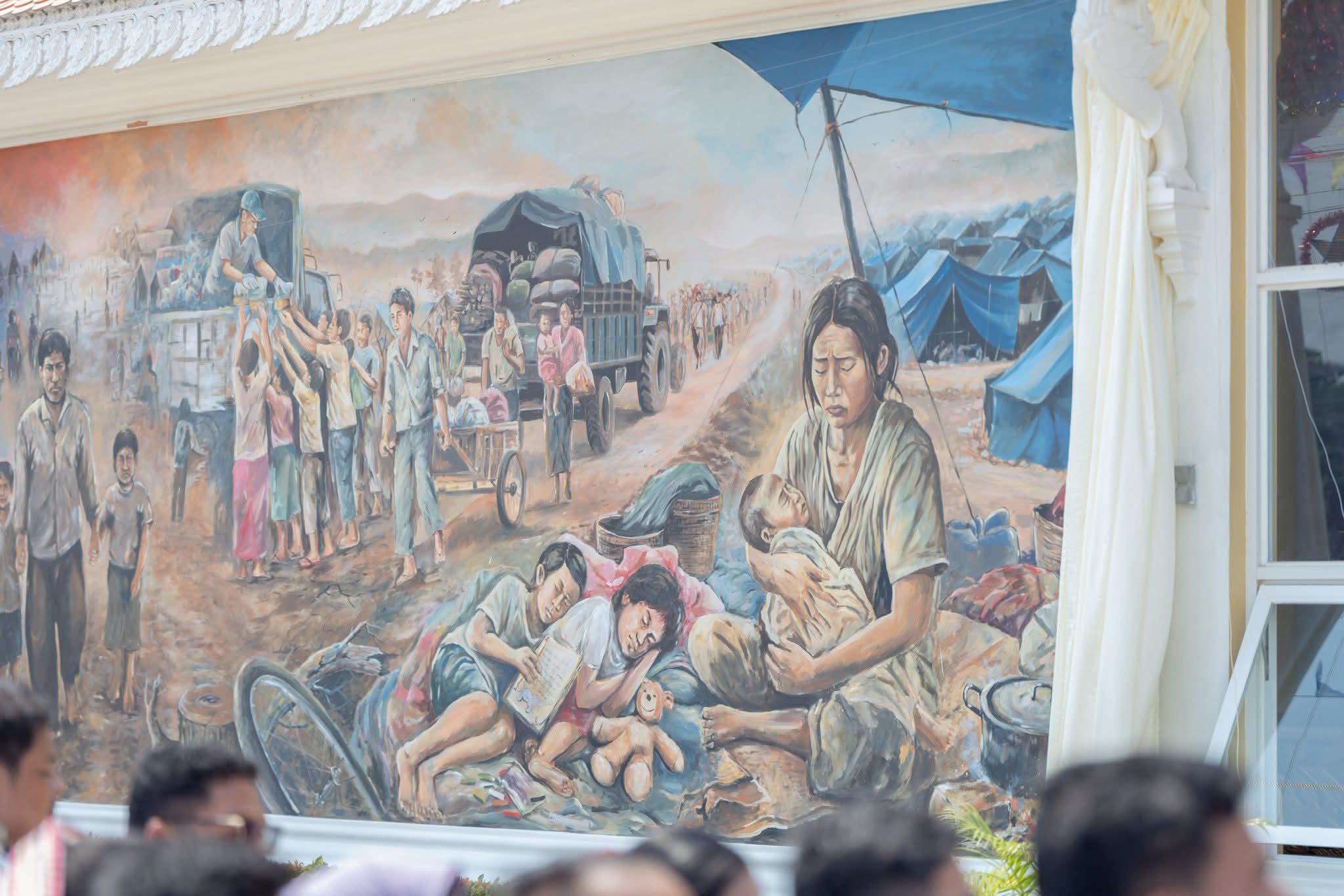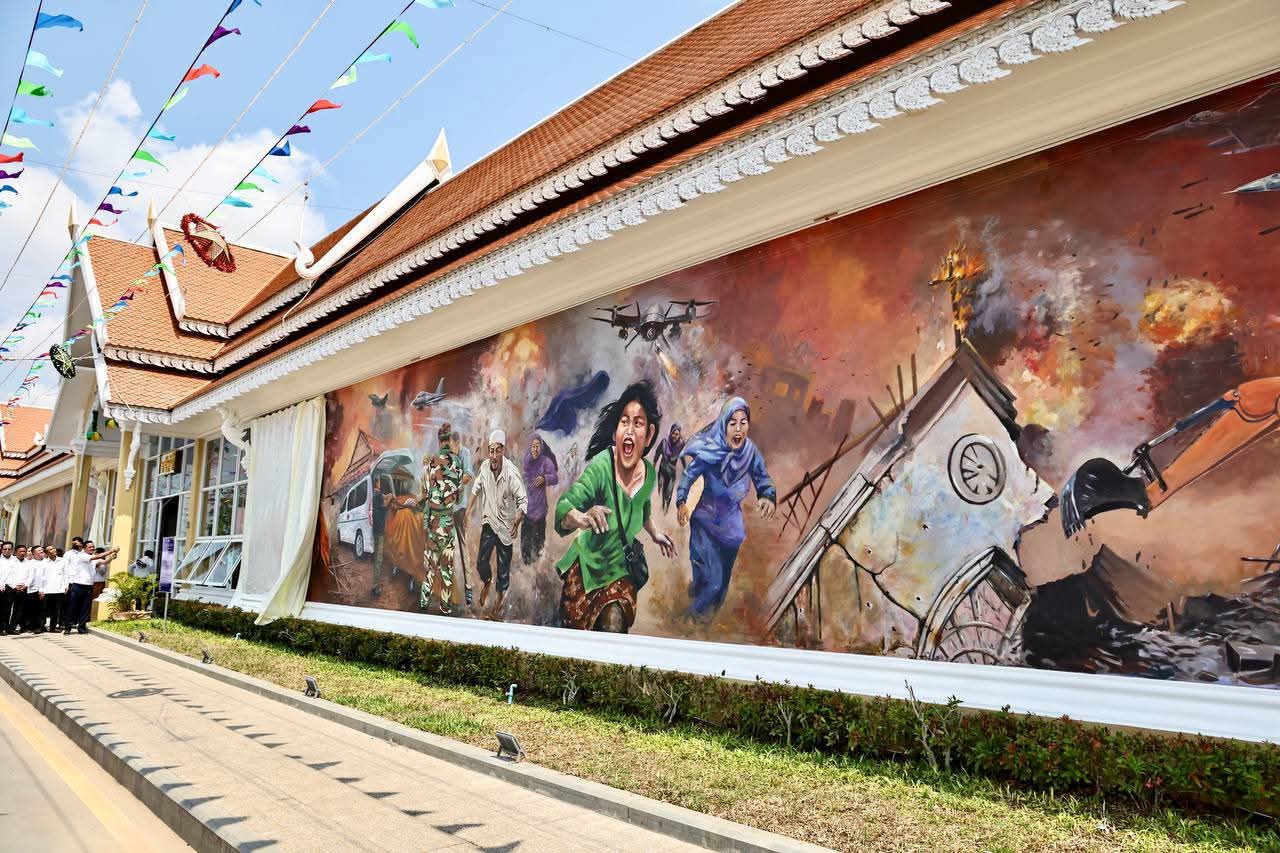 (ព្រៃវែង) : នៅព្រឹក ថ្ងៃចន្ទ ទី១៣ ខែមេសា ឆ្នាំ២០២៦ ឯកឧត្តម សួន សុម៉ាលីន អភិបាល នៃគណ: អភិបាលខេត្តព្រៃវែង និងលោក ជំទាវ ជុន បូរ៉ានី បានអញ្ជើញចូលរួមក្នុងពិធីសម្ពោធផ្ទាំងគំនូរអំពីសង្គ្រាមព្រំដែនកម្ពុជា-ថៃ ចំនួន ០៤ផ្ទាំ នៅរោងតម្កល់ទូក ង “កម្ពោជិកបុត្តាខេមរាតរី” ក្រោមអធិបតីភាពដ៏ខ្ពង់ខ្ពស់ ឯកឧត្តមអភិសន្តិបណ្ឌិត ស សុខា ឧបនាយករដ្ឋមន្ត្រី រដ្ឋមន្ត្រីក្រសួងមហាផ្ទៃ និងជាប្រធានក្រុមការងាររាជរដ្ឋាភិបាលចុះមូលដ្ឋានខេត្តព្រៃវែង ដែលពិធីនេះប្រព្រឹត្តទៅនៅបរិវេណចុងប៉ម ក្រុងព្រៃវែង ខេត្តព្រៃវែង។