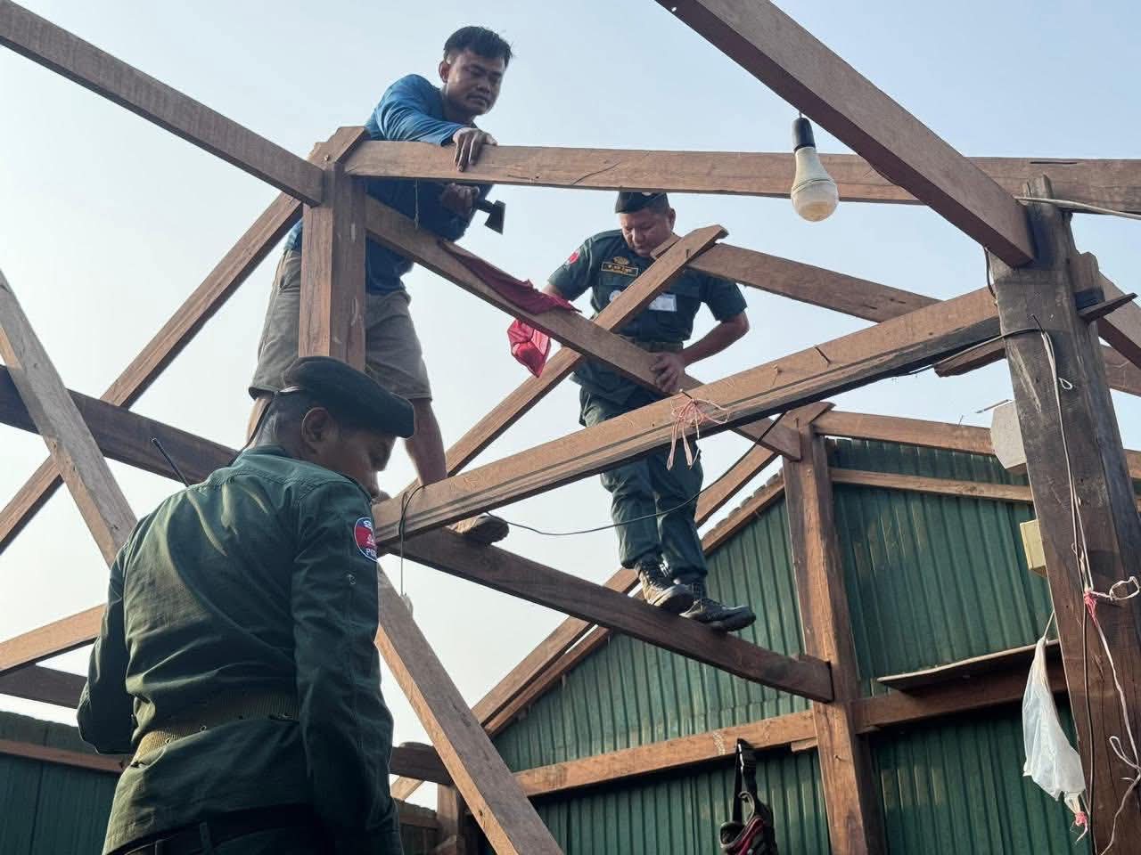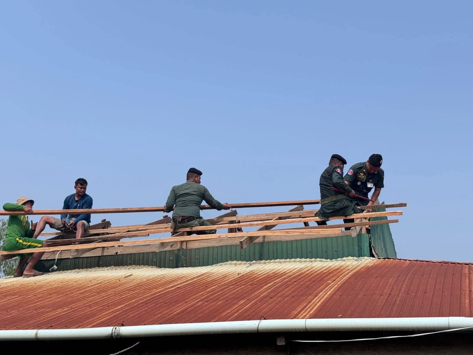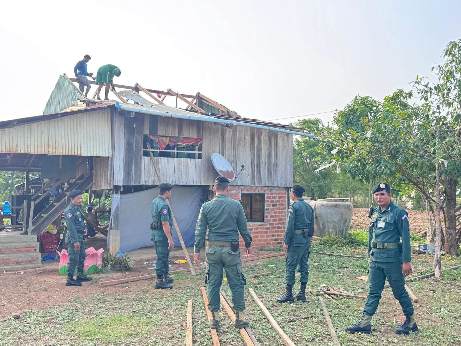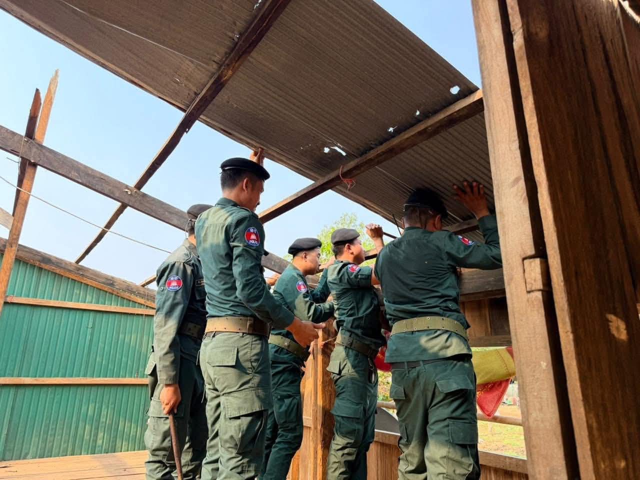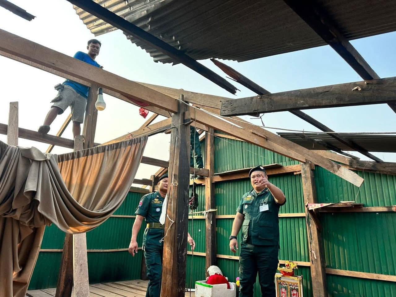 ខេត្តបាត់ដំបង: នៅថ្ងៃទី១៩ខែ មេសា ឆ្នាំ ២០២៦ ស្របតាមអនុសាសន៍ដ៏ខ្ពង់ខ្ពស់របស់ឯកឧត្តម នាយឧត្តមសេនីយ៍ ស ថេត អគ្គស្នងការនគរបាលជាតិ និងយោបល់ដឹកនាំរបស់ លោកឧត្តមសេនីយ៍ទោ ដាញ់ អេងប៊ុនចាន់ ស្នងការនៃស្នងការដ្ឋាននគរ បាលខេត្តបាត់ដំបង, លោក អនុសេនីយ៍ឯក ចាន់ ថានូ អធិការ នៃអធិការដ្ឋាននគរបាលស្រុកគាស់ក្រឡ បានដឹកនាំ កម្លាំងអធិការដ្ឋាន និងកម្លាំងប៉ុស្ដិ៍នគរបាលរដ្ឋបាល ជាមួយកម្លាំងប្រជាការពារ បន្តចុះជួយរៀបចំជួសជុលឡេីងវិញលំនៅដ្ឋានរបស់ប្រជាពលរដ្ឋ ដែលទទួលរងនូវផលប៉ះពាល់ដោយសារខ្យល់កន្ត្រាក់ក្នុងស្រុកគាស់ក្រឡកាលពីថ្ងៃទី ១៧ខែ មេសា ឆ្នាំ២០២៦ប្រមាណជាង៣០ខ្នងផ្ទះក្នុងស្រុកគាស់ក្រឡ៕
