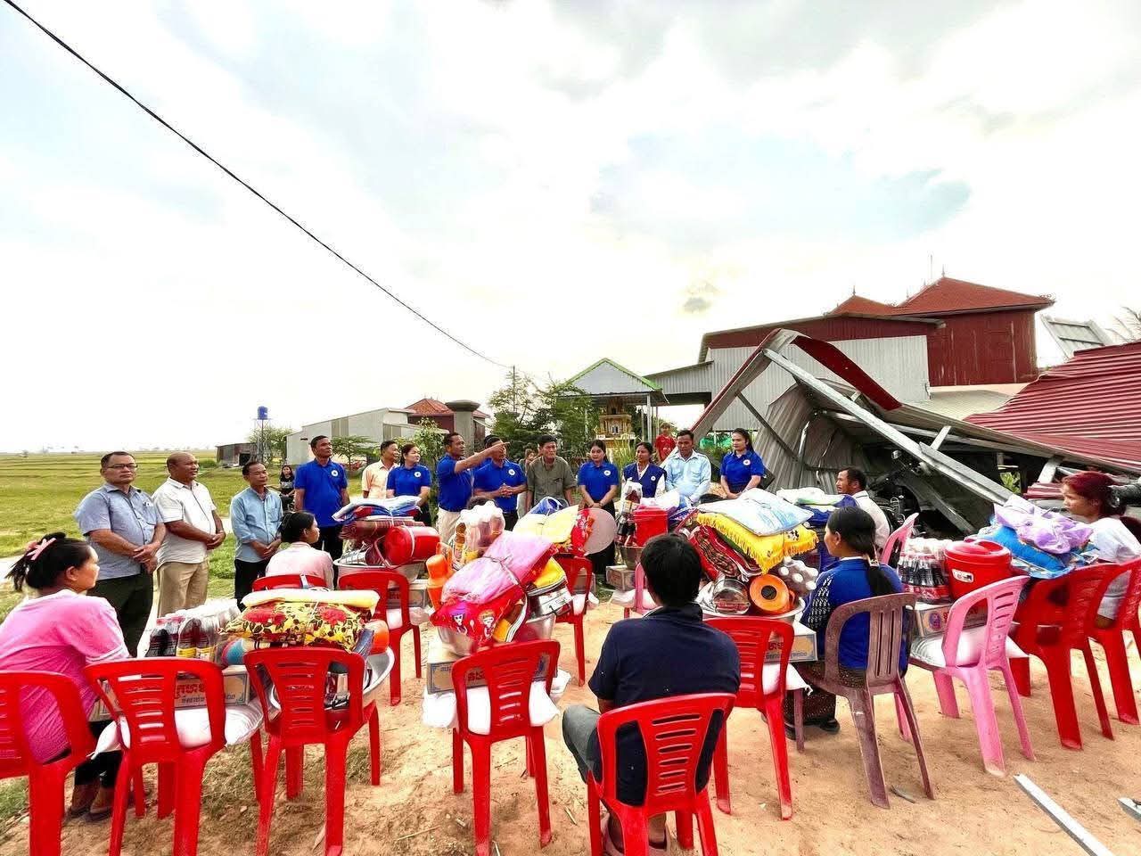 ខេត្តព្រៃវែង៖ នៅរសៀលថ្ងៃទី២០ ខែមេសា ឆ្នាំ២០២៥ លោក ចេម ប្រា ប្រធានគណៈកម្មាធិការអនុសាខាស្រុកពារាំង បានដឹកនាំលោក អនុប្រធាន លោក លោកស្រី សមាជិក សមាជិកាគណៈកម្មាធិការ មន្រ្តីប្រចាំការ បុគ្គលិកកិច្ចសន្យា រួមជាមួយក្រុមកាកបាទក្រហមឃុំ និងអ្នកស្ម័គ្រចិត្តភូមិ ចុះសួរសុខទុក្ខ និងនាំយកអំណោយមនុស្សធម៌ជូនដល់គ្រួសាររងគ្រោះដោយសារខ្យល់កន្រ្តាក់បាក់រលំផ្ទះ ចំនួន ៨ខ្នងផ្ទះ ស្មើនឹង ៨គ្រួសារ នៅភូមិព្រៃព្នៅត្បូង ឃុំព្រៃព្នៅ ស្រុកពារាំងខេត្តព្រៃវែង។