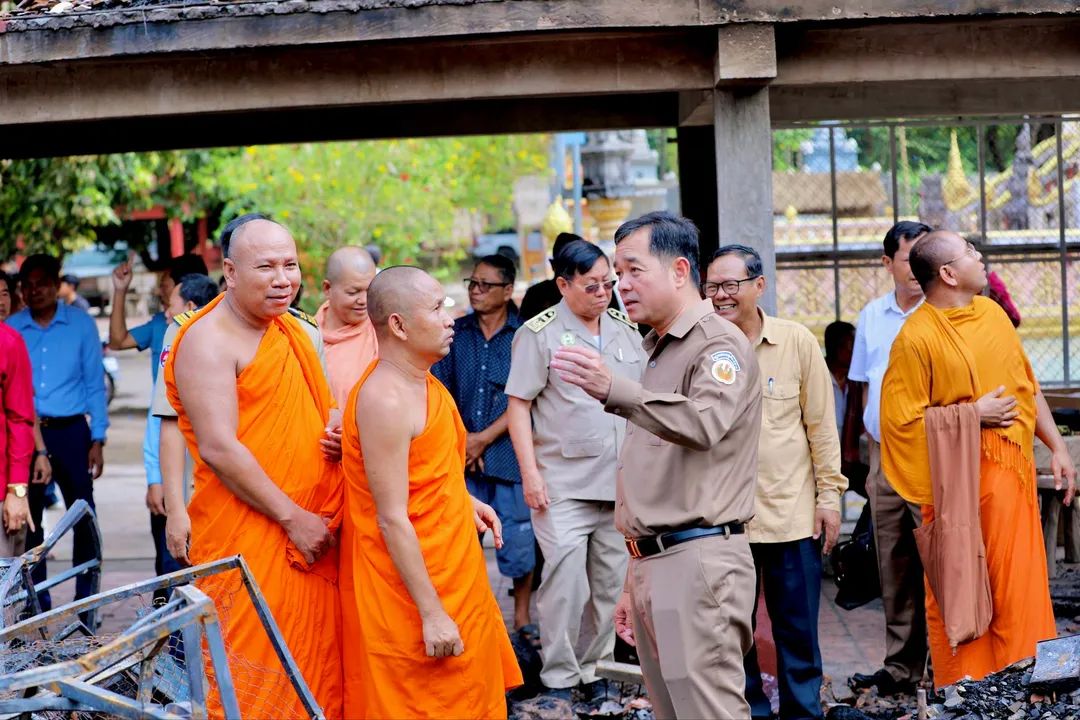 (កំពង់ចាម) : នៅព្រឹកថ្ងៃចន្ទទី២០ ខែមេសា ឆ្នាំ ២០២៦ នេះ ឯកឧត្តម អ៊ុន ចាន់ដា អភិបាលខេត្តកំពង់ចាម និងជាប្រធានគណ:កម្មាធិការសាខាកាកបាទក្រហមកម្ពុជាខេត្ត និងក្រុមការងារ បានអញ្ជើញចុះសួរសុខទុក្ខ និងនាំយកអំណោយមនុស្សធម៌ដ៏ថ្លៃថ្លារបស់សម្តេចកិត្តិព្រឹទ្ធបណ្ឌិត ប៊ុន រ៉ានី ហ៊ុនសែន ប្រធានកាកបាទក្រហមកម្ពុជា និងសម្តេចមហាបវរធិបតី ហ៊ុន ម៉ាណែត នាយករដ្ឋមន្ត្រីនៃព្រះរាជាណាចក្រកម្ពុជា និងលោកជំទាវបណ្ឌិត ពេជចន្ទមុន្នី ហ៊ុន ម៉ាណែត ទៅប្រគេនព្រះសង្ឃគង់នៅវត្តជំនីក ឃុំពាមប្រធ្នោះ ស្រុកកោះសូទិន ដែលរងគ្រោះដោយអគ្គីភ័យ មូលហេតុ ឆ្លងចរន្តអគ្គិសនី ធ្វើអោយ កុដិថ្មនិងឈើរបស់ ព្រះសមុហ៍អនុគណនិងជាព្រះចៅអធិការវត្ត ប្រក់ក្បឿង ២ខ្នង ទំហំ ១២ម × ១៥ម និង និង ឧបដ្ឋានសាលា ទំហំ ២៥ម× ២៥ម ត្រូវភ្លើងឆេះអស់ទាំងស្រុង កាលពីម៉ោង ៥ល្ងាច នា ថ្ងៃទី ១៩ ខែមេសា ឆ្នាំ ២០២៦។