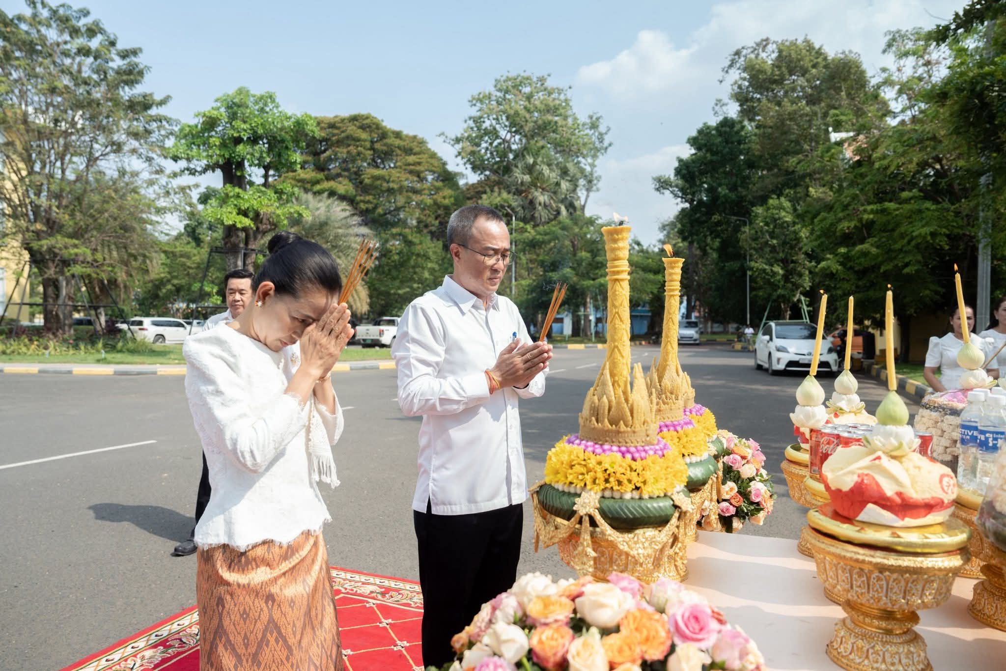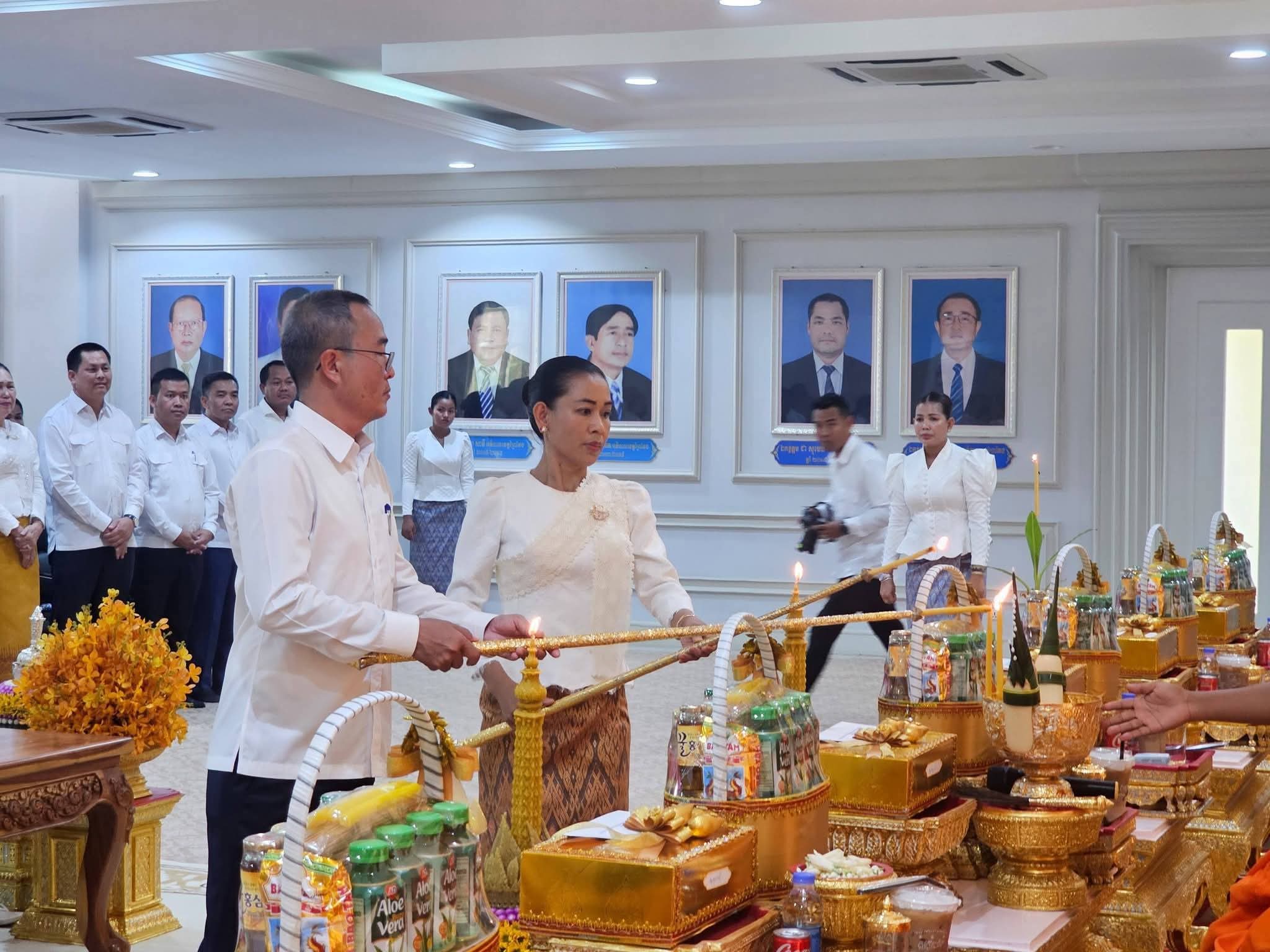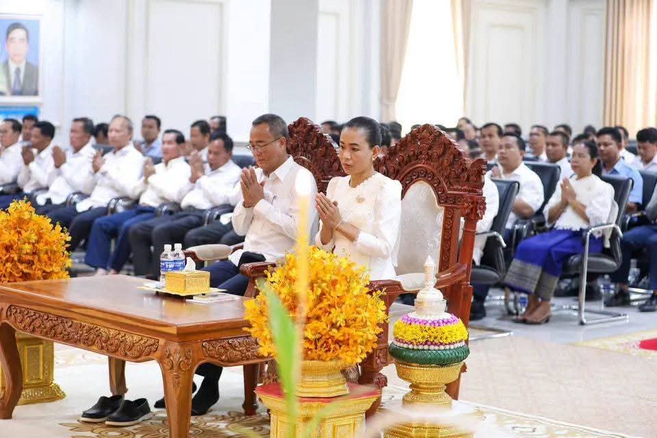 ខេត្តព្រៃវែង: នារសៀលថ្ងៃចន្ទ ៣កើត ខែពិសាខ ឆ្នាំមមី អដ្ឋស័ក ពុទ្ធសករាជ ២៥៧០ ត្រូវនឹងថ្ងៃទី២០ ខែមេសា ឆ្នាំ២០២៦ នេះ ឯកឧត្តម សួន សុម៉ាលីន អភិបាលនៃគណៈអភិបាលខេត្តព្រៃវែង និងលោកជំទាវ ជុន បូរ៉ានី បានអញ្ជើញជាអធិបតីក្នុងពិធីសូត្រមន្តលើករាសី និងចម្រើនព្រះបរិត្ត ដើម្បីអបអរសាទរពិធីបុណ្យចូលឆ្នាំថ្មី ប្រពៃណីជាតិខ្មែរ។