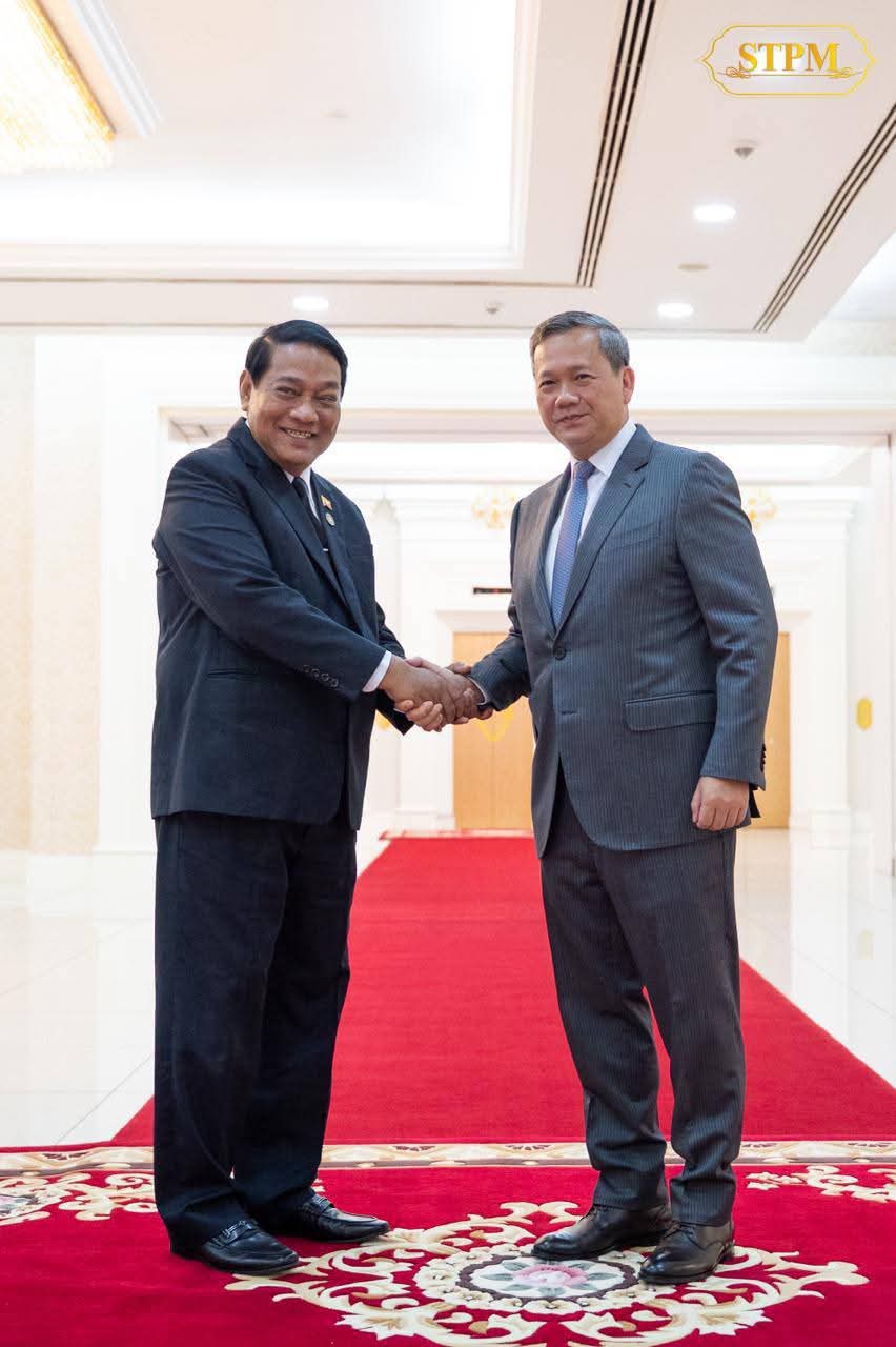 (ភ្នំពេញ) :នាព្រឹកថ្ងៃទី២៨ ខែសីហា ឆ្នាំ២០២៥, សម្តេចមហាបវរធិបតី ហ៊ុន ម៉ាណែត នាយករដ្ឋមន្រ្តី នៃព្រះរាជាណាចក្រកម្ពុជា បានអនុញ្ញាតឱ្យ ឯកឧត្តម U Khin Yi ប្រធានគណបក្សសហភាពសាមគ្គី និងអភិវឌ្ឍន៍មីយ៉ាន់ម៉ា ចូលជួបសម្តែងការគួរសម និងពិភាក្សាការងារ នៅវិមានសន្តិភាព។