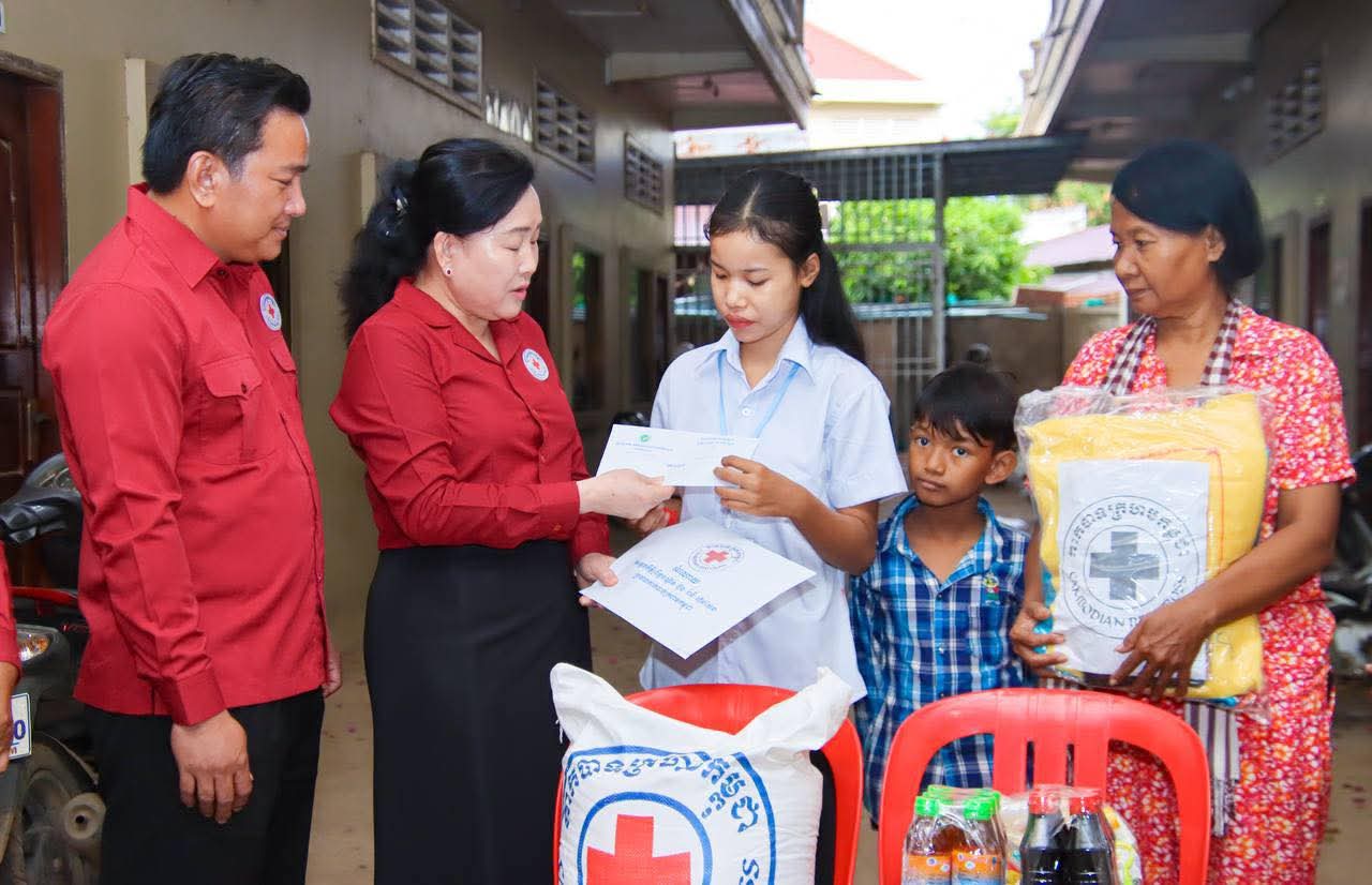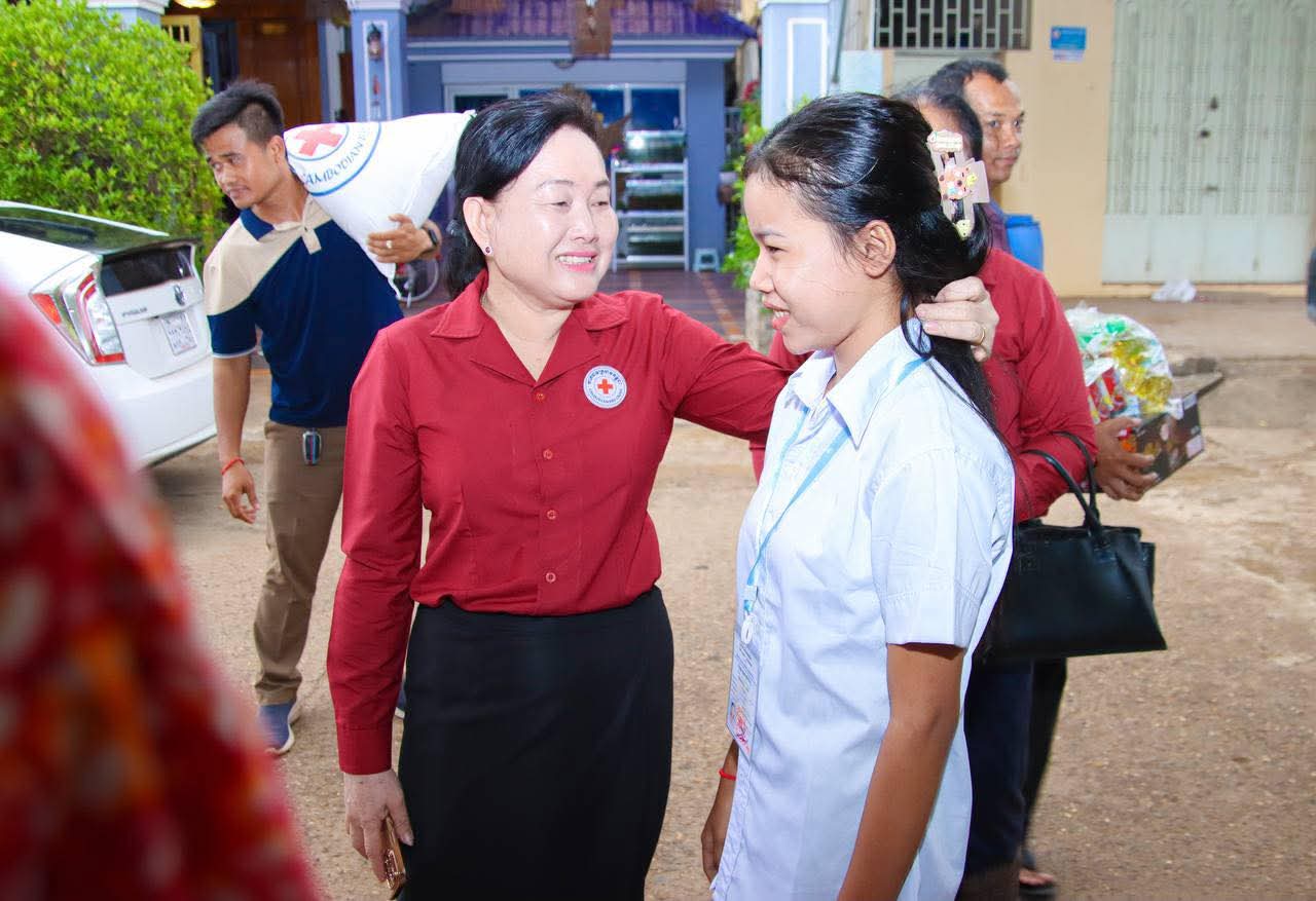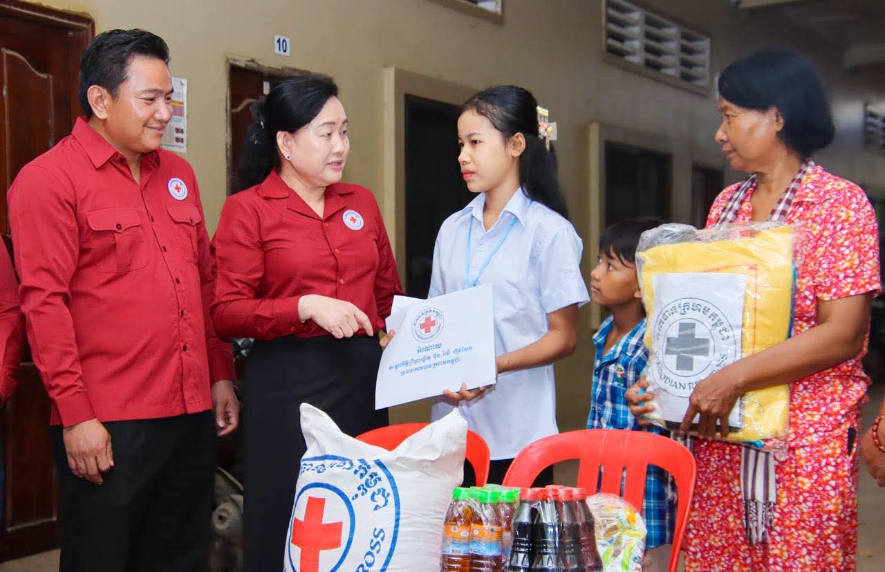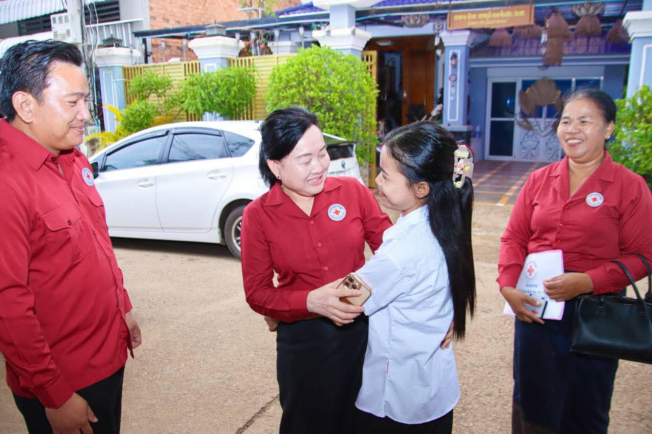 ក្នុងឱកាសនោះដែរលោកជំទាវបាននាំយកប្រសាសន៍ផ្ដាំផ្ញើសាកសួរសុខពីឯកឧត្តម អ៊ុន ចាន់ដា ប្រធានគណ:កម្មាធិការសាខា ដែលតែងយកចិត្តទុកដាក់ ជួយដោះស្រាយសម្រាលទុក្ខលំបាកដល់ពលរដ្ឋរងគ្រោះ និង ងាយរងគ្រោះ ដោយមិនរើសអើង និងបាននាំយកអំណោយរបស់សម្តេចកិត្តិព្រឹទ្ធបណ្ឌិត ប្រធានកាកបាទក្រហមកម្ពុជា ជូនក្មួយស្រីរួមមានគ្រឿងឧបភោគនិងបរិភោគ សម្ភារមួយចំនួន ព្រមទាំងថវិកាចំនួន ១.០០០.០០០រៀល ដោយឡែកលោក ប្រធានមន្ទីរសង្គមកិច្ច អតីតយុទ្ធជន និងយុវនីតិសម្បទាខេត្ត បានបានឧបត្ថម្ភថវិកាបន្ថែម ២០០.០០០រៀល ផងដែរ។