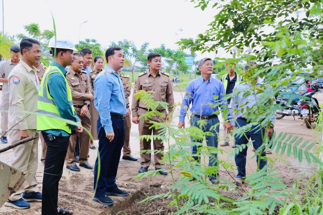 (កំពង់ចាម) :ឯកឧត្តម អ៊ុន ចាន់ដា អភិបាល នៃគណៈអភិបាលខេត្តកំពង់ចាម នៅព្រឹកថ្ងៃទី២ ខែកញ្ញា ឆ្នាំ២០២៥នេះ បានដឹកនាំក្រុមការងារ និងមន្ទីរអង្គភាពជំនាញ អញ្ជើញចុះពិនិត្យលក្ខណៈបច្ចេកទេសប្រព័ន្ធលូរំដោះទឹកភ្លៀង និងគម្រោងជួសជុលកែលម្អសួនច្បារ, ការដាំដើមឈើ, ដើមផ្កាលម្អ នៅតាមបណ្តោយផ្លូវភ្លោះ ស.ស.យ.ក ខេត្ត ស្ថិតក្នុងភូមិតាណេង សង្កាត់សំបួរមាស ក្រុងកំពង់ចាម។