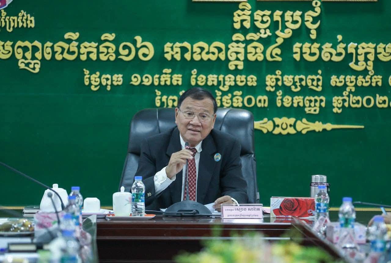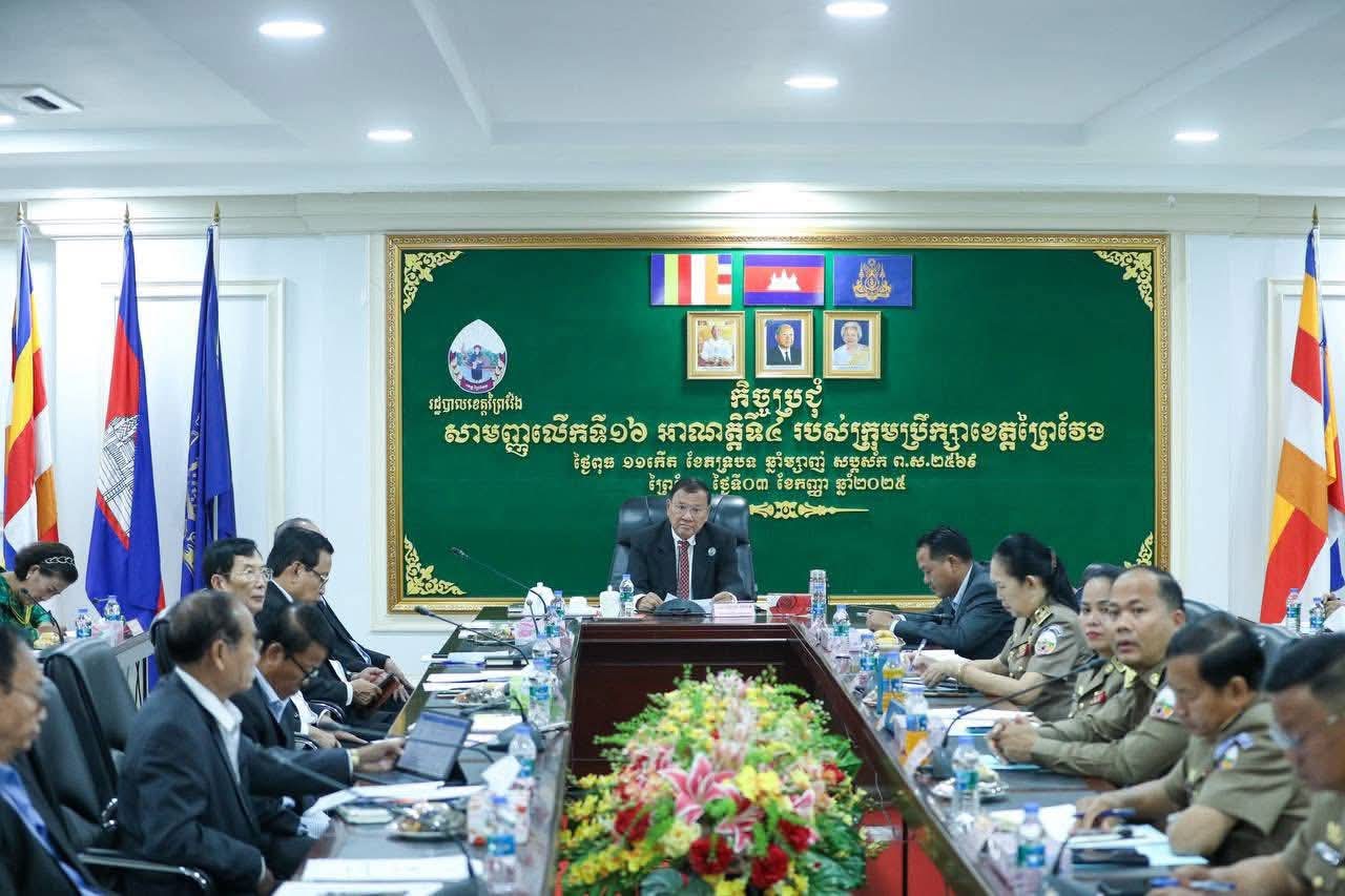 (ព្រៃវែង) :នៅព្រឹកថ្ងៃទី០៣ ខែកញ្ញា ឆ្នាំ២០២៥ ឯកឧត្ដម ស្បោង សារ៉ាត ប្រធានក្រុមប្រឹក្សាខេត្តព្រៃវែង និងឯកឧត្តម សួន សុម៉ាលីន អភិបាលនៃគណៈអភិបាលខេត្តព្រៃវែង បានអញ្ជើញដឹកនាំកិច្ចប្រជុំសាមញ្ញលើកទី១៦ អាណត្តិទី៤ របស់ក្រុមប្រឹក្សាខេត្តព្រៃវែង ដែលប្រព្រឹត្តទៅនៅសាលប្រជុំ «C» សាលាខេត្តព្រៃវែង។