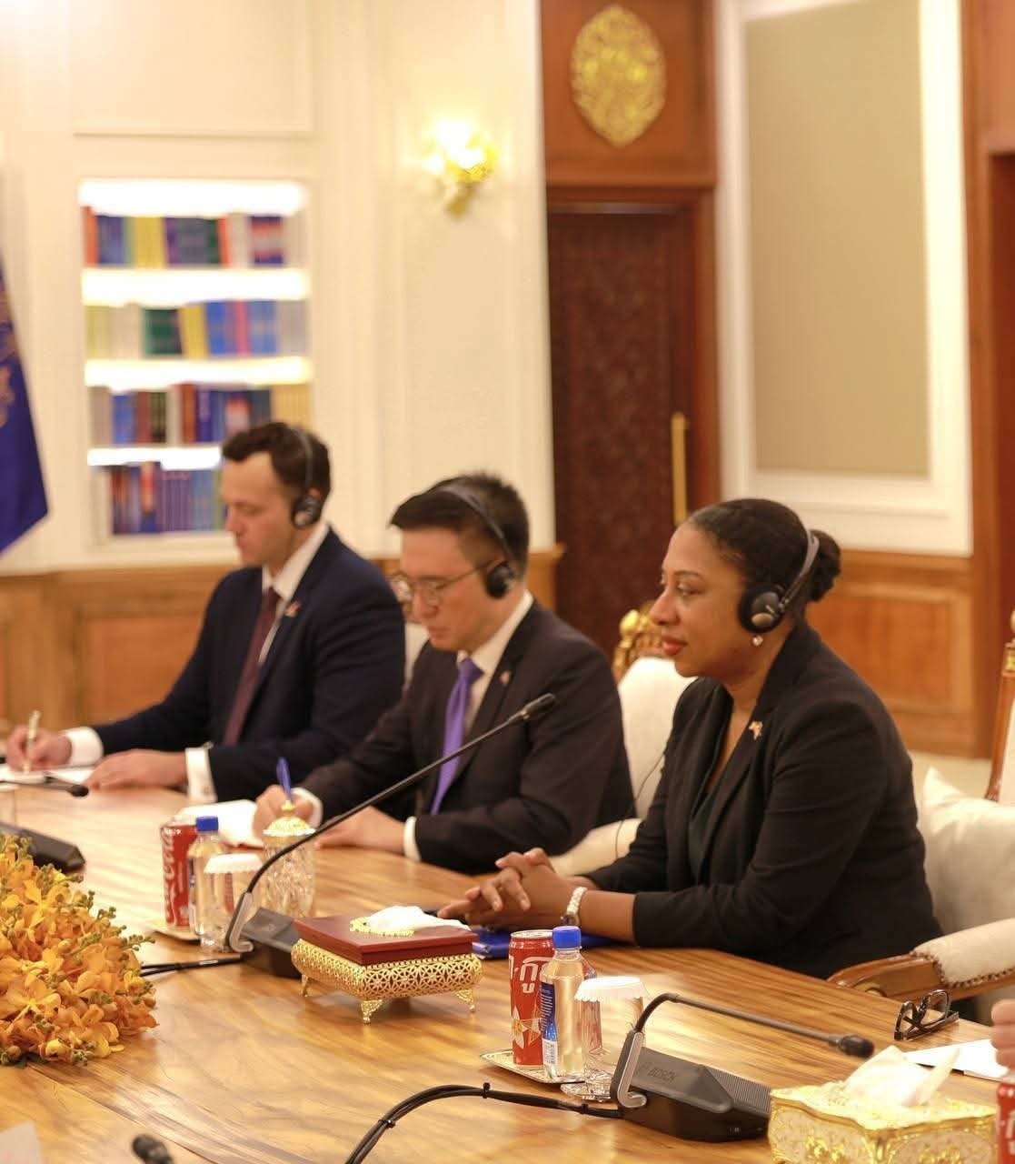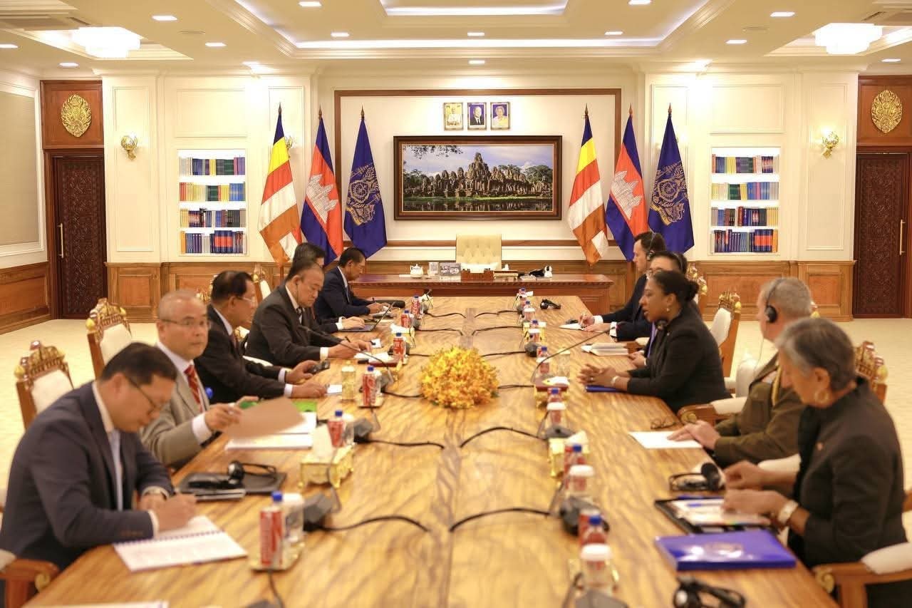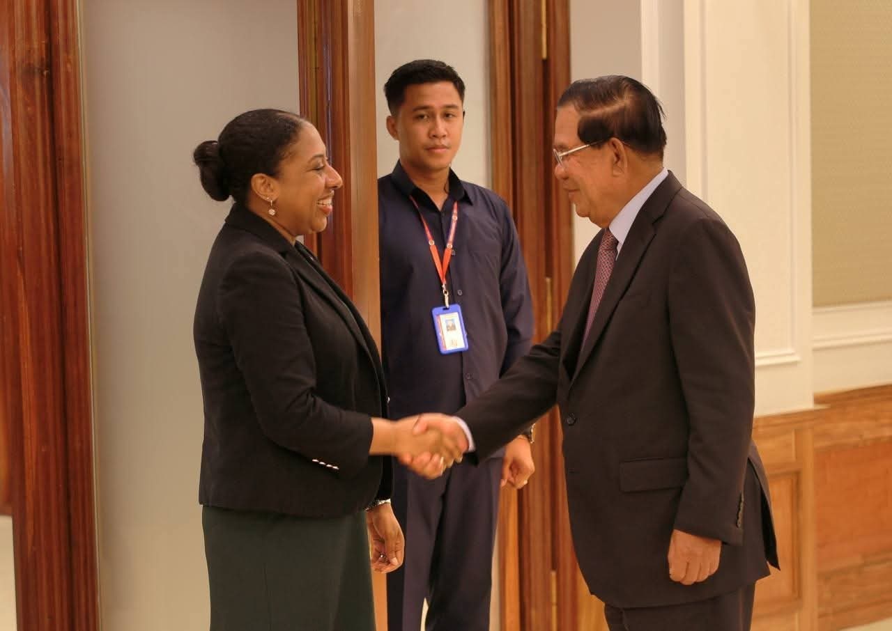 (ភ្នំពេញ) :នៅព្រឹកថ្ងៃទី៥ ខែកញ្ញា ឆ្នាំ២០២៥ សម្ដេចតេជោ ហ៊ុន សែន ប្រមុខរដ្ឋស្ដីទីនៃព្រះរាជាណាចក្រកម្ពុជា អនុញ្ញាតឱ្យលោកស្រី Bridgette L. Walker ភារៈធារីស្ងានទូតអាម៉េរិកប្រចាំកម្ពុជា ចូលជួបសំដែងការគួរសម និងពិភាក្សាការងារ នៅវិមានព្រឹទ្ធសភា រាជធានីភ្នំពេញ។