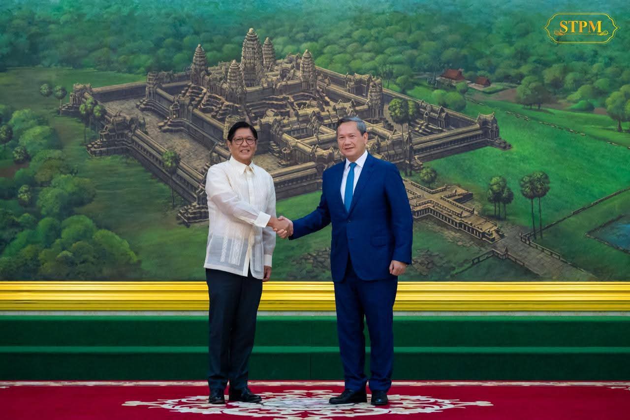 (រាជធានីភ្នំពេញ):សម្តេចមហាបវរធិបតី ហ៊ុន ម៉ាណែត នាយករដ្ឋមន្ត្រី នៃព្រះរាជាណាចក្រកម្ពុជា អញ្ជើញជួបប្រជុំទ្វេភាគីជាមួយ ឯកឧត្តម Ferdinand Romualdez Marcos Jr. ប្រធានាធិបតីនៃសាធារណរដ្ឋហ្វីលីពីន នៅវិមានសន្តិភាព រាជធានីភ្នំពេញ នាព្រឹកថ្ងៃទី០៨ ខែកញ្ញា ឆ្នាំ២០២៥ ក្នុងឱកាសដែលឯកឧត្តមដឹកនាំគណៈប្រតិភូ អញ្ជើញមកបំពេញទស្សនកិច្ចផ្លូវរដ្ឋ រយៈពេល០៣ថ្ងៃ នៅព្រះរាជាណាចក្រកម្ពុជា។