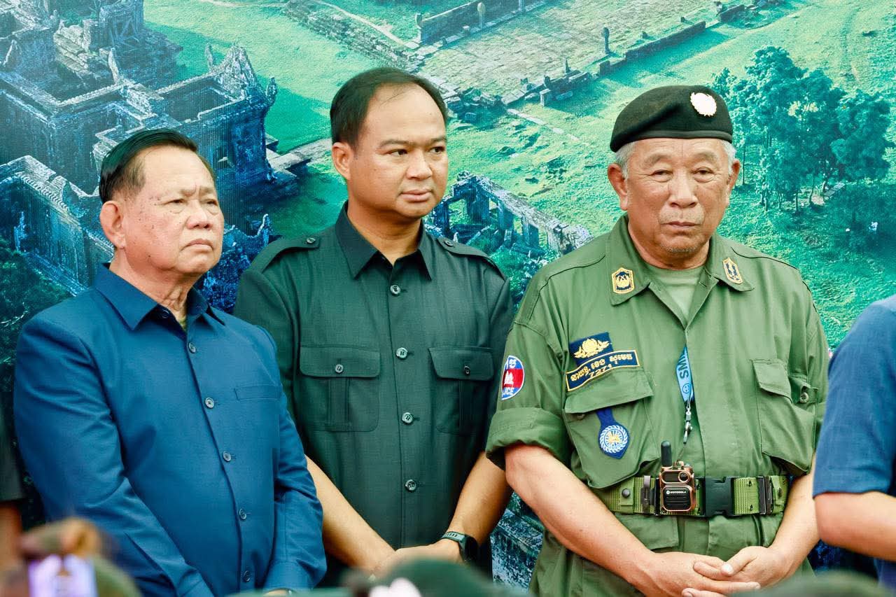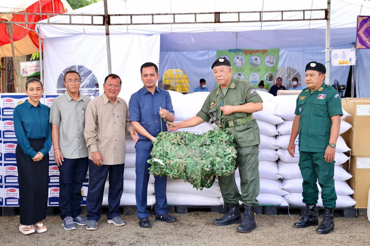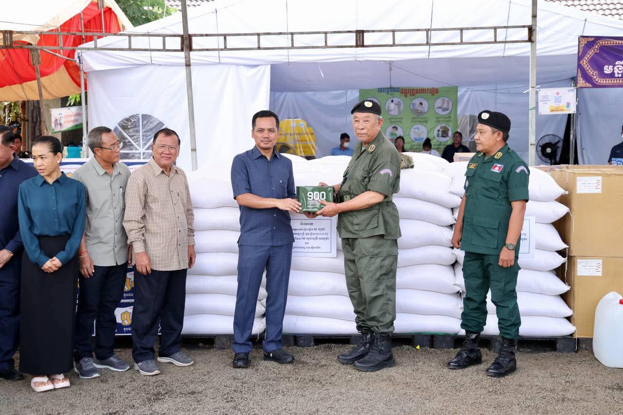 (ព្រះវិហារ): នៅព្រឹកថ្ងៃទី០៨ ខែកញ្ញា ឆ្នាំ២០២៥នេះ ឯកឧត្តម សួន សុម៉ាលីន អភិបាល នៃគណ:អភិបាលខេត្តព្រៃវែង និងលោកជំទាវ ជុន បូរ៉ានី រួមជាមួយឯកឧត្តម ស្បោង សារ៉ាត ប្រធានក្រុមប្រឹក្សាខេត្ត ព្រមទាំងថ្នាក់ដឹកនាំខេត្ត បានអញ្ជើញអមដំណើរ ឯកឧត្តមអភិសន្តិបណ្ឌិត ស សុខា ឧបនាយករដ្ឋមន្រ្តី រដ្ឋមន្រ្តីក្រសួងមហាផ្ទៃ អញ្ជើញចុះជួបសំណេះសំណាលសួរសុខទុក្ខ និងនាំយកអំណោយ គ្រឿងឧបភោគ-បរិភោគ និងសម្ភារប្រើប្រាស់ រួមទាំងថវិកាមួយចំនួន ប្រគល់ជូនដល់វរនគរបាលការពារព្រំដែនគោកនៅសមរភូមិជួរមុខ និងពុកម៉ែអ៊ុំពូមីងបងប្អូនប្រជាពលរដ្ឋជនភៀសសឹកចំនួន ១.០០០គ្រួសារ ដែលបានជម្លៀសខ្លួនពីតំបន់ព្រំដែនកម្ពុជា-ថៃ មកស្នាក់នៅមណ្ឌលសុវត្ថិភាព វត្តពោធិ៍ ៥.០០០ដើម ស្ថិតនៅស្រុកគូលែន ខេត្តព្រះវិហារ។