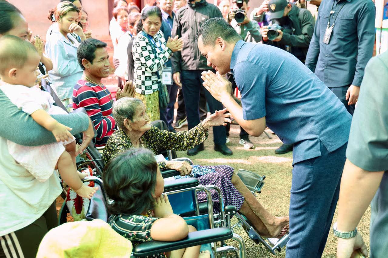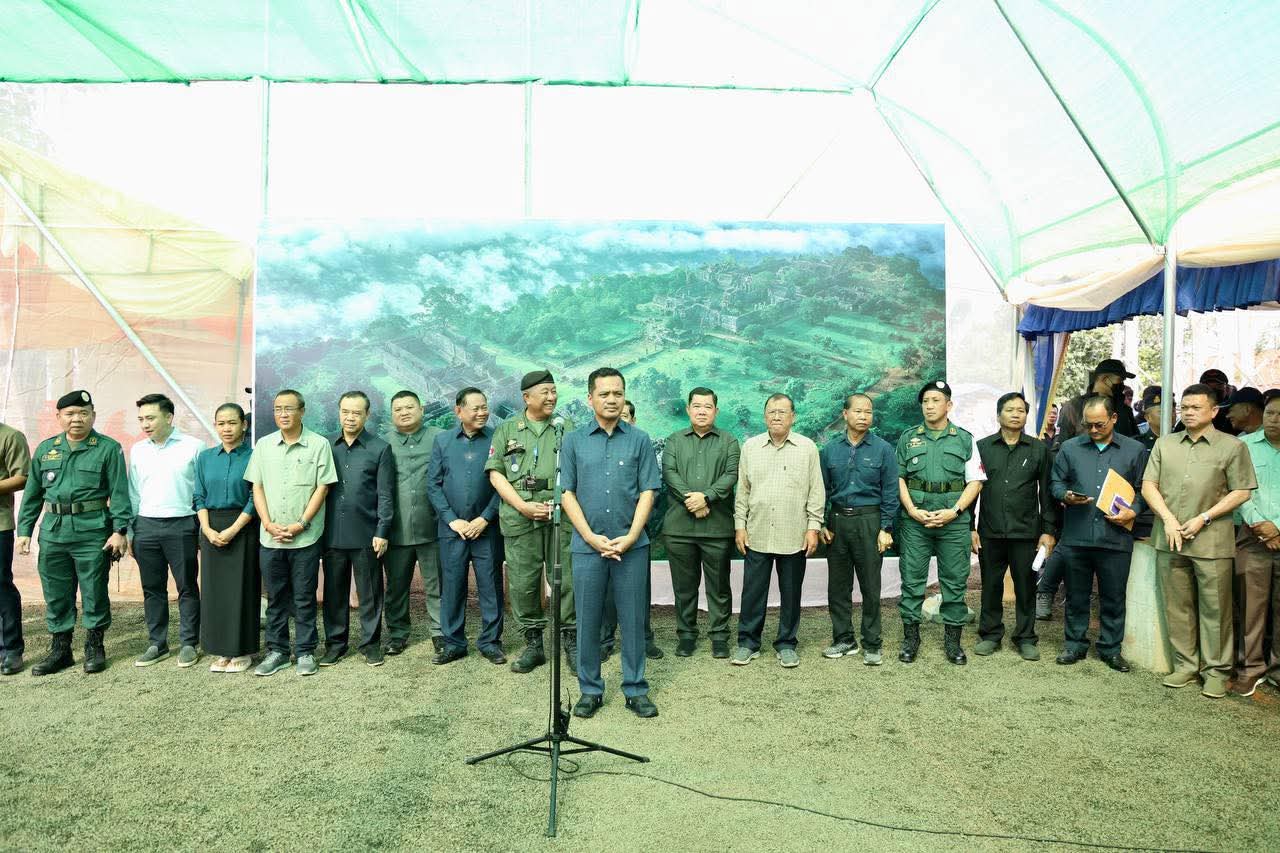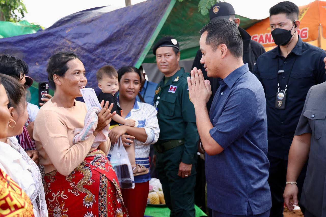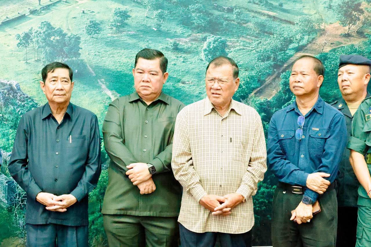 (ព្រះវិហារ): នៅព្រឹកថ្ងៃទី០៨ ខែកញ្ញា ឆ្នាំ២០២៥នេះ ឯកឧត្តម សួន សុម៉ាលីន អភិបាល នៃគណ:អភិបាលខេត្តព្រៃវែង និងលោកជំទាវ ជុន បូរ៉ានី រួមជាមួយឯកឧត្តម ស្បោង សារ៉ាត ប្រធានក្រុមប្រឹក្សាខេត្ត ព្រមទាំងថ្នាក់ដឹកនាំខេត្ត បានអញ្ជើញអមដំណើរ ឯកឧត្តមអភិសន្តិបណ្ឌិត ស សុខា ឧបនាយករដ្ឋមន្រ្តី រដ្ឋមន្រ្តីក្រសួងមហាផ្ទៃ អញ្ជើញចុះជួបសំណេះសំណាលសួរសុខទុក្ខ និងនាំយកអំណោយ គ្រឿងឧបភោគ-បរិភោគ និងសម្ភារប្រើប្រាស់ រួមទាំងថវិកាមួយចំនួន ប្រគល់ជូនដល់វរនគរបាលការពារព្រំដែនគោកនៅសមរភូមិជួរមុខ និងពុកម៉ែអ៊ុំពូមីងបងប្អូនប្រជាពលរដ្ឋជនភៀសសឹកចំនួន ១.០០០គ្រួសារ ដែលបានជម្លៀសខ្លួនពីតំបន់ព្រំដែនកម្ពុជា-ថៃ មកស្នាក់នៅមណ្ឌលសុវត្ថិភាព វត្តពោធិ៍ ៥.០០០ដើម ស្ថិតនៅស្រុកគូលែន ខេត្តព្រះវិហារ។