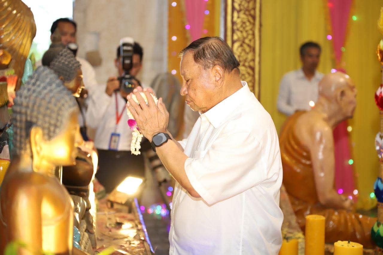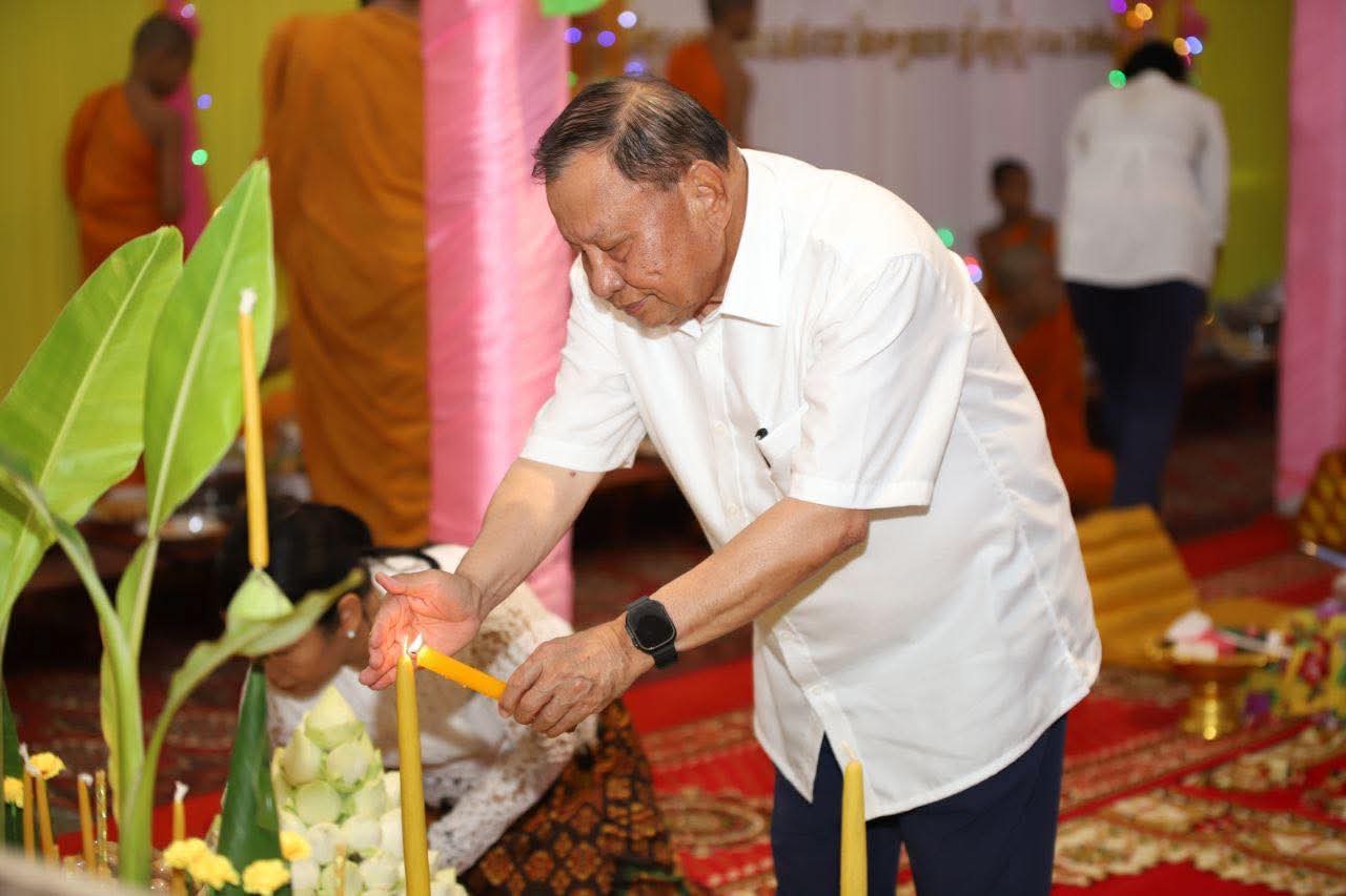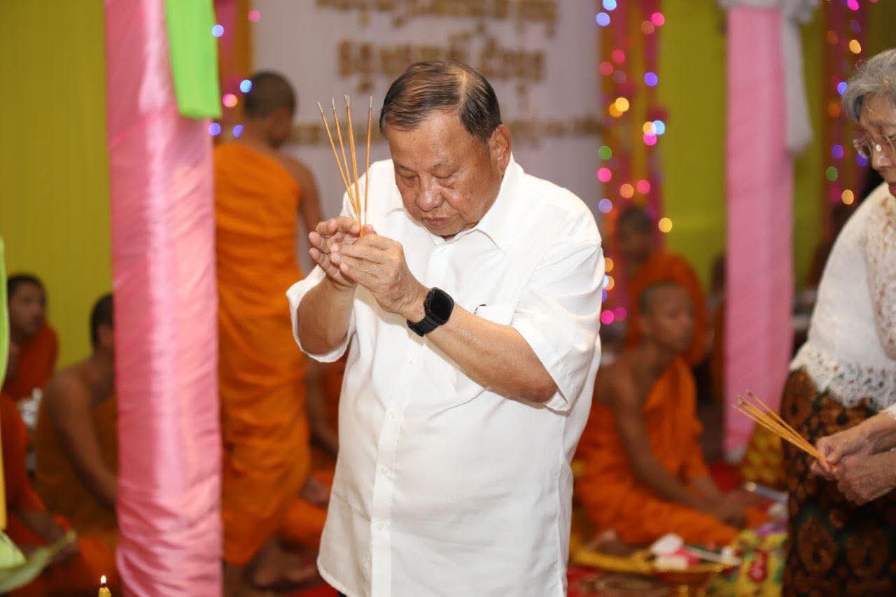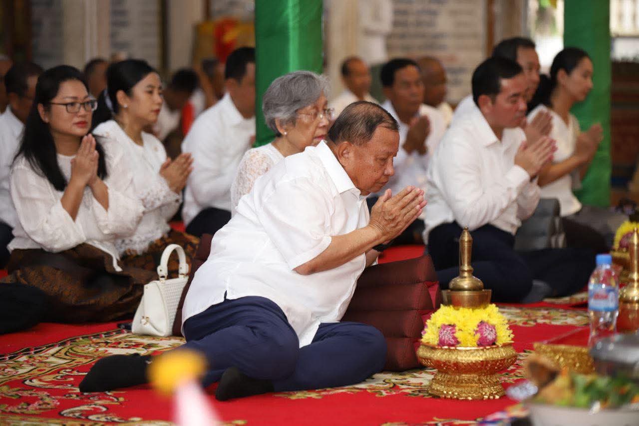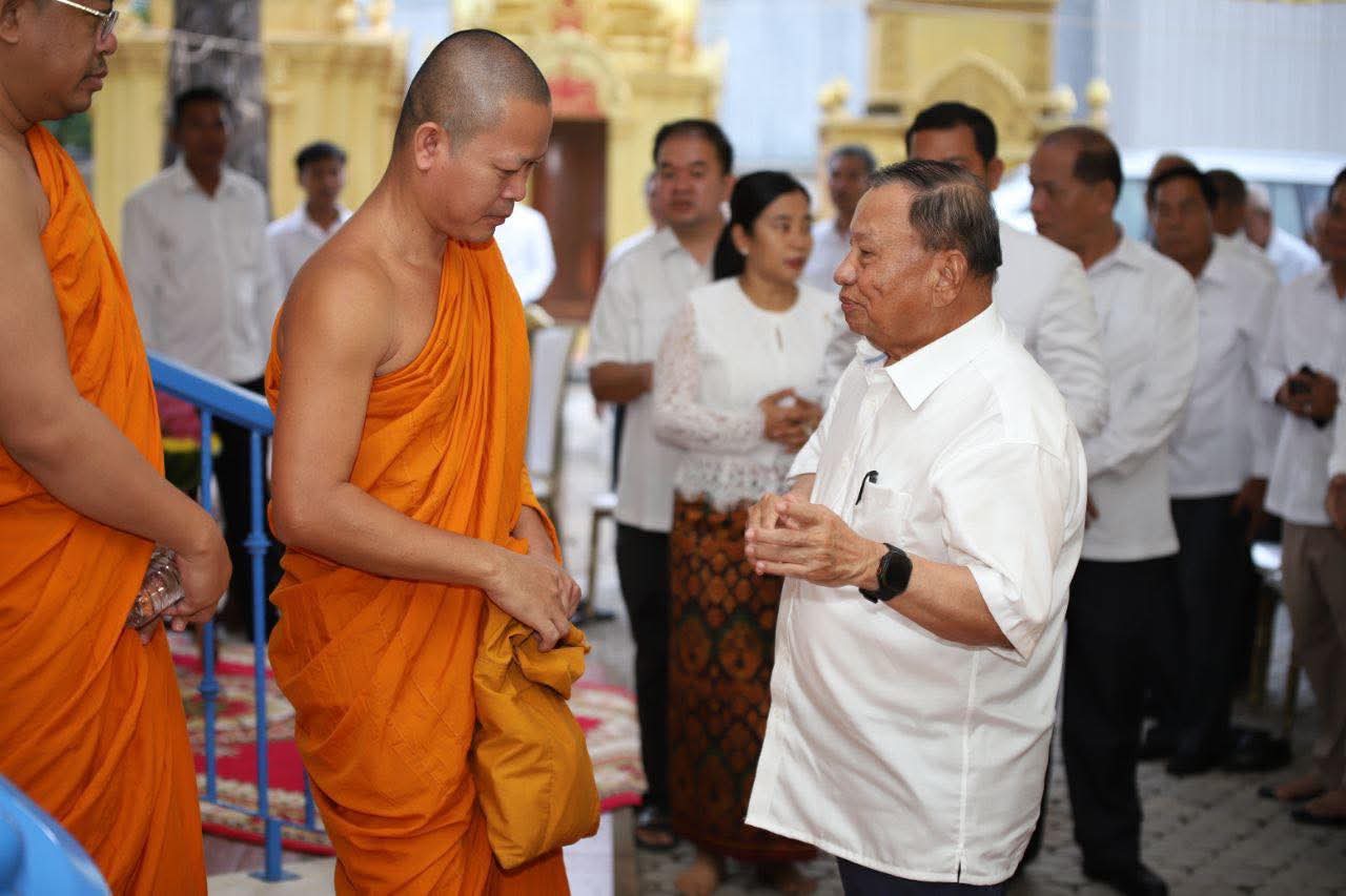 (កំពង់ចាម) :ឯកឧត្តម អ៊ុន ចាន់ដា អភិបាលនៃគណៈអភិបាលខេត្តកំពង់ចាម បានអញ្ជើញចូលរួម ក្នុងឱកាសប្រារព្ធពិធីបុណ្យ កាន់បិណ្ឌ វេនទី៤ នាព្រឹកថ្ងៃព្រហស្បតិ៍ ៤រោច ខែភទ្របទ ឆ្នាំម្សាញ់ សប្តស័ក ពុទ្ធសករាជ ២៥៦៩ ត្រូវនឹងថ្ងៃទី១១ ខែកញ្ញា ឆ្នាំ២០២៥ ក្រោមអធិបតីភាព សម្តេចវិបុលសេនាភក្តី សាយ ឈុំ ឧត្តមក្រុមប្រឹក្សាផ្ទាល់ព្រះមហាក្សត្រ និងលោកជំទាវ ព្រមទាំងក្រុមគ្រួសារបានអញ្ជើញប្រារព្ធពិធីប័ង្សុកូល ឧទ្ទិសកុសលជូនដល់ដួងវិញ្ញាណក្ខ័ន្ធ មហាឩបាសក គង់ ខាត់ និងសូមជូនដល់វិញ្ញាណក្ខ័ន្ធ មាតា បិតា ញាតិការទាំង៧សន្តាន ដែលបានបែកកាយរំលាយខ័ន្ធទៅកាន់លោកខាងមុខហើយនោះ ផងដែរ ។ ពិធីនេះបានប្រព្រឹត្តទៅ តាមទំនៀម ទំលាប់ខ្មែរ និងតាមគន្លងប្រពៃណីព្រះពុទ្ធសាសនា នៅវត្តសុវណ្ណគីរី (ហៅវត្តជើងឆ្នុក) ដែលស្ថិតនៅក្នុងភូមិជើងឆ្នុក ឃុំតាំងក្រាំង ស្រុកបាធាយ ខេត្តកំពង់ចាម ។