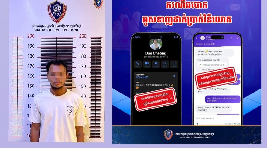 រាជធានីភ្នំពេញ ៖ យោងតាមបញ្ជាដឹកនាំរបស់ ឯកឧត្ដម នាយឧត្ដមសេនីយ៍ ស ថេត អគ្គស្នងការនគរបាលជាតិ និងតាមការចង្អុលណែនាំពី ឯកឧត្ដម ឧត្ដមសេនីយ៍ឯក អគ្គស្នងការរងនគរបាលជាតិ កាលពីថ្ងៃទី០៨ ខែកញ្ញា ឆ្នាំ២០២៥ នាយកដ្ឋានប្រឆាំងបទល្មើសបច្ចេកវិទ្យា បានបើកការស្រាវជ្រាវ និងបង្រ្កាបលើករណីឆបោកប្រាក់ក្រោមរូបភាពវិនិយោគតាមអនឡាញ។ ដោយមានការសម្របសម្រួលពី ព្រះរាជអាជ្ញាអមសាលាដំបូងរាជធានីភ្នំពេញ នាយកដ្ឋានបានឃាត់ខ្លួនជនសង្ស័យ ០១នាក់ ឈ្មោះ ឈ.ច.រ ភេទប្រុស ជនជាតិខ្មែរ។ តាមរយៈការស្រាវជ្រាវ សមត្ថកិច្ចកំណត់បានថា ជនសង្ស័យរូបនេះ ជាអ្នកធ្វើសកម្មភាពទទួល និងផ្ទេរប្រាក់ឆបោកពីជនរងគ្រោះជាបន្ដបន្ទាប់ ហើយទទួលបានផលប្រយោជន៍ពីអំពើទុច្ចរិតនេះ។