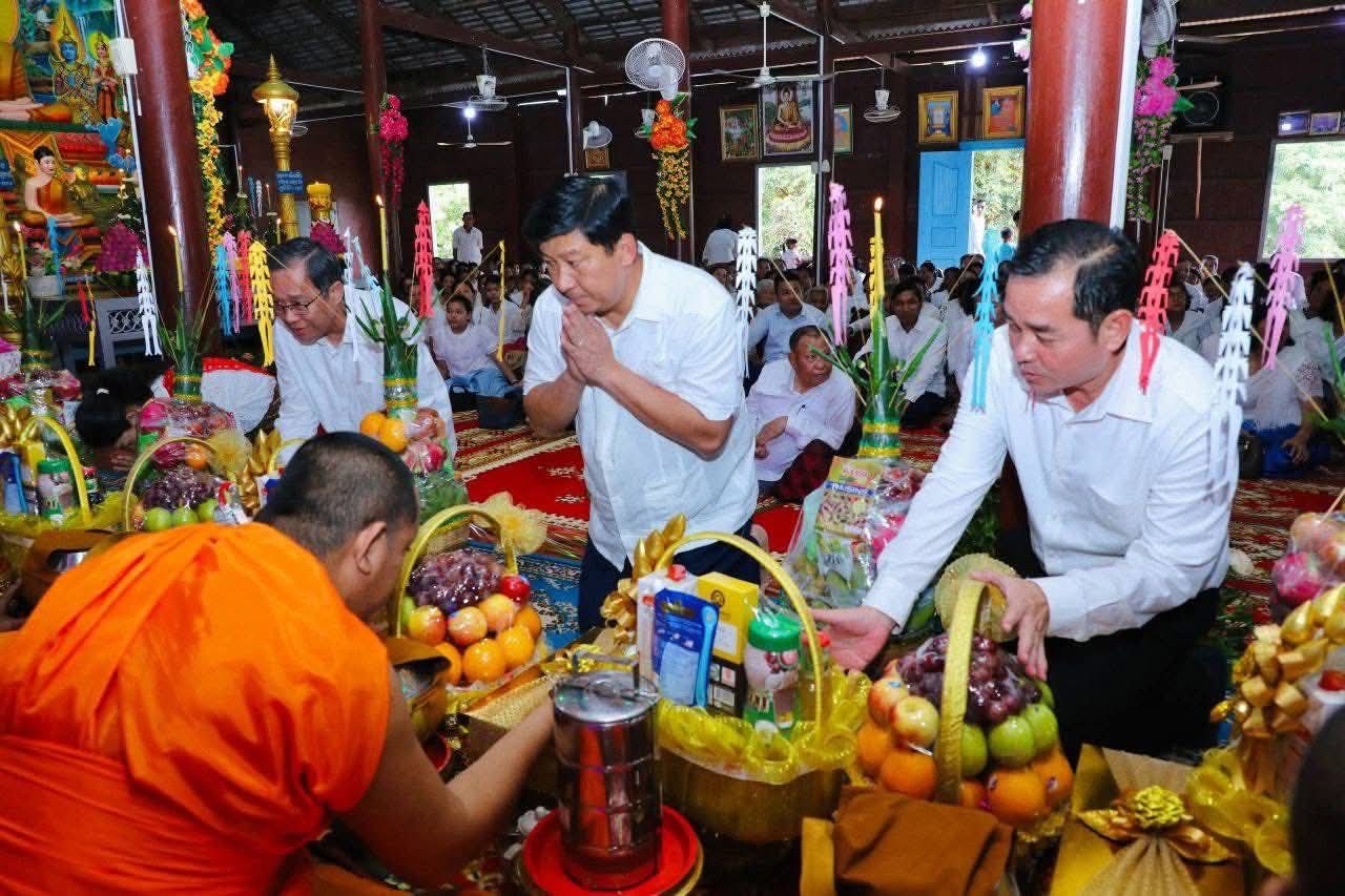 (កំពង់ចាម) ៖ នាព្រឹកថ្ងៃទី១៤ ខែកញ្ញា ឆ្នាំ២០២៥នេះ ឯកឧត្តម អ៊ុន ចាន់ដា អភិបាលនៃគណៈអភិបាលខេត្តកំពង់ចាម បានអញ្ជើញ អមដំណើរ សម្តេចវិបុលសេនាភក្តី សាយ ឈុំ ឧត្តមក្រុមប្រឹក្សាផ្ទាល់ព្រះមហាក្សត្រ និងលោកជំទាវ ព្រមទាំង ក្រុមគ្រួសារក្នុងឱកាសប្រារព្ធពិធីបុណ្យកាន់បិណ្ឌ វេនទី៧ នៅវត្តកណ្តាលកោះសូទិន ស្រុកកោះសូទិន ខេត្តកំពង់ចាម។