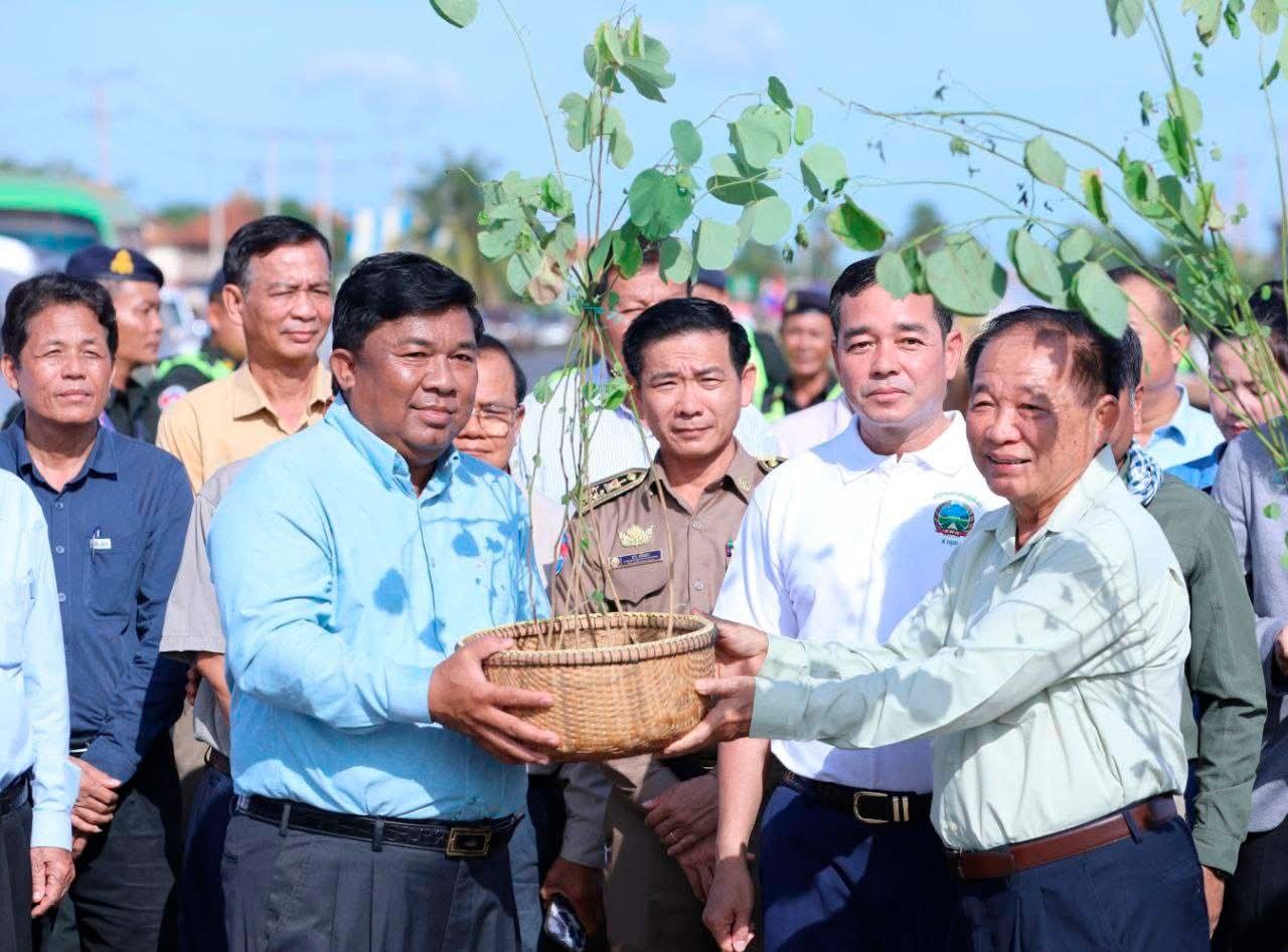 (កំពង់ចាម)៖ ដើមឈើផ្កាលម្អ ប្រភេទ”ជើងគោ” ចំនួន១៥.០០០ដើម ដែលជាអំណោយរបស់ ឯកឧត្តម សាយ សំអាល់ ឧបនាយករដ្ឋមន្ត្រី រដ្ឋមន្ត្រីក្រសួងរៀបចំដែនដី នគរូបនីយកម្មនិងសំណង់ តាមរយៈ សំណើស្នើសុំរបស់ ឯកឧត្តម អ៊ុន ចាន់ដា អភិបាលខេត្តកំពង់ចាម ត្រូវបានធ្វើពិធីដាំ ស្ថិតក្តោមវត្តមាន អញ្ជើញចូលរួមជាគណៈអធិបតី ពី ឯកឧត្តម លឹម សុីដេនីន រដ្ឋលេខាធិការក្រសួង សាធារណៈការ និងដឹកជញ្ជូន និងជាប្រធានគម្រោងកសាងផ្លូវជាតិលេខ៧, ឯកឧត្តម អ៊ុន ចាន់ដា អភិបាលនៃគណៈអភិបាលខេត្តកំពង់ចាម និង ឯកឧត្តម ខ្លូត ផន ប្រធានក្រុមប្រឹក្សាខេត្ត ស្ថិតព្រំប្រទល់នៃស្រុក ព្រៃឈរ-ជើងព្រៃ នាព្រឹកថ្ងៃទី១៨ ខែកញ្ញា ឆ្នាំ២០២៥។ ពិធីនេះ មានការចូលរួមពីសំណាក់ ថ្នាក់ដឹកនាំ មន្ត្រីរាជការ, មន្ទីរ អង្គភាពជុំវិញខេត្ត, អាជ្ញាធរមូលដ្ឋាន លោកគ្រូ អ្នកគ្រូ យុវជន និងសិស្សានុសិស្ស និងបងប្អូនប្រជាពលរដ្ឋយ៉ាងច្រើនកុះករ។
