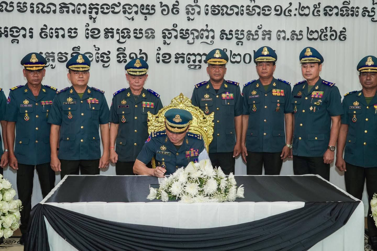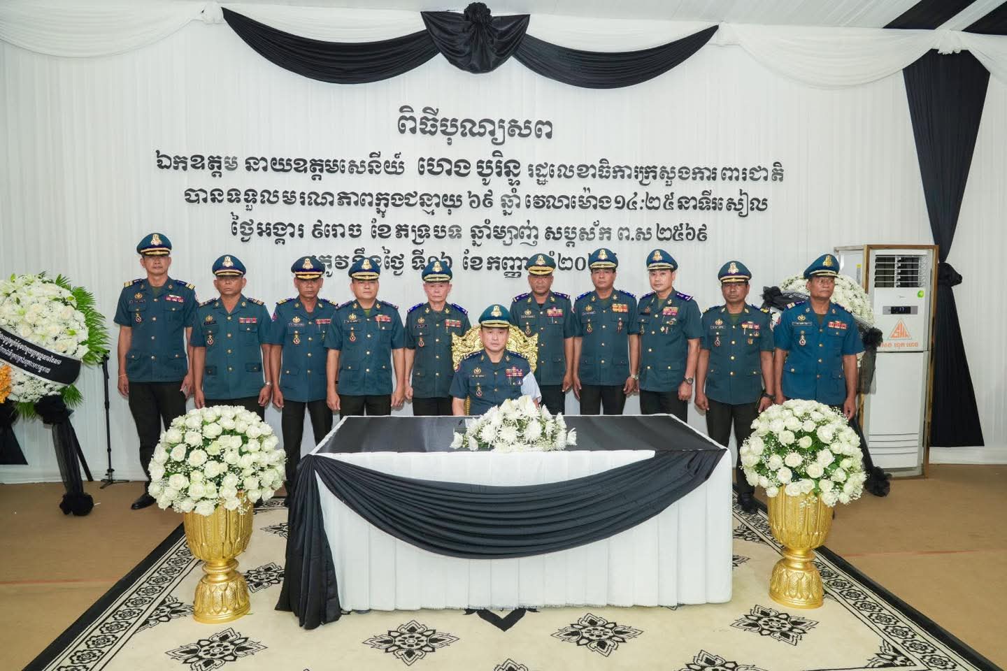 (ភ្នំពេញ) :នារសៀល ថ្ងៃទី១៨ ខែកញ្ញា ឆ្នាំ២០២៥ លោកឧត្តមសេនីយ៍ឯក រ័ត្ន ស្រ៊ាង មេបញ្ជាការរង កងរាជអាវុធហត្ថលើផ្ទៃប្រទេស ជា មេបញ្ជាការ កងរាជអាវុធហត្ថ រាជធានីភ្នំពេញ បានដឹកនាំប្រតិភូចូលរួមគោរពវិញ្ញាណក្ខន្ធសព ឯកឧត្តម នាយឧត្តមសេនីយ៍ ហេង បូរិន្ទ រដ្ឋលេខាធិការ ក្រសួងការពារជាតិ ដែលបានទទួលមរណភាព នៅថ្ងៃទី១៦ ខែកញ្ញា ឆ្នាំ២០២៥ វេលាម៉ោង ២:២៥នាទីរសៀល ដោយរោគគាពាធ ក្នុងជន្មាយុ៦៩ឆ្នាំ។ សពតម្កល់ធ្វើបុណ្យតាមប្រពៃណីនៅគេហដ្ឋាននៃសពស្ថិតនៅភូមិគ្រឹះលេខ BT2-786-790 ភូមិគៀនឃ្លាំង សង្កាត់ជ្រោយចង្វារ ខណ្ឌជ្រោយចង្វារ (តំបន់អភិវឌ្ឍន៍ OCIC) រាជធានីភ្នំពេញ។