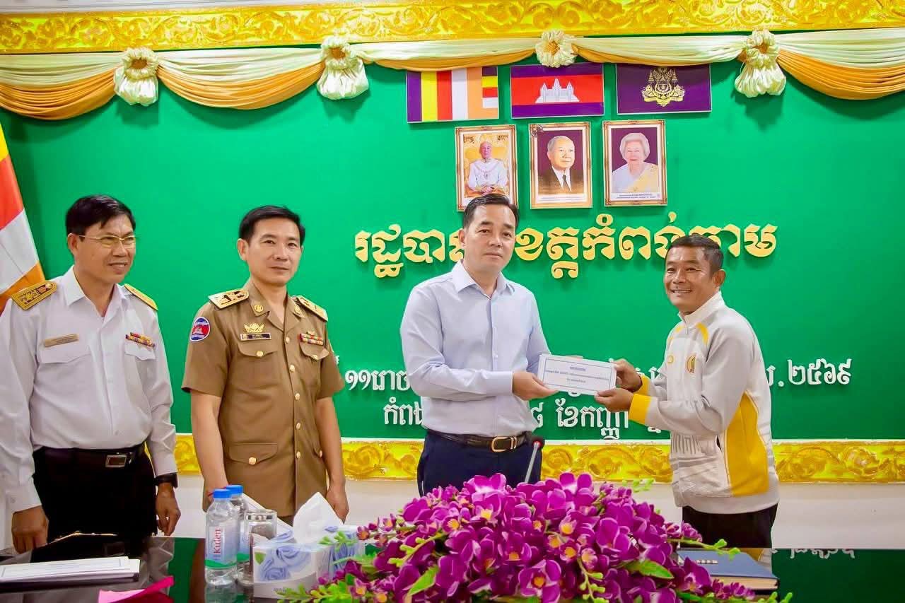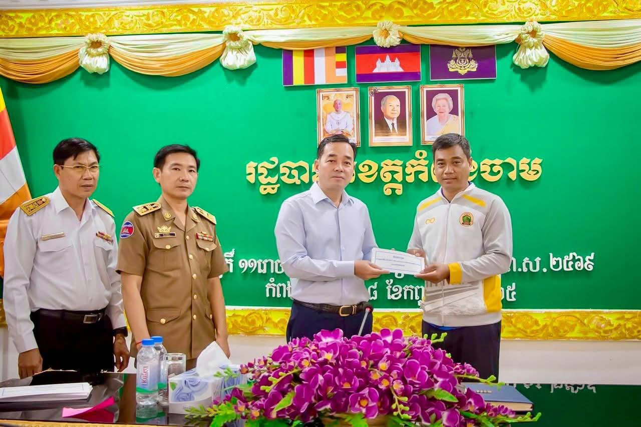 (កំពង់ចាម) :ឯកឧត្តម អ៊ុន ចាន់ដា អភិបាលនៃគណៈអភិបាលខេត្តកំពង់ចាម អញ្ជើញជួបសំណេះសំណាលជាមួយក្រុមកីឡាករបាល់ទាត់ខេត្តកំពង់ចាម នៅសាលប្រជុំតូចសាលាខេត្ត នារសៀល ថ្ងៃព្រហស្បតិ៍ ១១រោច ខែភទ្របទ ឆ្នាំម្សាញ់ សប្តស័ក ព.ស.២៥៦៩ ត្រូវនឹងថ្ងៃទី១៨ ខែកញ្ញា ឆ្នាំ២០២៥