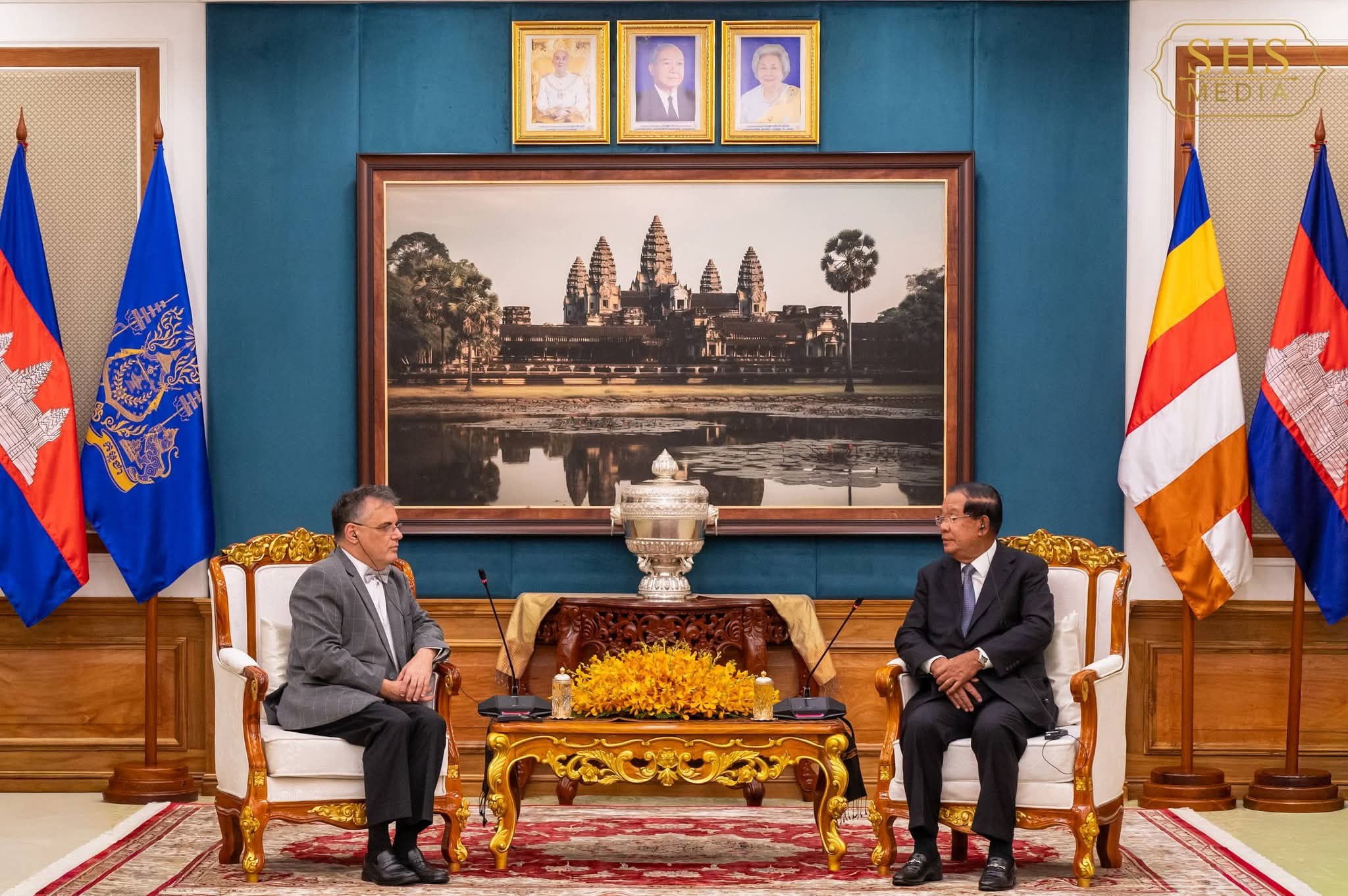 (ភ្នំពេញ) :នៅវិមានព្រឹទ្ធសភា នាព្រឹកថ្ងៃទី១៨ ខែកញ្ញា ឆ្នាំ២០២៥ សម្តេចអគ្គមហាសេនាបតីតេជោ ហ៊ុន សែន ប្រមុខរដ្ឋស្តីទី នៃព្រះរាជាណាចក្រកម្ពុជា អនុញ្ញាតឱ្យឯកឧត្តម អូលីវែរ រីឆាត (Olivier RICHARD) ឯកអគ្គរដ្ឋទូតវិសាមញ្ញ នឹងពេញសមត្ថភាពនៃសាធារណរដ្ឋបារាំង ប្រចាំព្រះរាជាណាចក្រកម្ពុជា ចូលជួបសម្តែងការគួរសម នឹងពិភាក្សាការងារ។