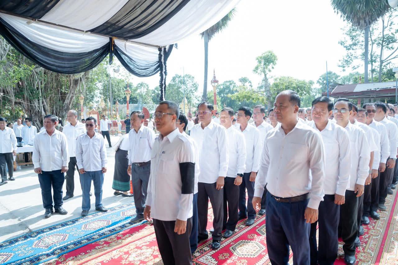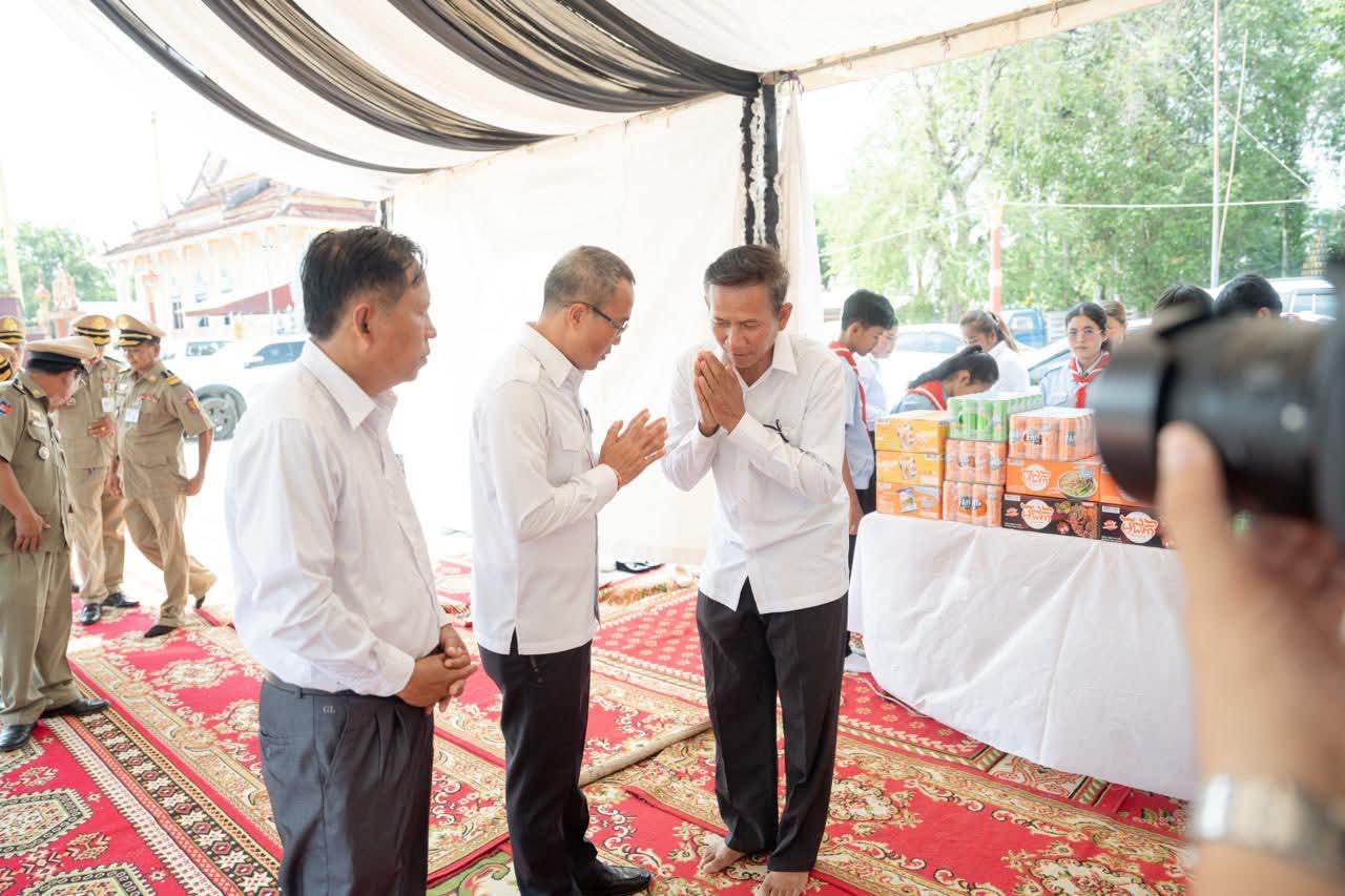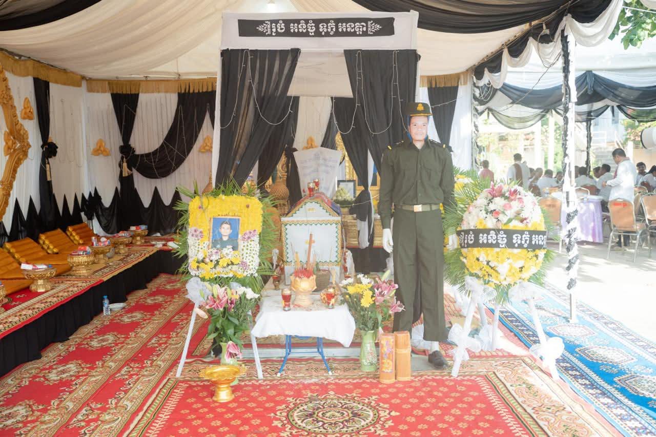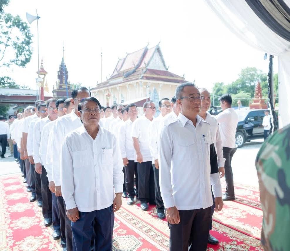 (ព្រៃវែង) : នៅព្រឹកថ្ងៃអាទិត្យ ៩កើត ខែស្រាពណ៍ ឆ្នាំម្សាញ់ សប្តស័ក ព.ស.២៥៦៩ ត្រូវនឹងថ្ងៃទី០៣ ខែសីហា ឆ្នាំ២០២៥នេះ ឯកឧត្តម សួន សុម៉ាលីន អភិបាល នៃគណៈអភិបាលខេត្តព្រៃវែង រួមជាមួយថ្នាក់ដឹកនាំខេត្ត បានអញ្ជើញចូលរួមគោរពវិញ្ញាណក្ខន្ធសព អនុសេនីយ៍ត្រី មឿន សាម៉េត ជាយោធិននៃកងពលធំអន្តរាគមន៍លេខ២ កងទ័ពជើងគោក ដែលបានទទួលមរណៈភាព កាលពីថ្ងៃទី០១ ខែសីហា ឆ្នាំ២០២៥ ដោយរោគាពាធ ក្នុងពេលបំពេញបេសកកម្មការពារបូរណភាពទឹកដី នៅតាមបណ្ដោយព្រំដែន ដែលពិធីបុណ្យប្រារព្ធធ្វើនៅវត្តកស្សបៈ ភូមិដងទង់ ឃុំប្រាសាទ ស្រុកកំពង់ត្របែក ខេត្តព្រៃវែង។