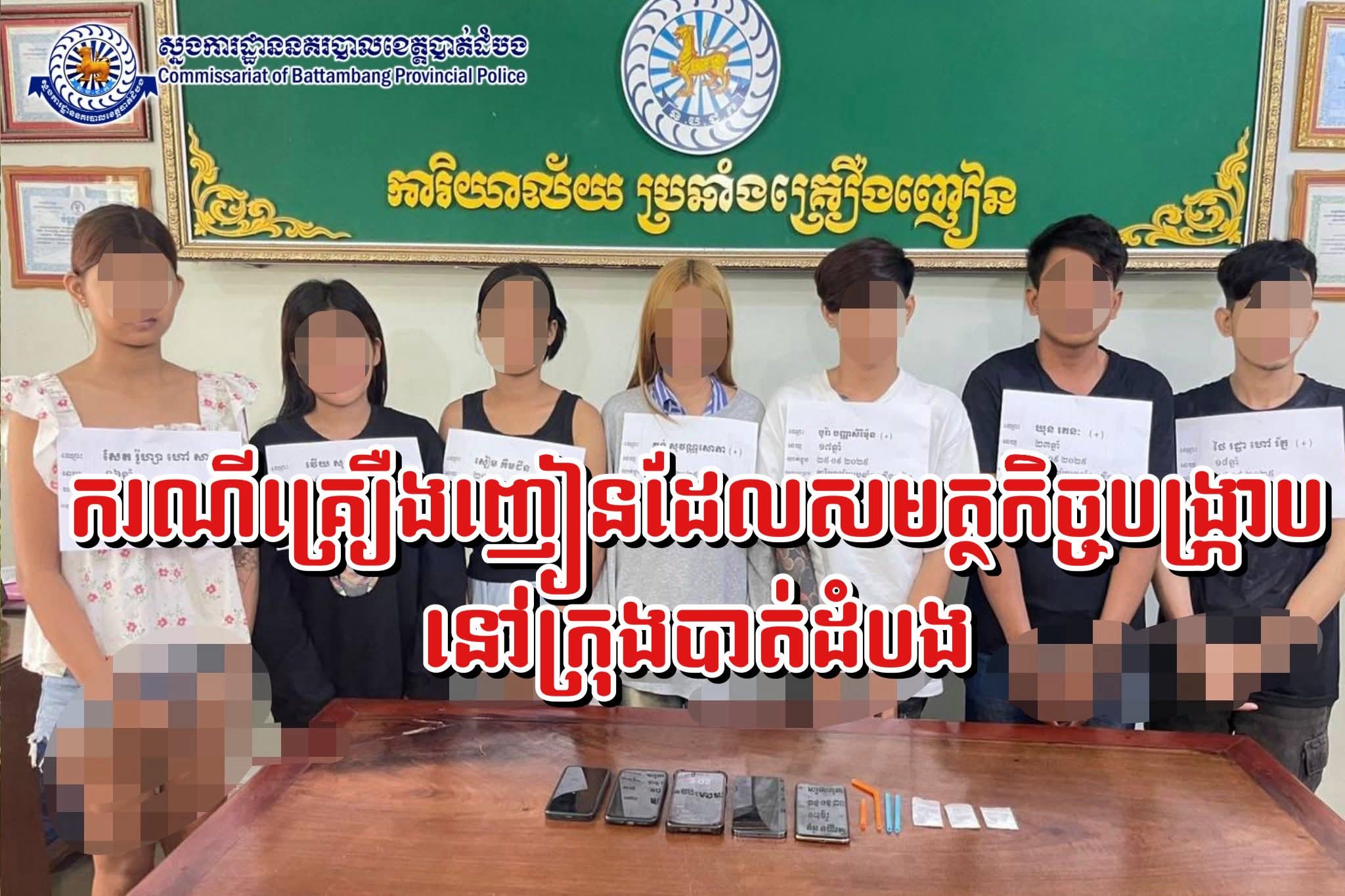 (បាត់ដំបង) :រយៈពេល០២ថ្ងៃគឺថ្ងៃទី២៤និងទី២៥ ខែកញ្ញា ឆ្នាំ២០២៥ នៅចំណុចភូមិគួយជីកដី ឃុំរបស់មង្គល ស្រុកមោងឫស្សី ខេត្តបាត់ដំបង និងសង្កាត់ចំការសំរោងក្រុងបាត់ដំបង តាមអនុសាសន៍ដ៏ខ្ពង់ខ្ពស់របស់ឯកឧត្តម នាយឧត្តមសេនីយ៍ ស ថេត អគ្គស្នងការនគរបាលជាតិ និងការដឹកនាំរបស់លោកឧត្តមសេនីយ៍ទោ ដាញ់ អេងប៊ុនចាន់ ស្នងការនៃស្នងការដ្ឋាននគរបាលខេត្តបាត់ដំបងកម្លាំងនគរបាលផែនការងារប្រឆាំងគ្រឿងញៀនដែលមានលោកវរសេនីយ៍ឯក សុខ និមល ជាស្នងការរង ដឹកនាំបង្ក្រាបករណីជួញដូរដោយខុសច្បាប់ នូវសារធាតុញៀននិងករណីប្រេីប្រាស់គ្រឿងញៀន០២ករណី ក្នុងបទល្មើសជាក់ស្តែង និងឃាត់ខ្លួនជនសង្ស័យបានចំនួន០៨នាក់ស្រីចំនួន ០៥នាក់ វត្ថុតាងចាប់យកបានរួមមាន៖