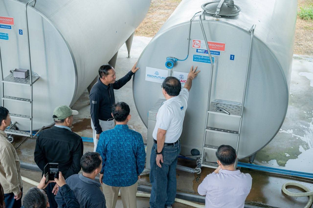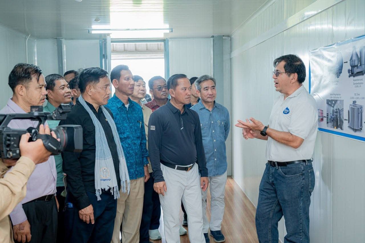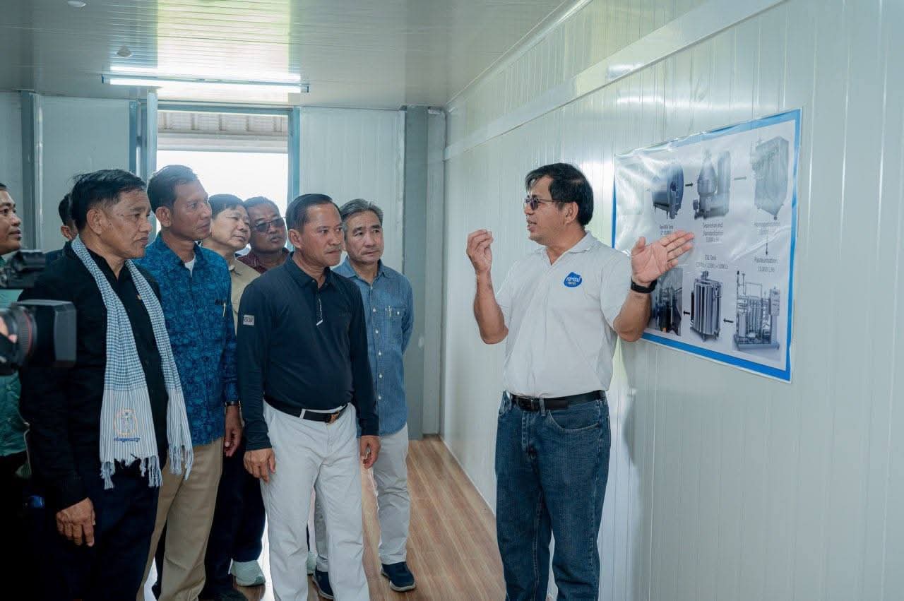 ខេត្តតាកែវ: លោក វ៉ី សំណាង អភិបាលខេត្តតាកែវ នៅព្រឹកថ្ងៃអាទិត្យ ទី២៨ ខែកញ្ញា ឆ្នាំ២០២៥ បានដឹកនាំគណៈប្រតិភូខេត្ត មន្ត្រីជំនាញ និងអាជ្ញាធរមូលដ្ឋាន ចុះបំពេញទស្សនកិច្ចសិក្សាស្វែងយល់ដោយផ្ទាល់អំពីសង្វាក់ផលិតកម្មផលិតទឹកដោះគោស្រស់នៅឯ កសិដ្ឋានគីរីសួគ៌ (Khmer Fresh Milk) ដែលមានទីតាំងស្ថិតនៅតំបន់ភ្នំតាម៉ៅ ក្នុងស្រុកបាទី ខេត្តតាកែវ។