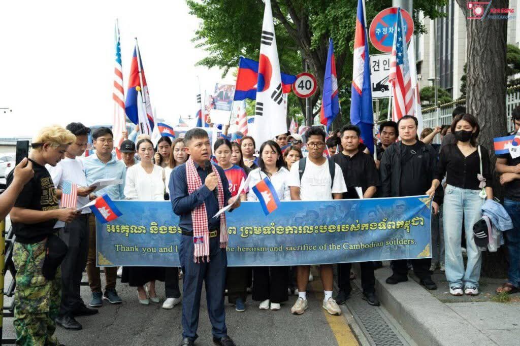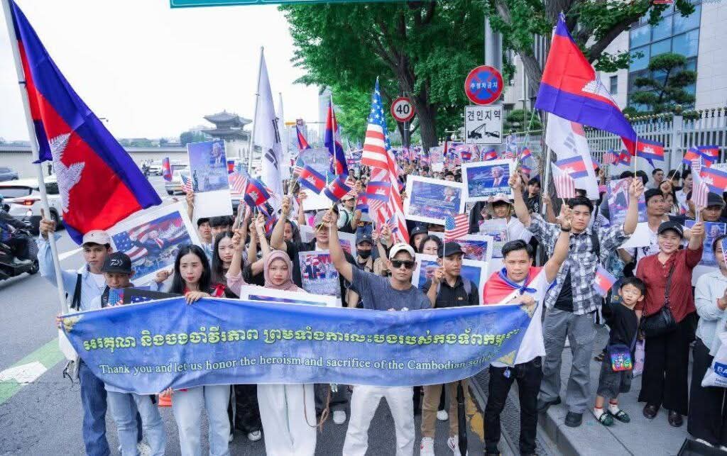(ភ្នំពេញ) ៖ សហគមន៍ខ្មែរ និងពលករខ្មែរនៅកូរ៉េ ជិត២.០០០នាក់ បានប្រមូលផ្តុំគ្នាសម្តែងមតិនៅមុខព្រះរាជវាំង ទីក្រុងសេអ៊ូល នារសៀលថ្ងៃទី៣ ខែសីហា ឆ្នាំ២០២៥នេះ ដើម្បីអរគុណប្រធានាធិបតីសហរដ្ឋអាមេរិក លោក ដូណាល់ ត្រាំ ដែលជួយឱ្យមានបទឈប់បាញ់ និងសន្តិភាព និងជំរុញឱ្យប្រទេសថៃយល់ព្រមទៅតុលារការអន្តរជាតិ។